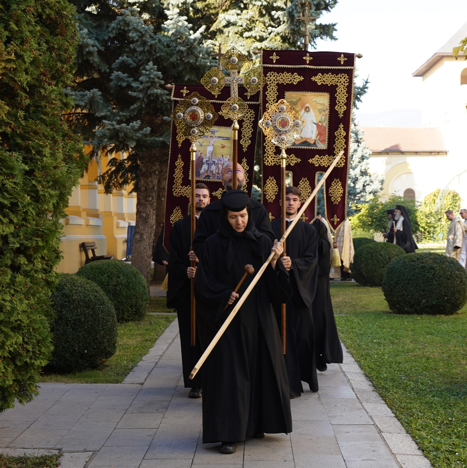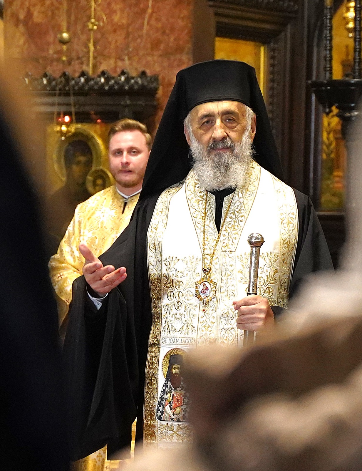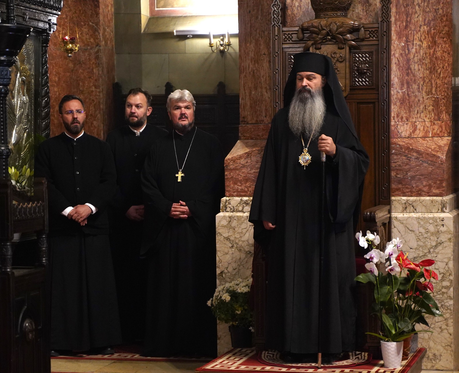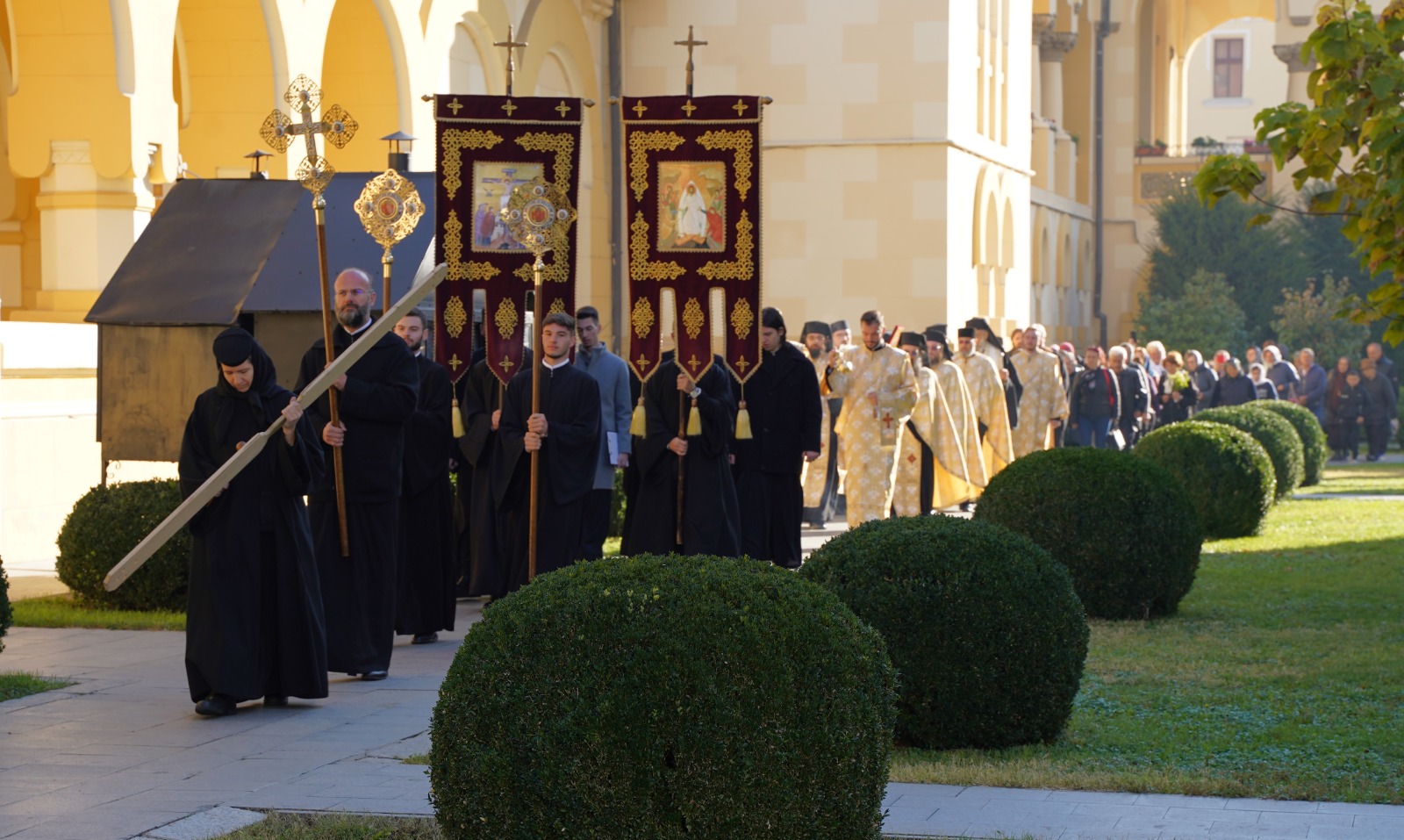 Marți, 22 octombrie a.c., începând cu ora 10.00, Înaltpreasfințitul Părinte Irineu, Arhiepiscop al Alba Iuliei, a fost prezent la Catedrala Reîntregirii din Cetatea Marii Uniri. Arhipăstorul nostru, înconjurat de un numeros sobor de preoți și diaconi, a oficiat o slujbă de mulțumire și a rostit un cuvânt duhovnicesc, în prezența Preasfințitului Părinte Paisie Lugojanul, Episcop-vicar al Arhiepiscopiei Timișoarei, cu prilejul plecării delegației cu racla care adăpostește un fragment din cinstitele moaște ale Sfântului Ierarh Iosif cel Nou de la Partoș. După oficierea slujbei, Chiriarhul Alba Iuliei, dimpreună cu sfințiții slujitori și credincioșii prezenți, a luat parte la procesiunea cu sfintele moaște în jurul Catedralei Încoronării.