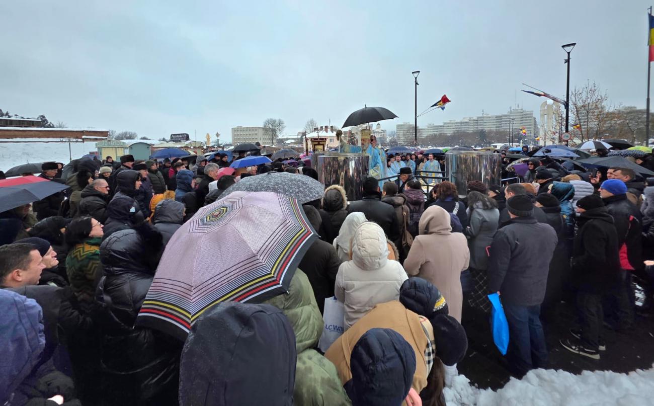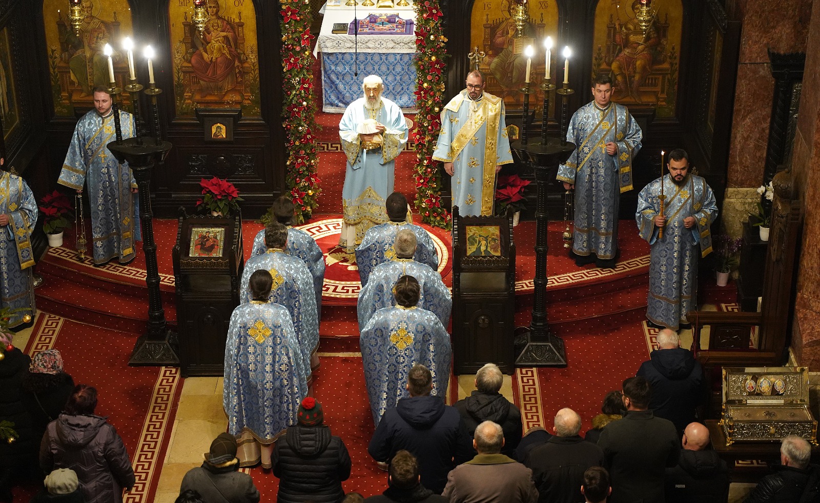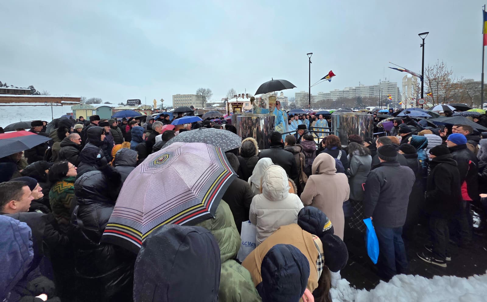 Marți, 6 ianuarie 2026, de Praznicul Botezului Domnului nostru Iisus Hristos, Înaltpreasfințitul Părinte Irineu, Arhiepiscop al Alba Iuliei, a fost prezent la Catedrala Reîntregirii din orașul Marii Uniri. Întâistătătorul Eparhiei noastre, înconjurat de un numeros sobor de preoți și diaconi, a oficiat Dumnezeiasca Liturghie a Sfântului Ioan Gură de Aur și a rostit cuvântul de învățătură, în prezența a numeroși credincioși din vechea Cetate a Bălgradului. Răspunsurile liturgice au fost oferite de către Corala „Sfânta Treime” a Catedralei arhiepiscopale din municipiul Alba Iulia, dirijată de către tânărul Antonio Rotar. Apoi, după Sfânta Liturghie, Arhipăstorul nostru a săvârșit slujba Aghiasmei celei mari, în fața clopotniței Catedralei Încoronării.