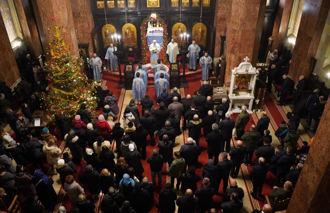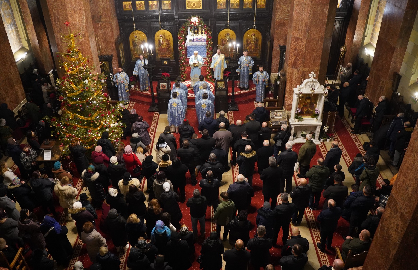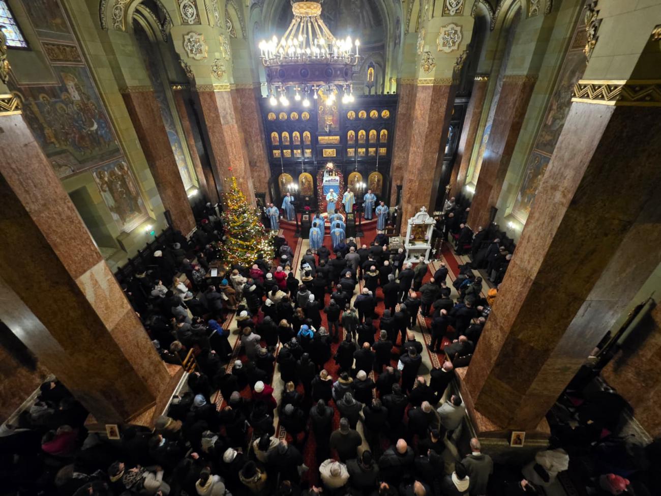 Marți, 6 ianuarie 2026, de Praznicul Botezului Domnului nostru Iisus Hristos, Înaltpreasfințitul Părinte Irineu, Arhiepiscop al Alba Iuliei, a fost prezent la Catedrala Reîntregirii din orașul Marii Uniri. Întâistătătorul Eparhiei noastre, înconjurat de un numeros sobor de preoți și diaconi, a oficiat Dumnezeiasca Liturghie a Sfântului Ioan Gură de Aur și a rostit cuvântul de învățătură, în prezența a numeroși credincioși din vechea Cetate a Bălgradului. Răspunsurile liturgice au fost oferite de către Corala „Sfânta Treime” a Catedralei arhiepiscopale din municipiul Alba Iulia, dirijată de către tânărul Antonio Rotar. Apoi, după Sfânta Liturghie, Arhipăstorul nostru a săvârșit slujba Aghiasmei celei mari, în fața clopotniței Catedralei Încoronării.