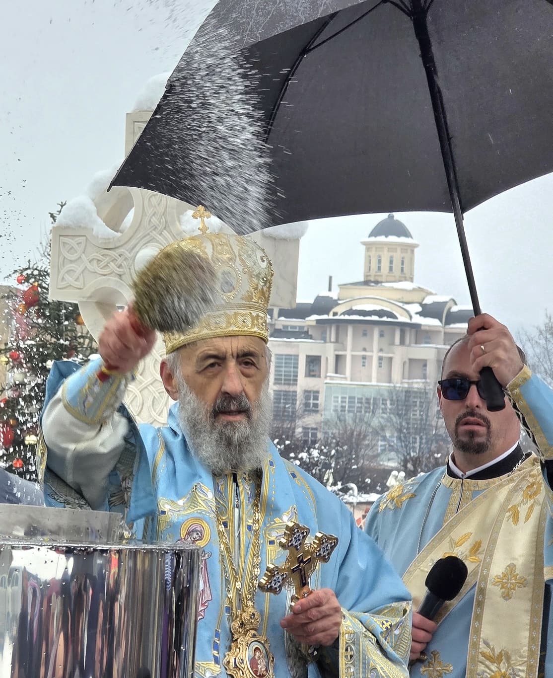 În cuvântul rostit în cadrul Dumnezeieștii Liturghii, Ierarhul nostru a spus: „Astăzi, cerul s-a deschis asupra noastră și, de acolo, Preasfânta Treime rourează și revarsă mângâieri și binecuvântări dumnezeiești. Astăzi, Duhul Sfânt se va pogorî peste ape, ca să le prefacă în organ de vindecare și de har. Astăzi, noi putem lua Aghiasmă mare în casele noastre, ca să ne stropim cu ea și să gustăm din ea, pentru a primi ajutor în toate nevoile noastre sufletești și trupești, în toate trebuințele noastre spirituale și materiale. Pentru aceste daruri formidabile oferite de Dumnezeu Cel în Treime închinat, se cuvine să exclamăm într-un glas: «Mare ești, Doamne, și minunate sunt lucrările Tale și nici un cuvânt nu este de ajuns spre lauda minunilor Tale»”.