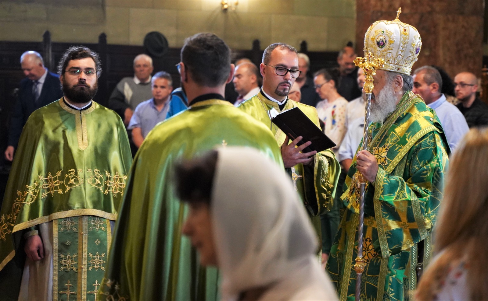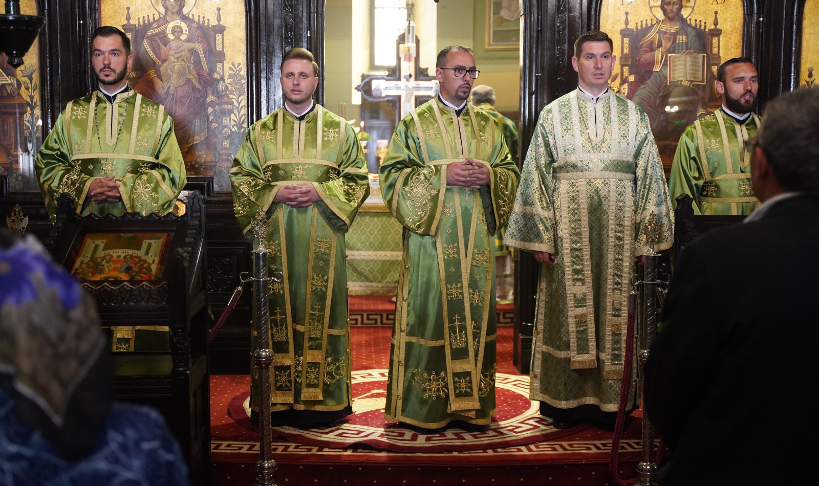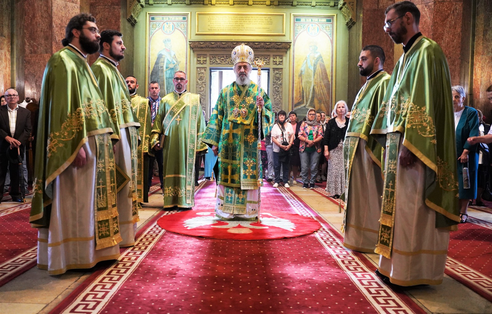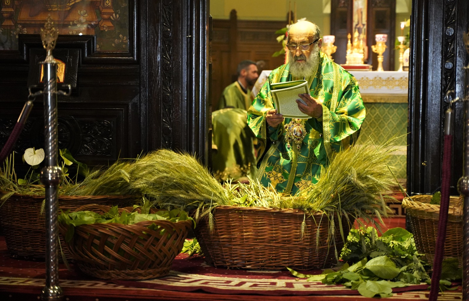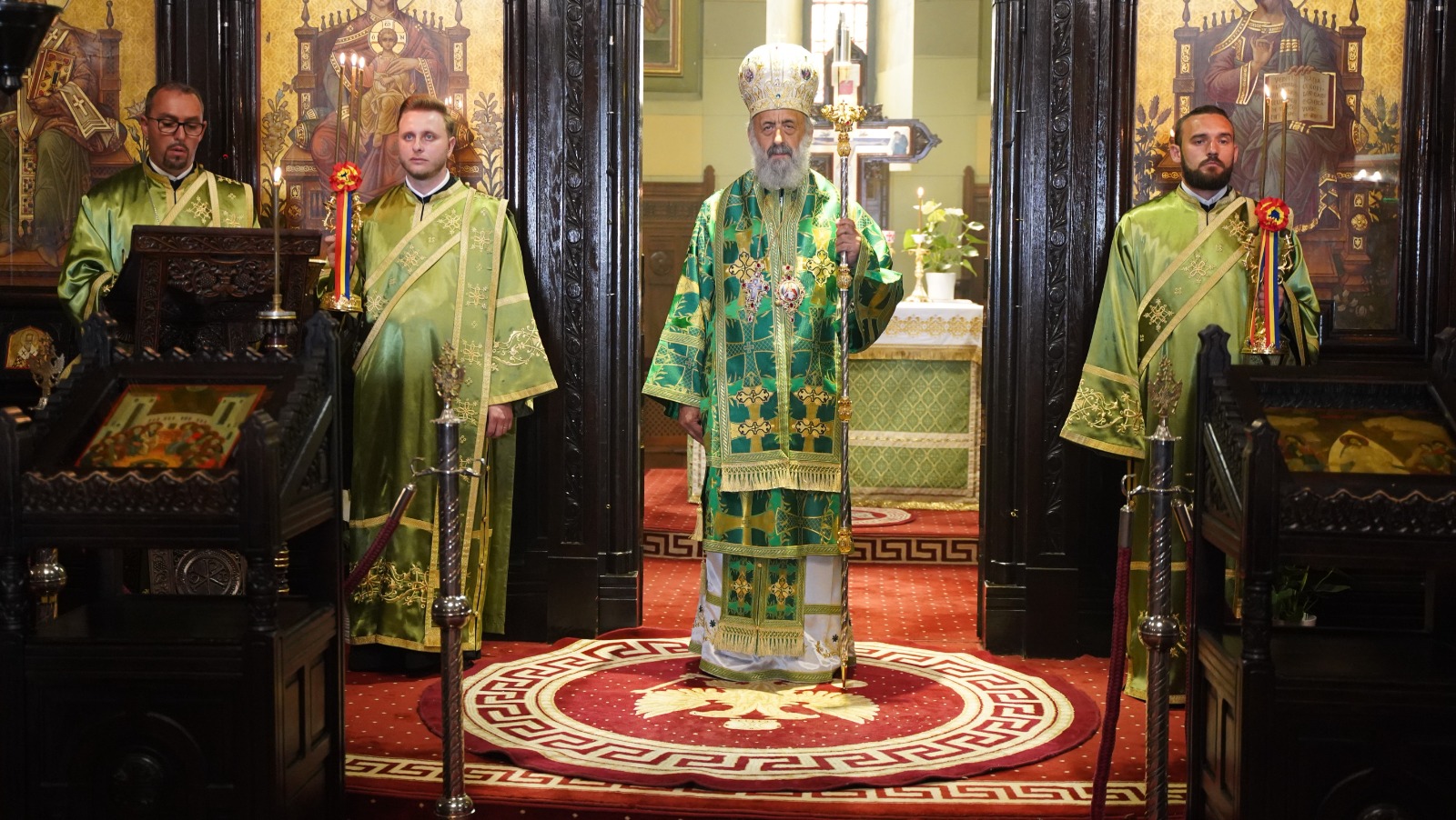 După oficierea Sfintei Liturghii, Arhipăstorul nostru a săvârșit slujba Vecerniei plecării genunchilor, în cadrul căreia au fost citite șapte rugăciuni închinate Sfintei Treimi. Aceste invocări speciale amintesc de cele șapte daruri ale Duhului Sfânt care au fost revărsate asupra Sfinților Apostoli în ziua Cincizecimii. De asemenea, au fost binecuvântate ramurile de nuc și spicele de grâu, acestea fiind împărțite mai apoi tuturor credincioșilor prezenți.