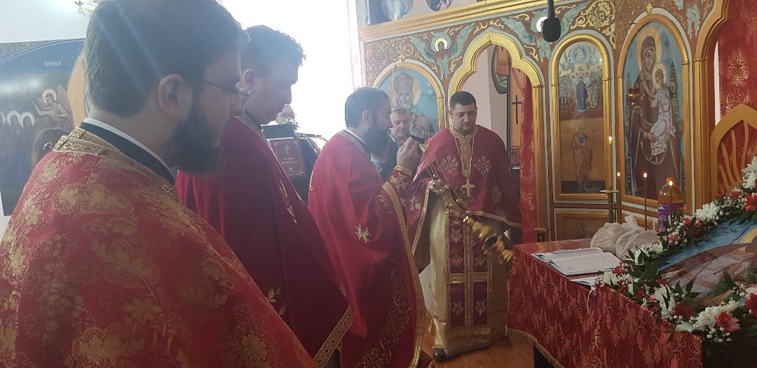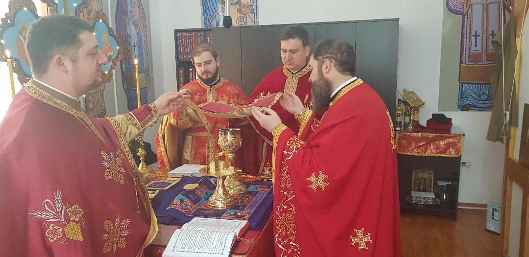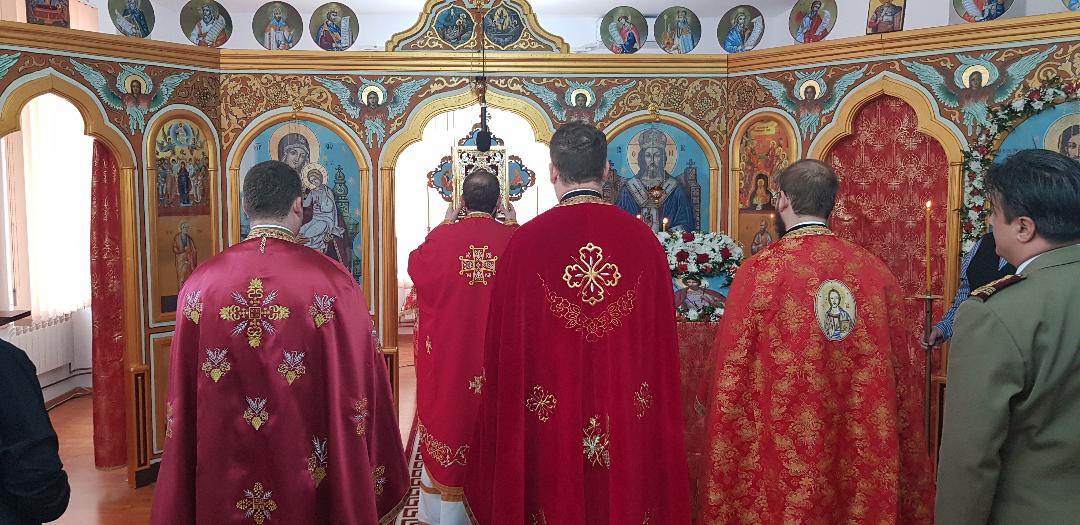 Sărbătoarea a debutat cu slujba Utreniei, oficiată de la ora 8.30, după care a fost celebrată Sfânta Liturghie de către un sobor de patru preoţi: părintele Ilarie Moldovan, preot al parohiei Alba Iulia – Cetate I (care a rostit cuvântul de învățătură), părintele Alexandru Rusu, preot al parohiei Galda de Sus, protopopiatul Alba Iulia, părintele Paul Raica, preot al parohiei Tăureni, protopopiatul Luduș, şi subsemnatul, părintele Ovidiu Truța, preot militar la Garnizoana Sebeş. La final, a fost săvârşită slujba parastasului pentru personalul militar și civil trecut la Domnul, precum și pentru toți eroii neamului căzuți pe câmpurile de luptă.