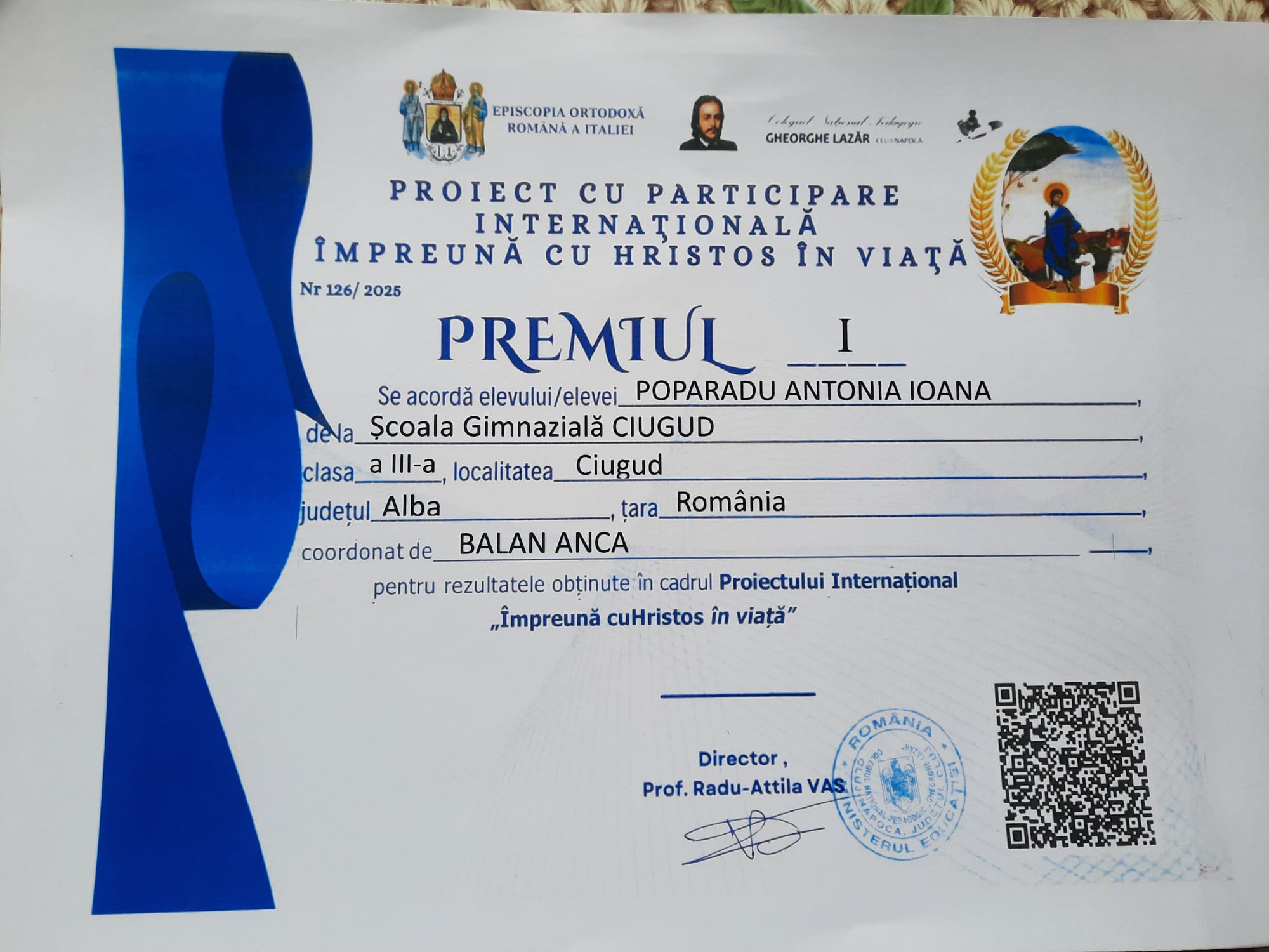 Duminică, 11 mai 2025, după Sfânta Liturghie, în biserica Parohiei Ortodoxe Ciugud, în fața întregii adunări a credincioșilor, precum și a părinților, au fost premiați elevii care au participat la Concursul Internațional „Împreună cu Hristos în viață” – ediția a IX-a, în semn de apreciere pentru performanțele obținute. La această competiție, copiii de la clasa pregătitoare până la clasa a XII-a din țară și diaspora au avut ocazia să își testeze cunoștințele biblice precum și familiaritatea lor cu slujbele Bisericii, tema acestei ediții fiind „Hristos –Taină și Pildă a vieții”.