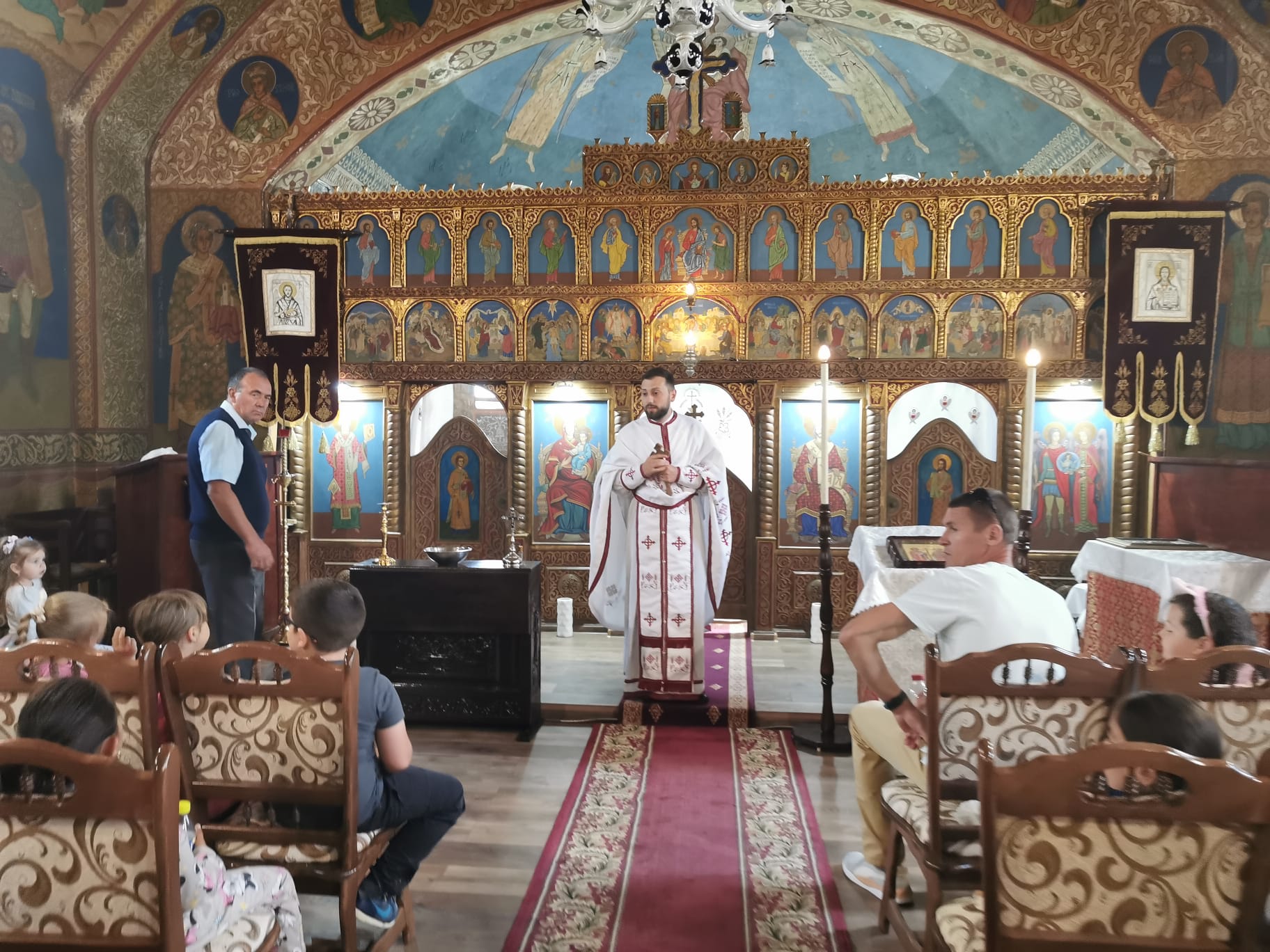 Marți, 21 mai a.c., preșcolarii din comuna Jidvei, împreună cu prof. Marius Iorga, au vizitat biserica „Sfinții Arhangheli Mihail și Gavriil” din parohia Căpâlna de Jos, protopopiatul Blaj. Cu mult entuziasm, cei mici au participat la Sfânta Liturghie, ascultând cuvântul duhovnicesc rostit în contextul sărbătorii Sfinților Împărați Constantin și Elena. De asemenea, cu multă bucurie, am oferit răspunsuri tuturor curiozităților și întrebărilor adresate de către micii vizitatori.