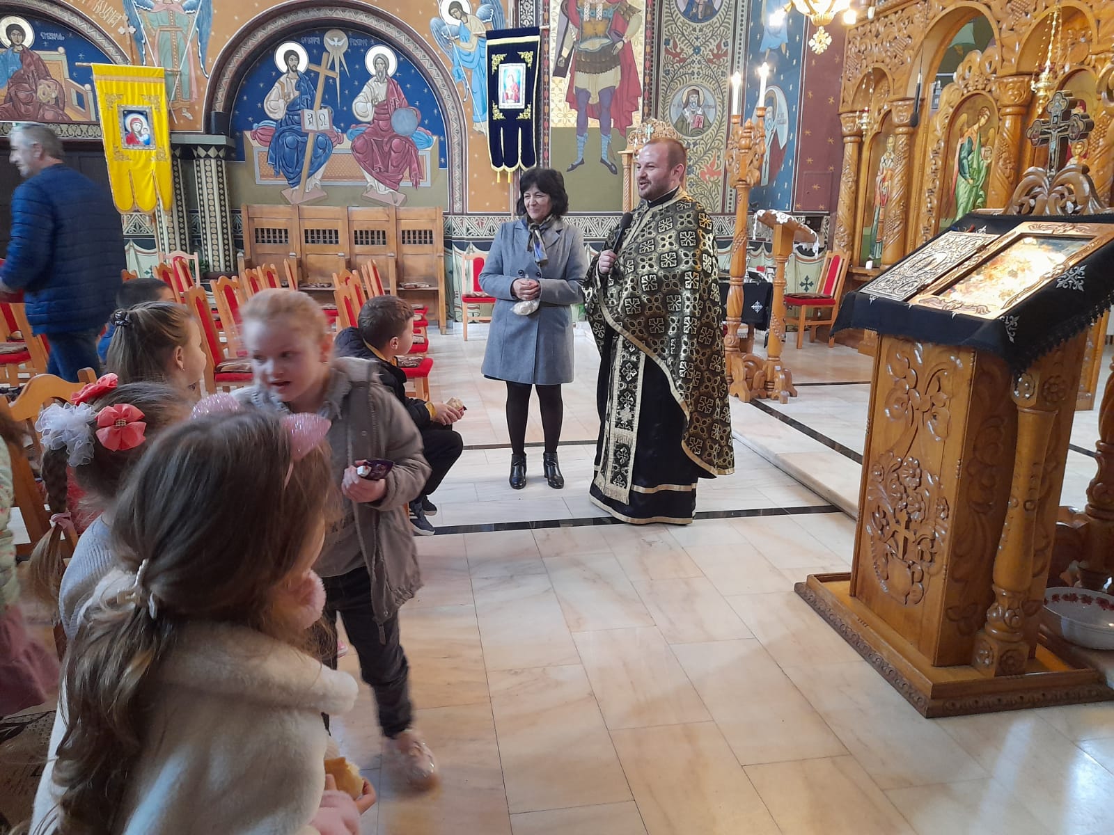 Punctul culminant al zilei a fost reprezentat de împărtăşirea micuţilor creştini cu Trupul şi Sângele Mântuitorului Iisus Hristos. Totodată, aflându-ne în Postul Sfintelor Paşti, la finalul slujbei, a fost susținută o cateheză, după care copiii au rostit rugăciunea „Tatăl nostru”.