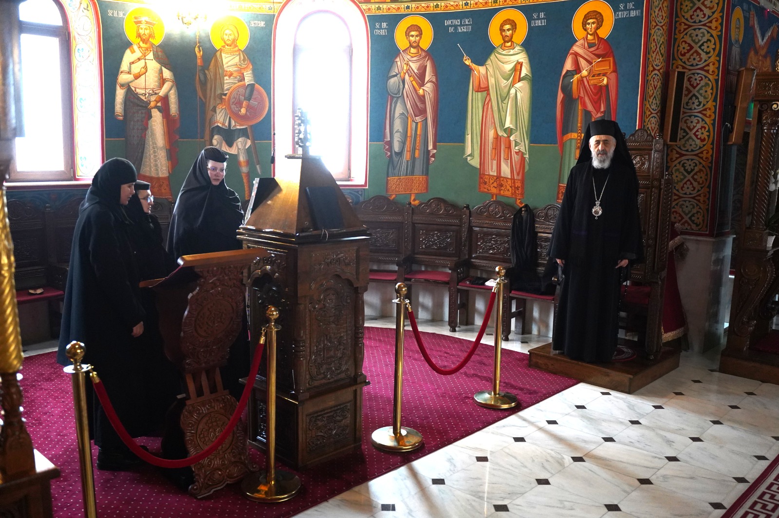 În dimineața zilei de joi, 13 februarie 2025, Înaltpreasfințitul Părinte Arhiepiscop Irineu a poposit la Mănăstirea „Hristos Pantocrator” din Alba Iulia. Începând cu ora 8.00, Întâistătătorul Eparhiei noastre a participat la Dumnezeiasca Liturghie a Sfântului Ioan Gură de Aur, în biserica „Sfântul Mare Mucenic Mina” din incinta așezământului monahal din vechea Cetatea a Bălgradului. Obștea viețuitoarelor Mănăstirii „Hristos Pantocrator” din Cetatea Marii Uniri se află sub oblăduirea maicii starețe Iuliana Rusu.