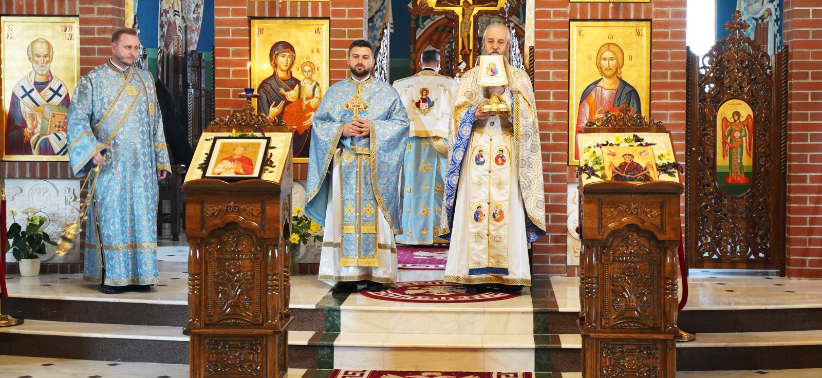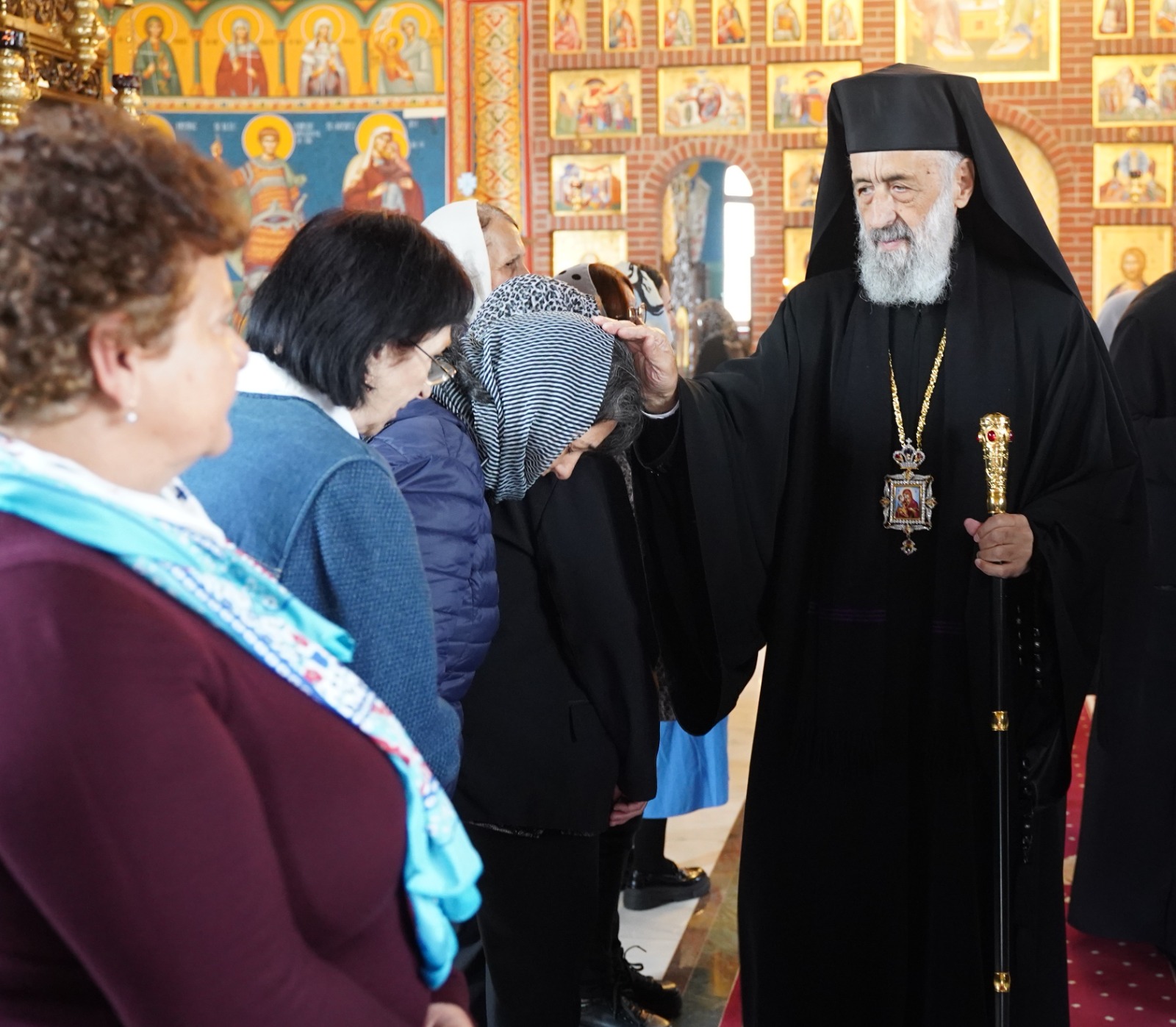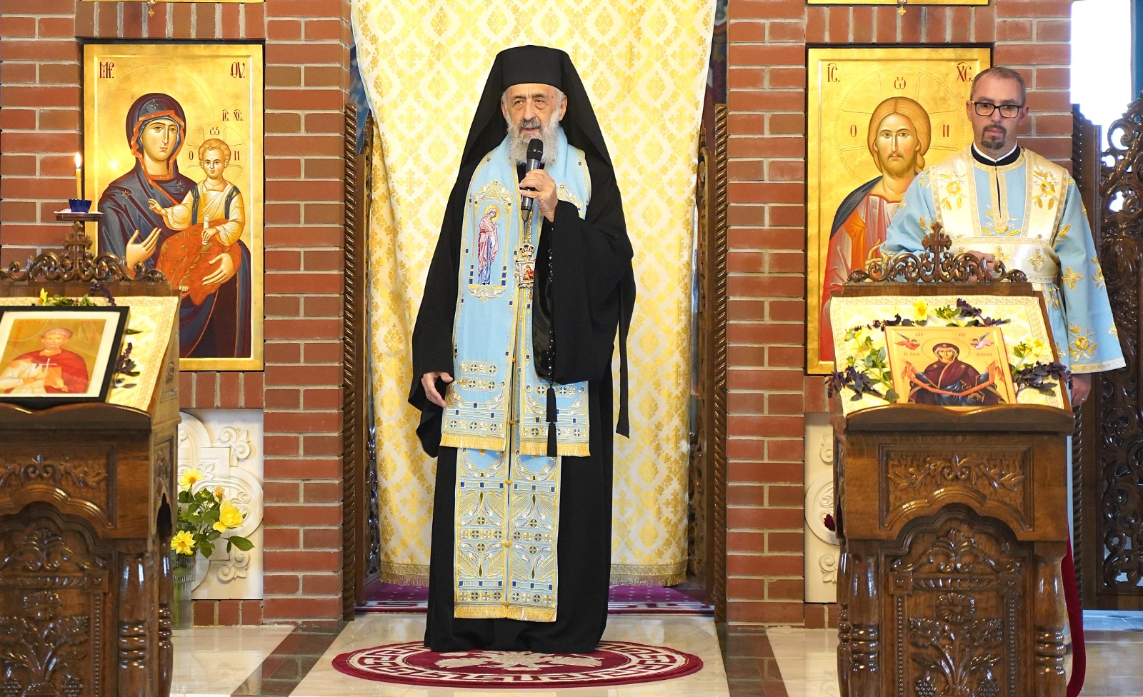 Adresându-se celor prezenți la Dumnezeiasca Liturghie, Chiriarhul nostru a spus: „Prezența Maicii Domnului în viața Bisericii este o mângâiere pentru suferința noastră, o ușurare pentru osteneala noastră și un ajutor puternic în pelerinajul nostru spre patria cerească. Să ne ghemuim la sânul ei matern ca niște copii adorabili și ea ne va copleși cu daruri minunate și cu bucurii neașteptate. Cu imensă recunoștință, în stih de Acatist, să-i zicem: «Bucură-te, bucuria noastră; acoperă-ne pe noi de tot răul cu cinstitul tău Acoperământ»”.