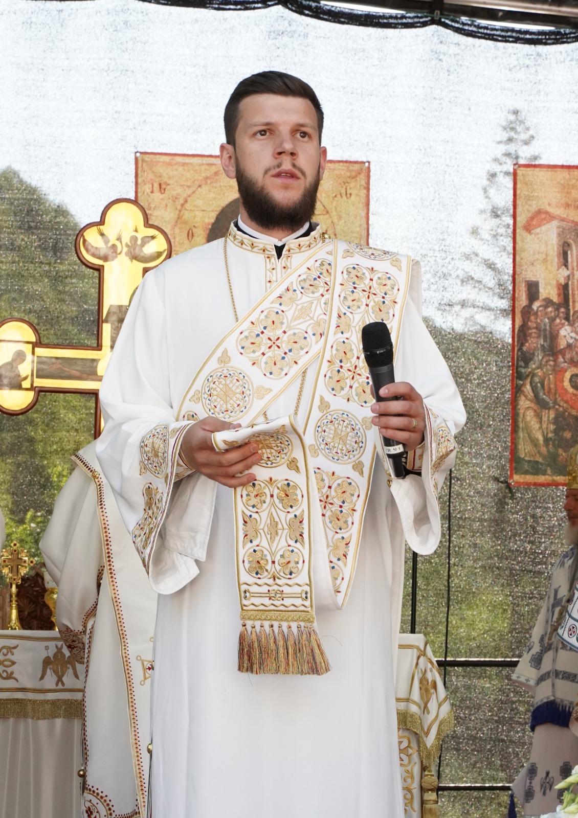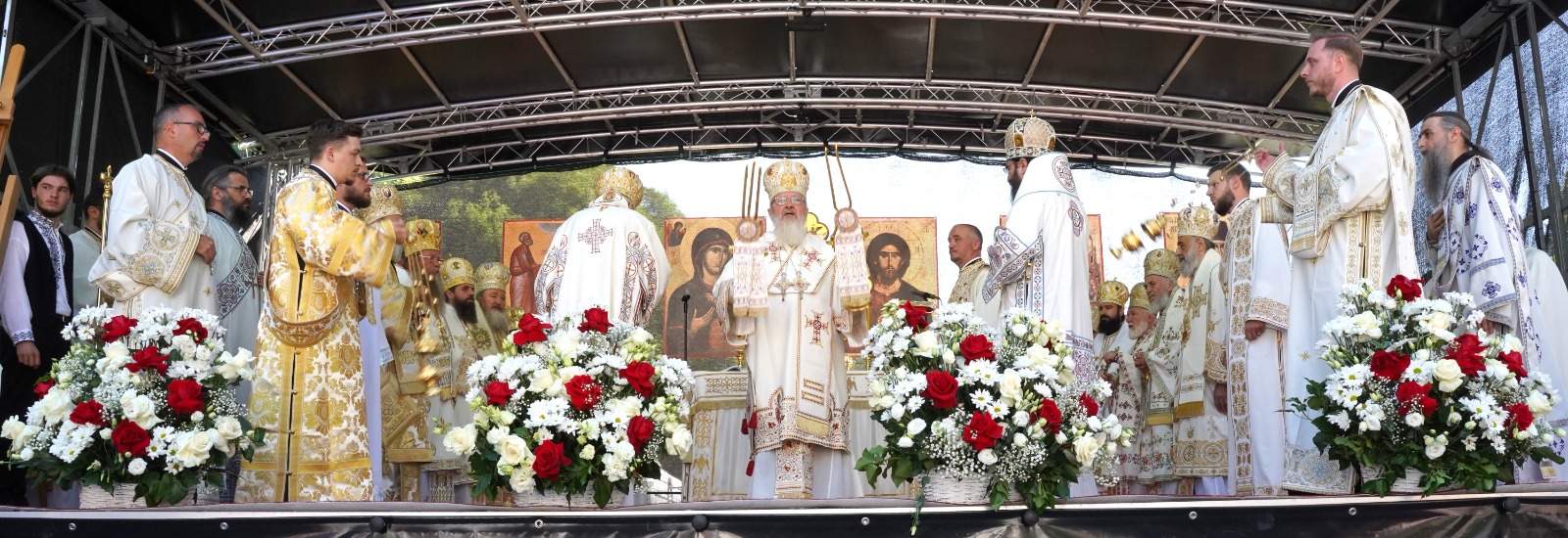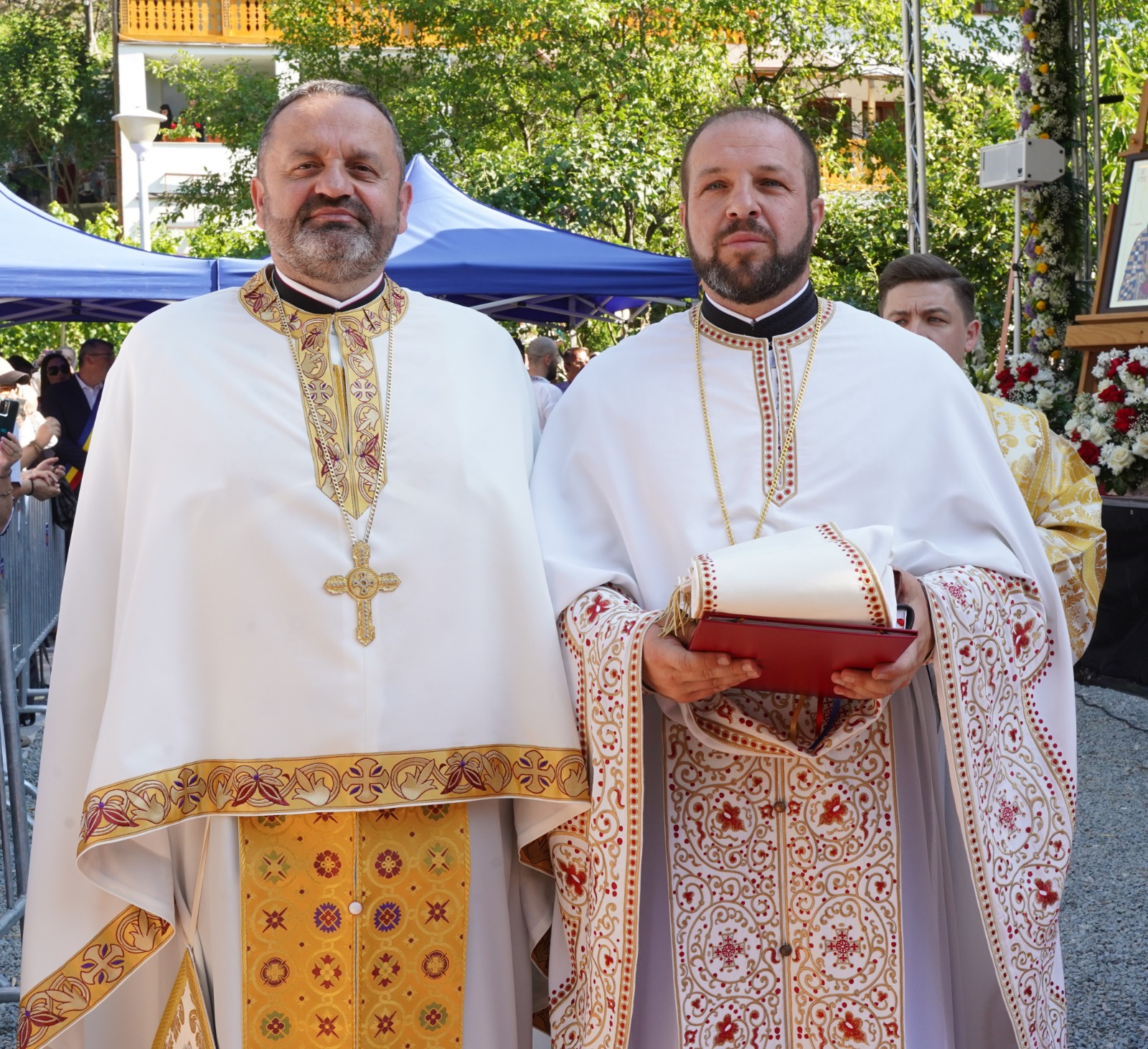 Dumnezeiasca Liturghie a fost prezidată de către Înaltpreasfințitul Părinte Andrei, Arhiepiscopul Vadului, Feleacului și Clujului și Mitropolitul Clujului, Maramureșului și Sălajului. Din sobor au mai făcut parte Înaltpreasfinţitul Părinte Iosif, Arhiepiscopul Ortodox Român al Europei Occidentale și Mitropolitul Ortodox Român al Europei Occidentale și Meridionale, Înaltpreasfinţitul Părinte Serafim, Arhiepiscopul Ortodox Român al Germaniei, Austriei și Luxemburgului și Mitropolitul Ortodox Român al Germaniei, Europei Centrale și de Nord, Înaltpreasfinţitul Părinte Irineu, Arhiepiscopul Alba Iuliei, Înaltpreasfinţitul Părinte Ciprian, Arhiepiscopul Buzăului și Vrancei, Înaltpreasfinţitul Părinte Casian, Arhiepiscopul Dunării de Jos, Preasfințitul Părinte Andrei, Episcopul Covasnei și Harghitei, Preasfințitul Părinte Visarion, Episcopul Tulcii, Preasfințitul Părinte Benedict, Episcopul Sălajului, Preasfințitul Părinte Nestor, Episcopul Devei și Hunedoarei, Preasfințitul Părinte Ieronim, Episcopul Daciei Felix, Preasfințitul Părinte Siluan, Episcopul Ortodox Român al Ungariei, Preasfințitul Părinte Timotei, Episcopul Ortodox Român al Spaniei și Portugaliei, Preasfințitul Părinte Macarie, Episcopul Ortodox Român al Europei de Nord, Preasfințitul Părinte Paisie Lugojeanul, Episcop-vicar al Arhiepiscopiei Timișoarei, Preasfințitul Părinte Emilian Crişanul, Episcop-vicar al Arhiepiscopiei Aradului, și Preasfințitul Părinte Gherontie Hunedoreanul, Arhiereu-vicar al Episcopiei Devei și Hunedoarei.