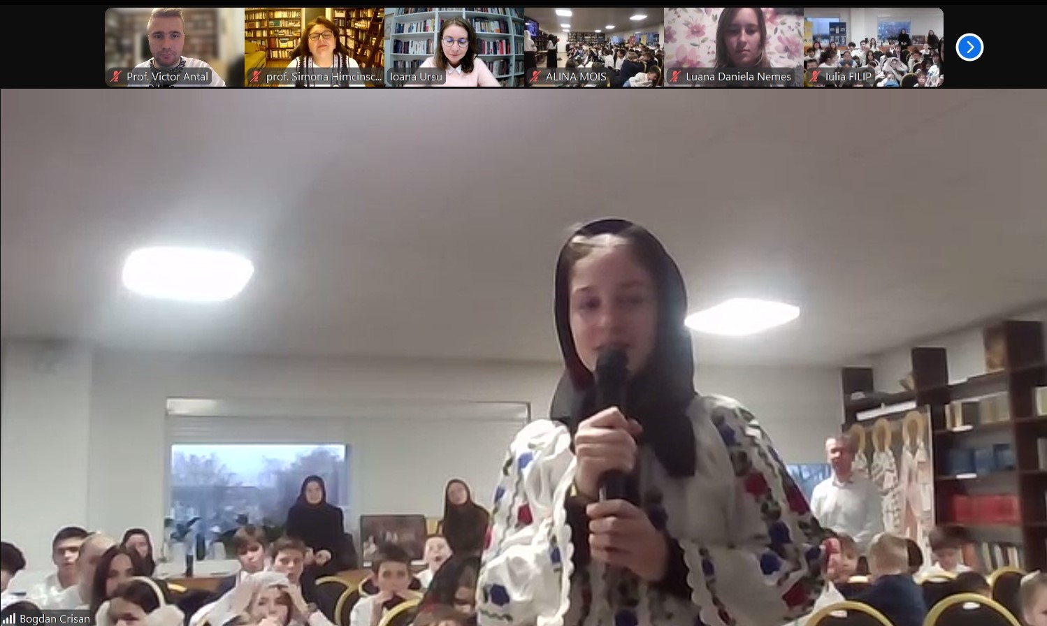 „Anul acesta sărbătorim 106 ani de la Marea Unire din 1 Decembrie 1918, act istoric care a unit pentru prima dată toate cele patru provincii românești: Moldova, Bucovina, Muntenia și Transilvania. Evenimentul ne transpune în atmosfera străbunilor noștri care și-au dat seama că vorbesc aceeași limbă, au aceeași credință, dar și aceleași idealuri. De 2000 de ani, credința în unitate a generat un sentiment de încredere și nădejde că visul tuturor românilor se va împlini. Atât noi, cât și cei care sunteți departe de țară, să nu uităm această luptă a străbunilor noștri, nici sângele lor vărsat pentru realizarea acestui ideal regăsit plenar în Biserică, dar mai ales în familiile noastre de români ce trăiesc departe de țară”, a subliniat doamna prof. Simona Himcinschi, de la Colegiul Economic „Dionisie Pop Marțian” din Alba Iulia.