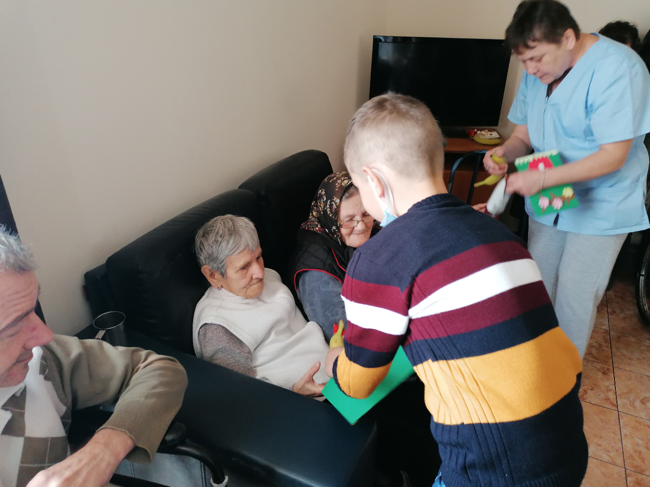 Activitatea a continuat cu vizitarea Centrului de îngrijire și asistență „Casa Speranței”, unde copiii, îndrumați de doamna învățătoare Teodora Oltean, au prezentat cadrelor medicale și persoanelor adăpostite aici mai multe scenete, care au pus în valoare importanța iubirii aproapelui, a cercetării celor bolnavi și nevoiași, precum și mărturisirea credinței prin faptele bune ale milosteniei.