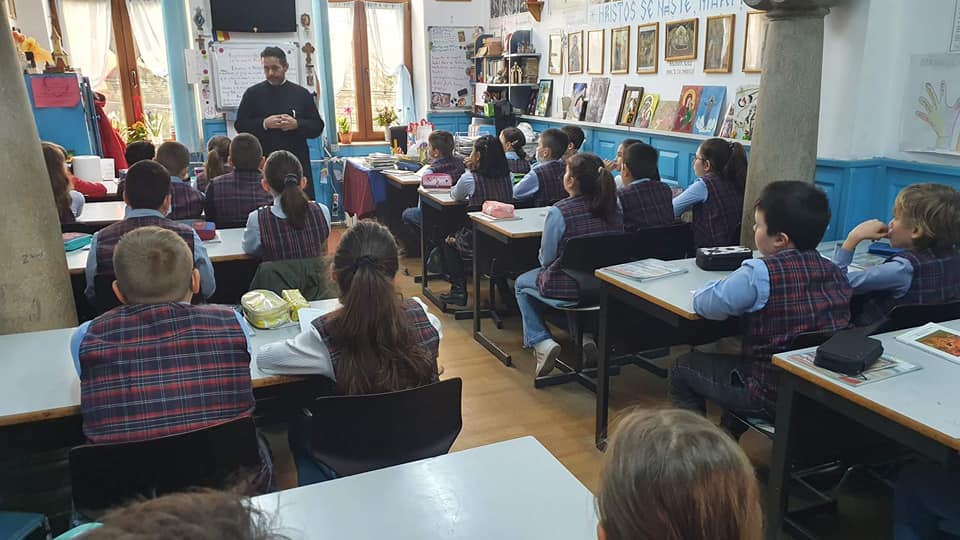 Prima întâlnire cu elevii clasei a IV-a (învățător: Teodora Oltean) de la Școala Gimnazială „Alexandru Ceușianu” din Reghin, din cadrul proiectului catehetic „Rugăciunea în viața mea”, s-a desfășurat în data de 21 martie a.c. Aceasta a venit în completarea orei de religie, fiind organizată de părintele paroh Alin-Lucian Șut și de doamna profesoară Daniela Friciu (Religie ortodoxă). În cadrul acestei activități, a fost susținută prima cateheză din cadrul proiectului, intitulată „Raiul rugăciunii smerite”. Tema catehezei a fost Rugăciunea Sfântului Efrem Sirul, scoțând în evidență formele de aplicare în viața fiecăruia dintre noi a virtuților cerute prin rugăciune: curăția sufletească și trupească, gândul bun și smerit, răbdarea și dragostea frățească. În finalul evenimentului, elevii au primit din partea parohiei câte o carte de rugăciuni.
