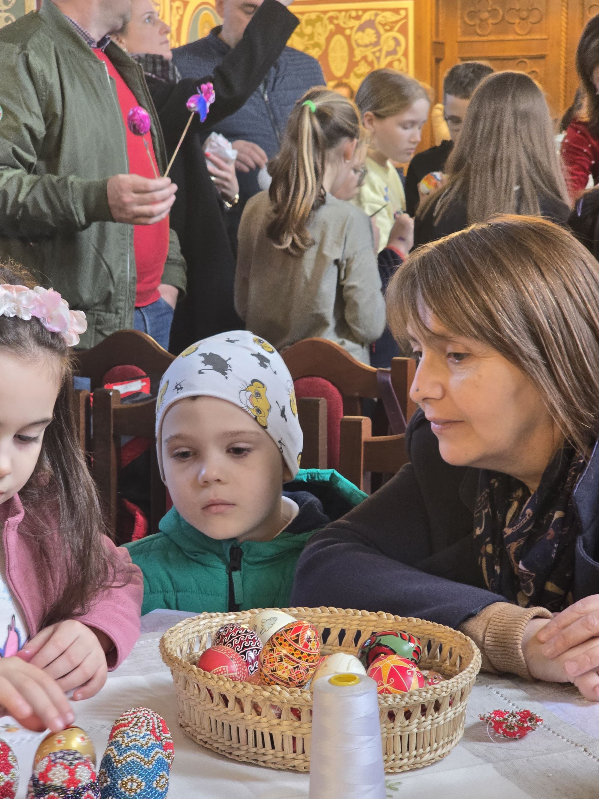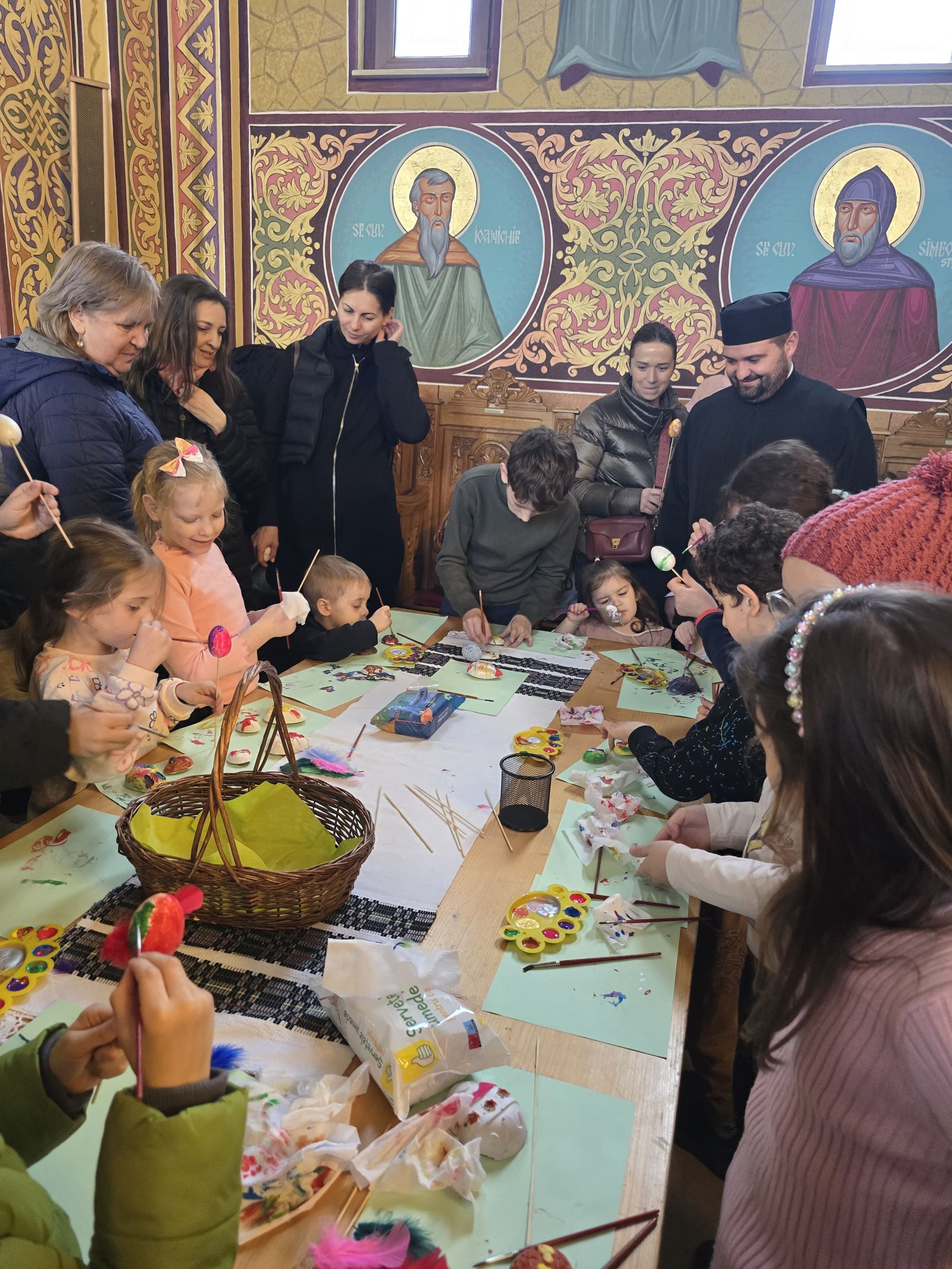 Atelierul intitulat „Învierea: Lumină... Renaștere... Credință”, a reprezentat partea practică a întâlnirii, prilej cu care participanții au vopsit și decorat ouă, magneți de frigider și lumânări prin diverse tehnici: pictură, tehnica șervețelului, vopsea creată din plante etc. Cateheza intitulată „Pași spre Înviere” a avut rolul de a le expune tinerelor vlăstare scena biblică a sărbătorii Floriilor, care practic ne deschide poarta spre slăvitul Praznic al Învierii Domnului, valoarea incomensurabilă a jertfei pe care a făcut-o Mântuitorul Hristos pentru omenire, dar și aprofundarea și conștientizarea fiecărei zile în care a pătimit Fiul lui Dumnezeu cu o săptămână înainte de a Învia. De asemenea, au avut loc discuții interactive despre familie, prietenie și anturaj, pornind de la episodul scripturistic al Intrării Domnului în Ierusalim, care a fost întâmpinat cu urale și flori, pentru ca în final să-i rămână doar Mama alături, toți ceilalți, inclusiv o parte dintre bunii Săi prieteni, alegând să-L trădeze, să se lepede de El, aruncând cu pietre în El, să-L vândă contra unei sume de bani, pentru a fi răstignit.