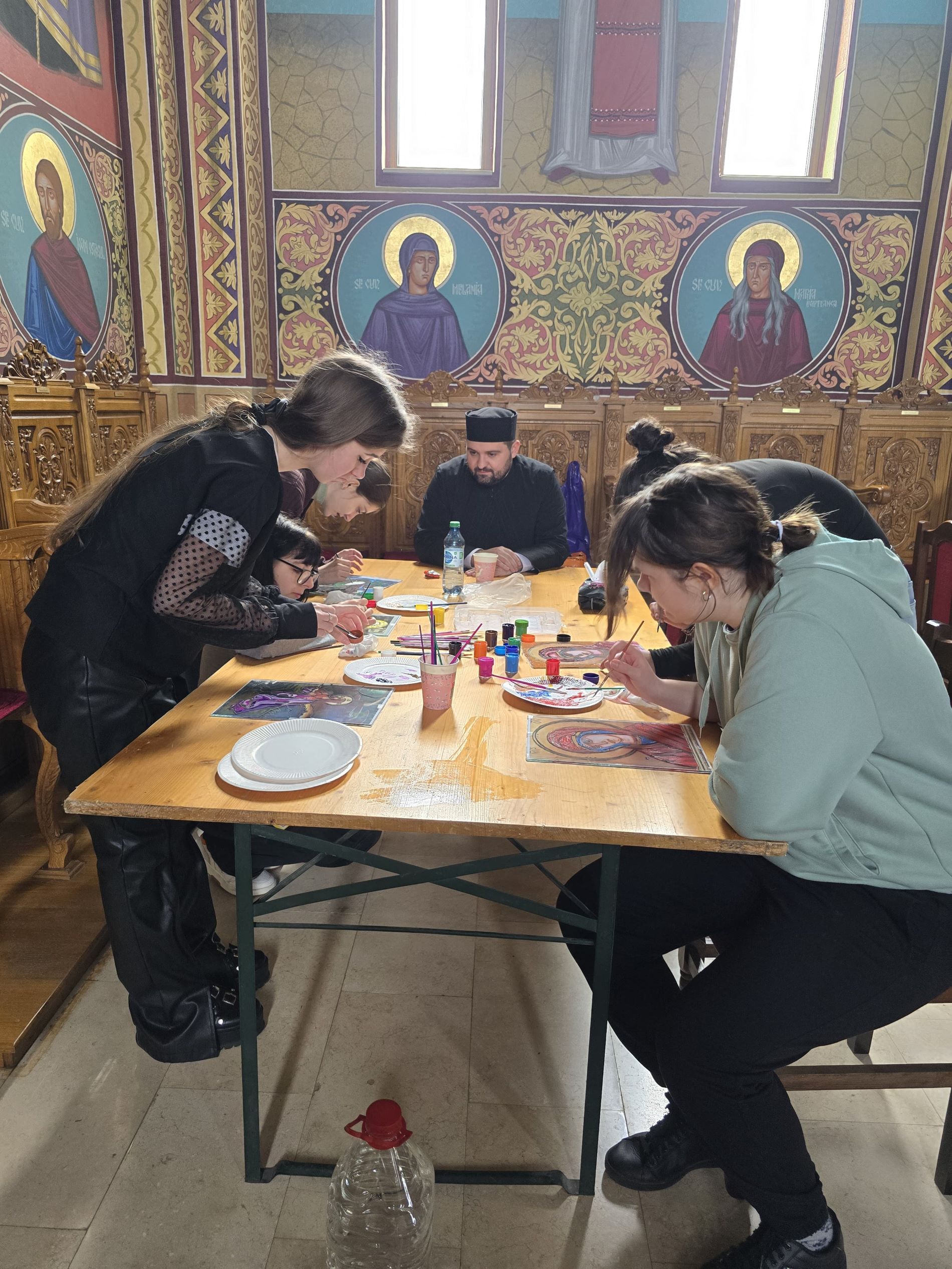 Astfel, prima activitate întreprinsă a constat în organizarea unui atelier de pictură pe sticlă, în cadrul căruia 10 elevi de la Liceul Agricol „Traian Săvulescu” din Târgu Mureș au pictat icoane reprezentative perioadei în care ne aflăm. În cadrul workshop-ului tematic „Încondeierea ouălor – tradiție în modernitate”, tinerii au aflat de la doamna Livia Marc, muzeograf la Secția de Etnografie și Artă Populară a Muzeului Județean Mureș, multe detalii interesante despre tradiția încondeierii ouălor: vechimea tradiției încondeierii ouălor și legătura dintre aceasta și Praznicul Sfintelor Paști, semnificația acestui obicei ce îmbină în mod armonios religia cu arta, talentul, imaginația și creativitatea, elementele de identificare a zonei pe care o reprezintă oul (în funcție de modelul acestuia), precum și starea de spirit a persoanei care l-a creat, etapele procesului de încondeiere, importanța perpetuării acestui obicei în societatea noastră modernă etc. De asemenea, doamna Maria Kulcsar, meșter popular, care a dezvoltat o tehnică inovatoare de împodobire a ouălor, inspirată din practicile bucovinene – husa cusută cu mărgele pentru învelirea ouălor –, tinerii au avut prilejul de a învăța să decoreze ouăle cu delicatele podoabe, ce vor înfrumuseța orice casă tradițională creștină.