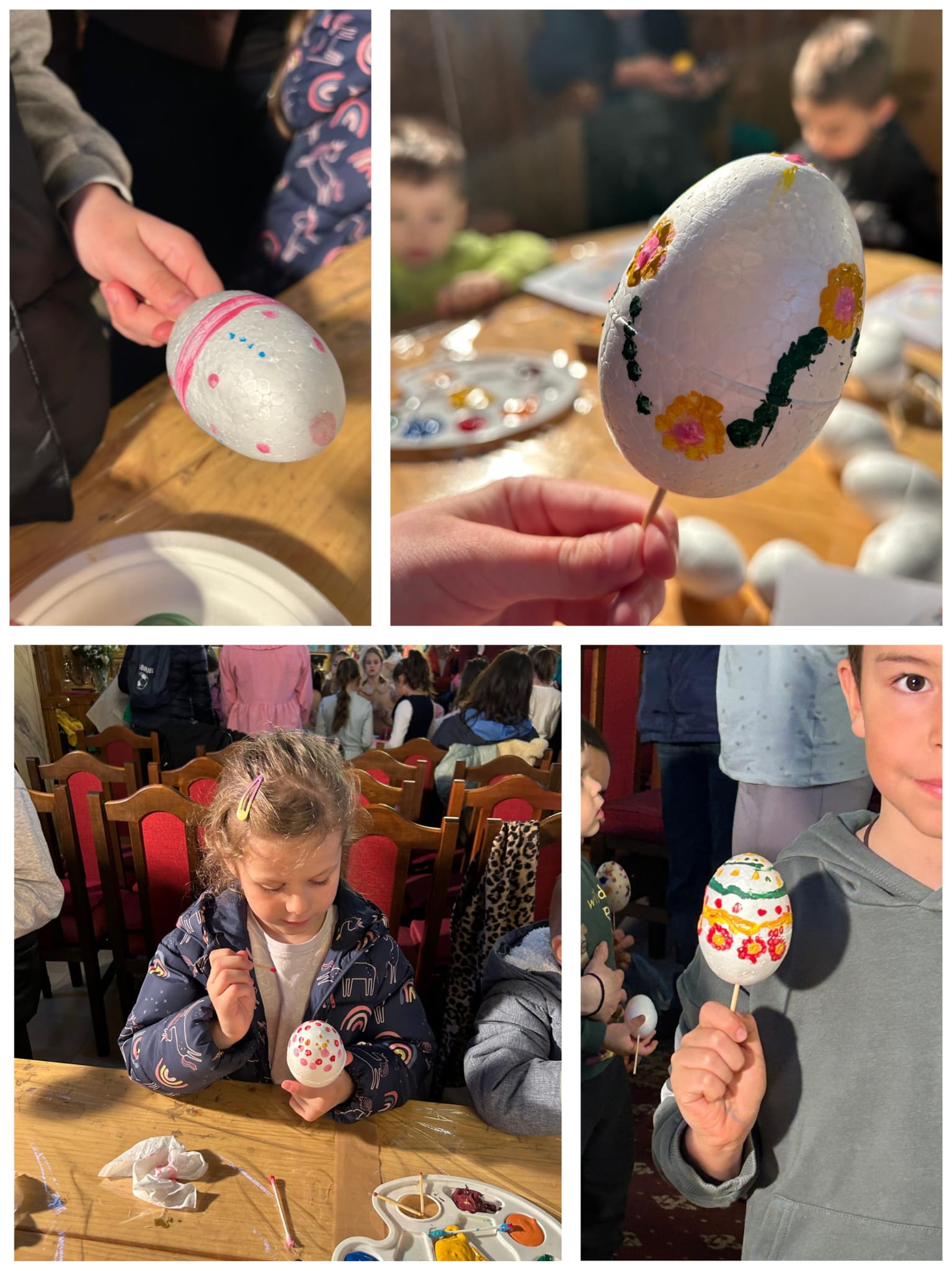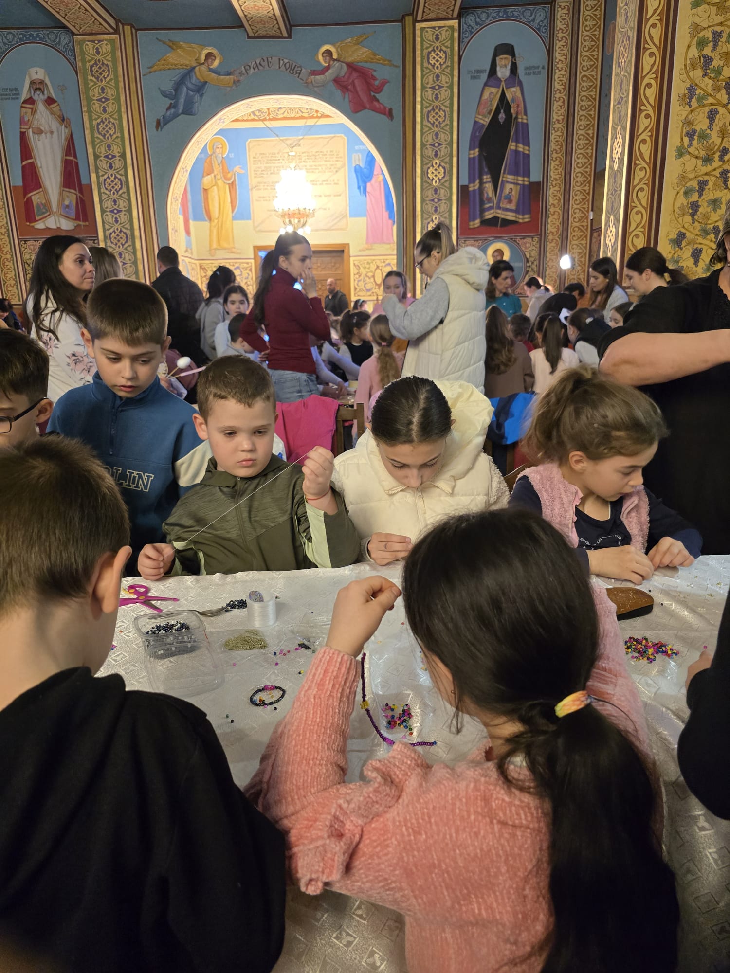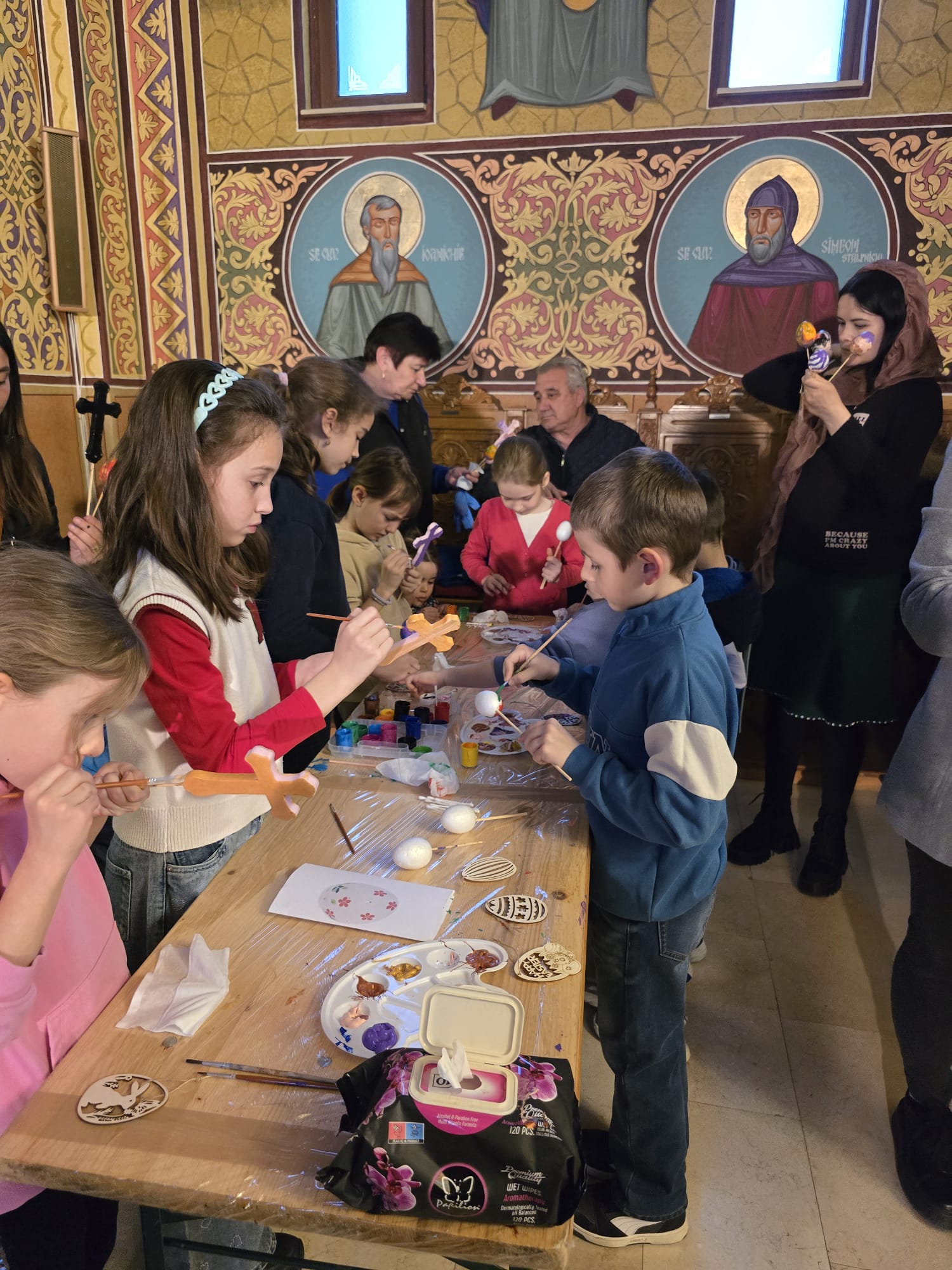 În cadrul workshop-ului tematic „Vopsitul ouălor – credință și tradiție în modernitate”, au avut loc discuții cu tinerii privind tradiția și semnificația vopsitului ouălor: vechimea tradiției de vopsit ouăle, legătura dintre aceasta și Praznicul Învierii Domnului și importanța perpetuării acestui obicei în societatea noastră modernă. Atelierul de decorat și vopsit ouă a reprezentat partea practică a întâlnirii, prilej cu care participanții au vopsit și decorat ouă, magneți de frigider și lumânări prin diverse tehnici: pictură, tehnica șervețelului, tehnica punctului, vopsea creată din plante sau cruciulițe și au confecționat coșulețe din carton pentru ouă. De asemenea, de la doamna Maria Kulcsar, meșter popular, care a dezvoltat o tehnică inovatoare de împodobire a ouălor, inspirată din practicile bucovinene – husa cusută cu mărgele pentru învelirea ouălor, tinerii au avut prilejul de a învăța să decoreze ouăle cu delicatele podoabe, ce vor înfrumuseța orice casă tradițională creștină. În continuare, în cadrul atelierului coordonat de invitata specială a activității, au confecționat îngerași din mărgele.