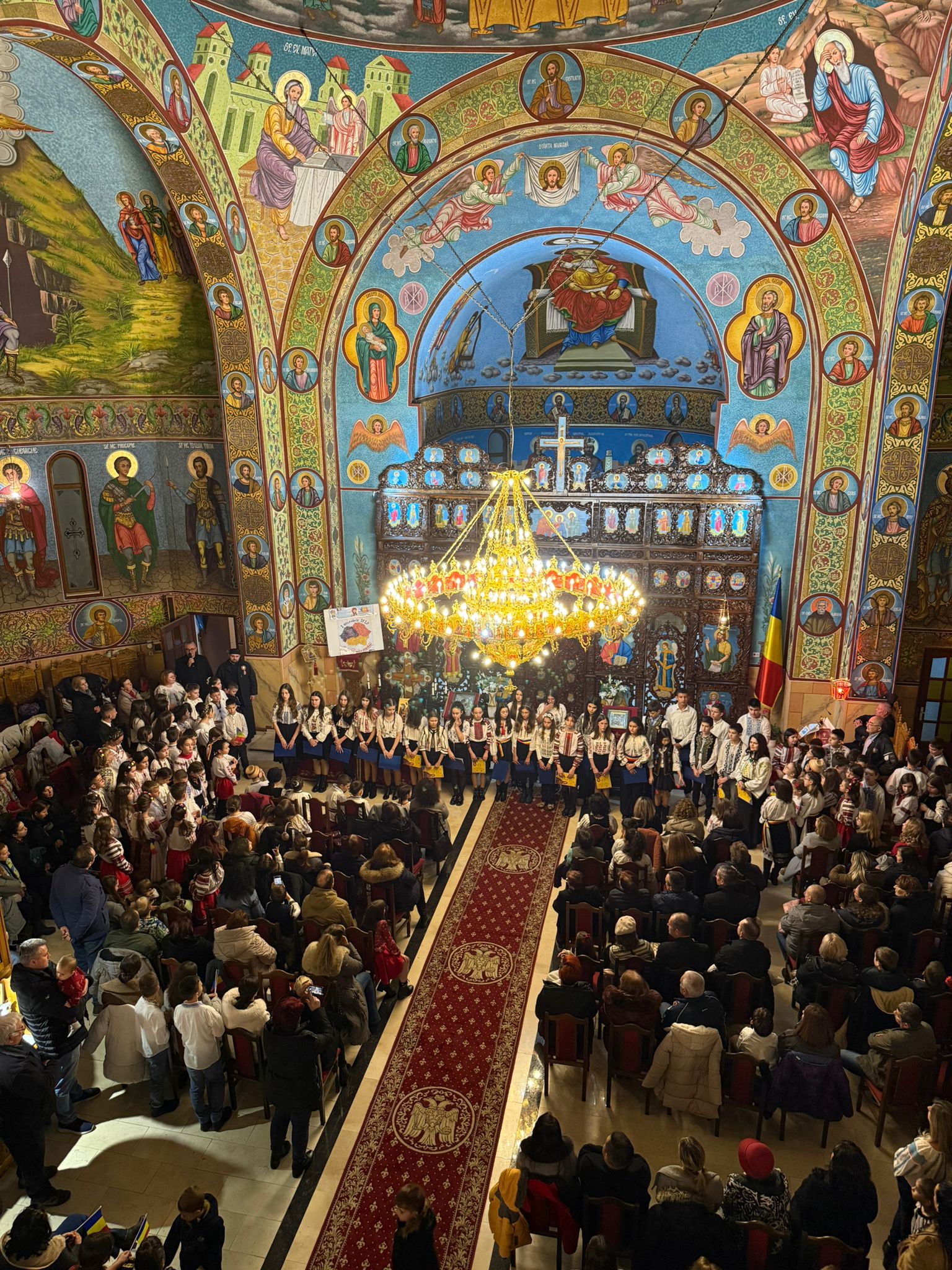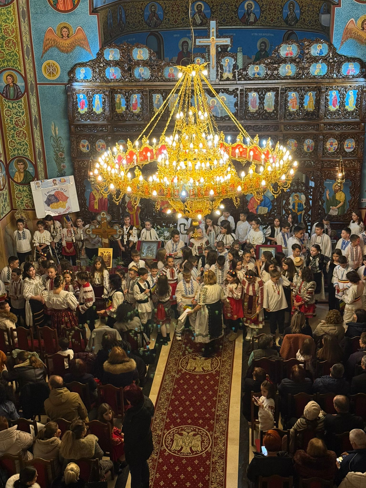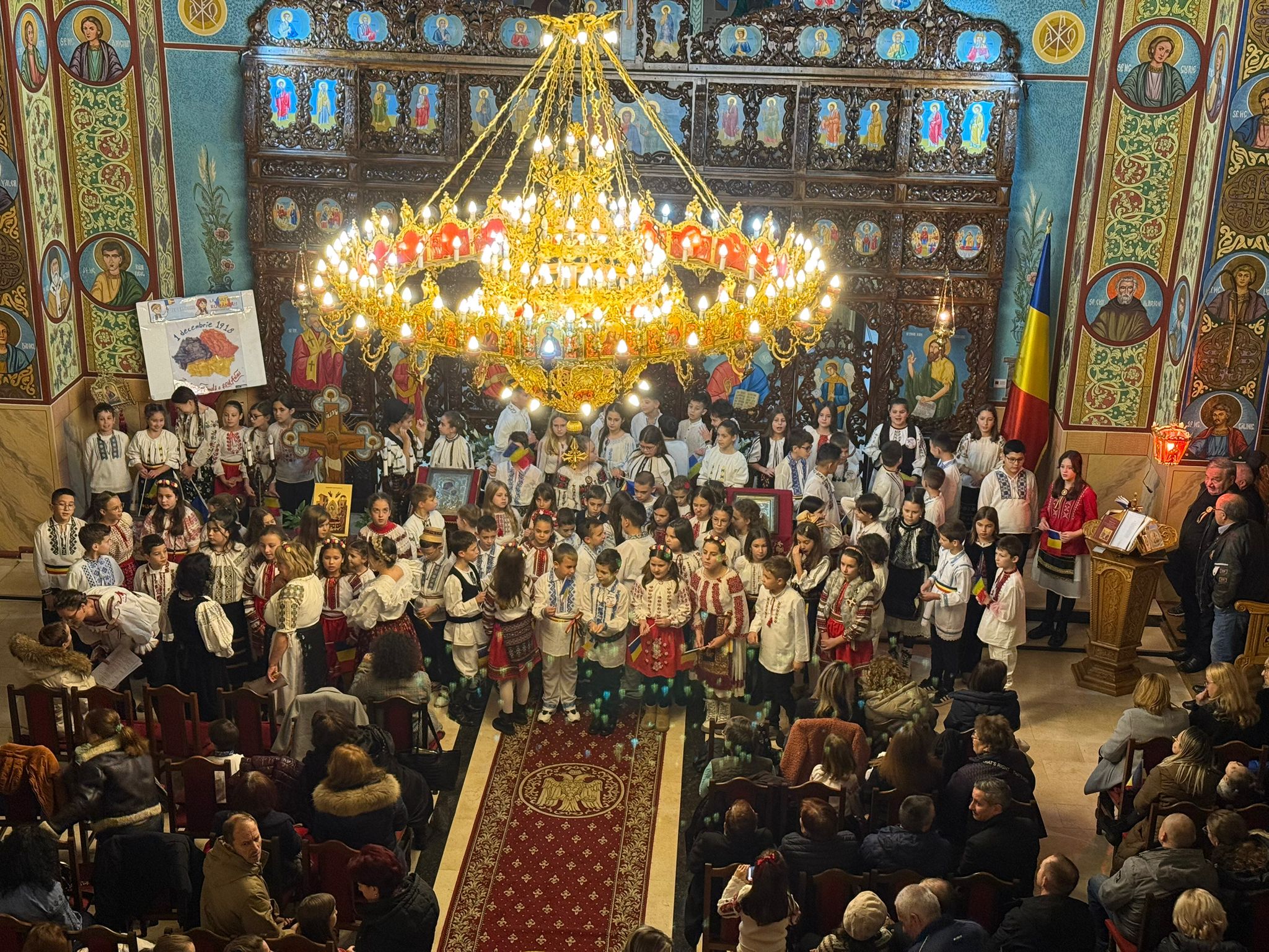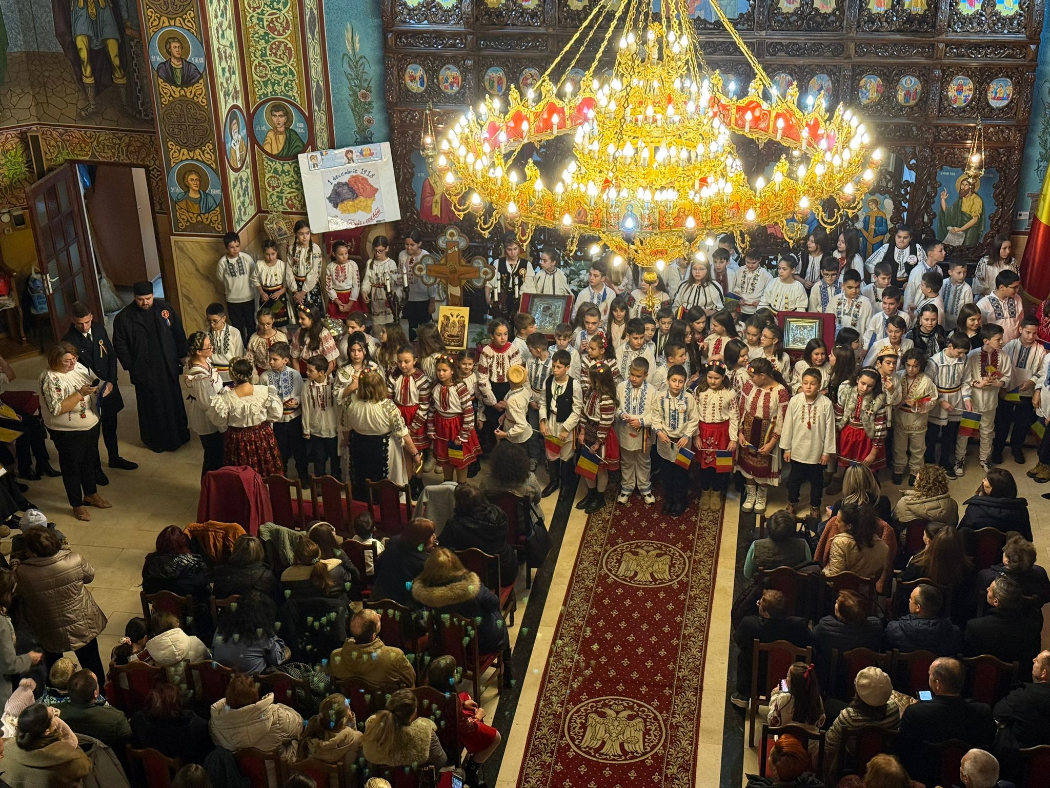 Luni 1 decembrie a.c., aproximativ 150 de elevi târgumureșeni au celebrat Ziua Națională a României în cadrul unui moment cultural-artistic de excepție. Intitulat sugestiv „Unire-n suflet de copil”, evenimentul, găzduit de biserica „Adormirea Maicii Domnului” din Târgu Mureș, a debutat și s-a încheiat cu rugăciuni înălțate către Tatăl Ceresc, aducându-I mulțumire, slavă, dar și fierbinți rugăciuni de a nu-și întoarce fața de la poporul nostru dreptcredincios, de la noi și de la toți cei dragi ai noștri. Întâlnirea a constat într-un moment cultural-artistic susținut de elevii claselor a IV-a ai Școlii Gimnaziale „Alexandru Ioan Cuza” din Târgu Mureș, îndrumați de doamnele prof. Anamaria Chirteș, Maria Murugă, Lucreția Bogdan și Caterina Horga, precum și de membrii corului instituției de învățământ, dirijat de doamna prof. Dana Suciu.
