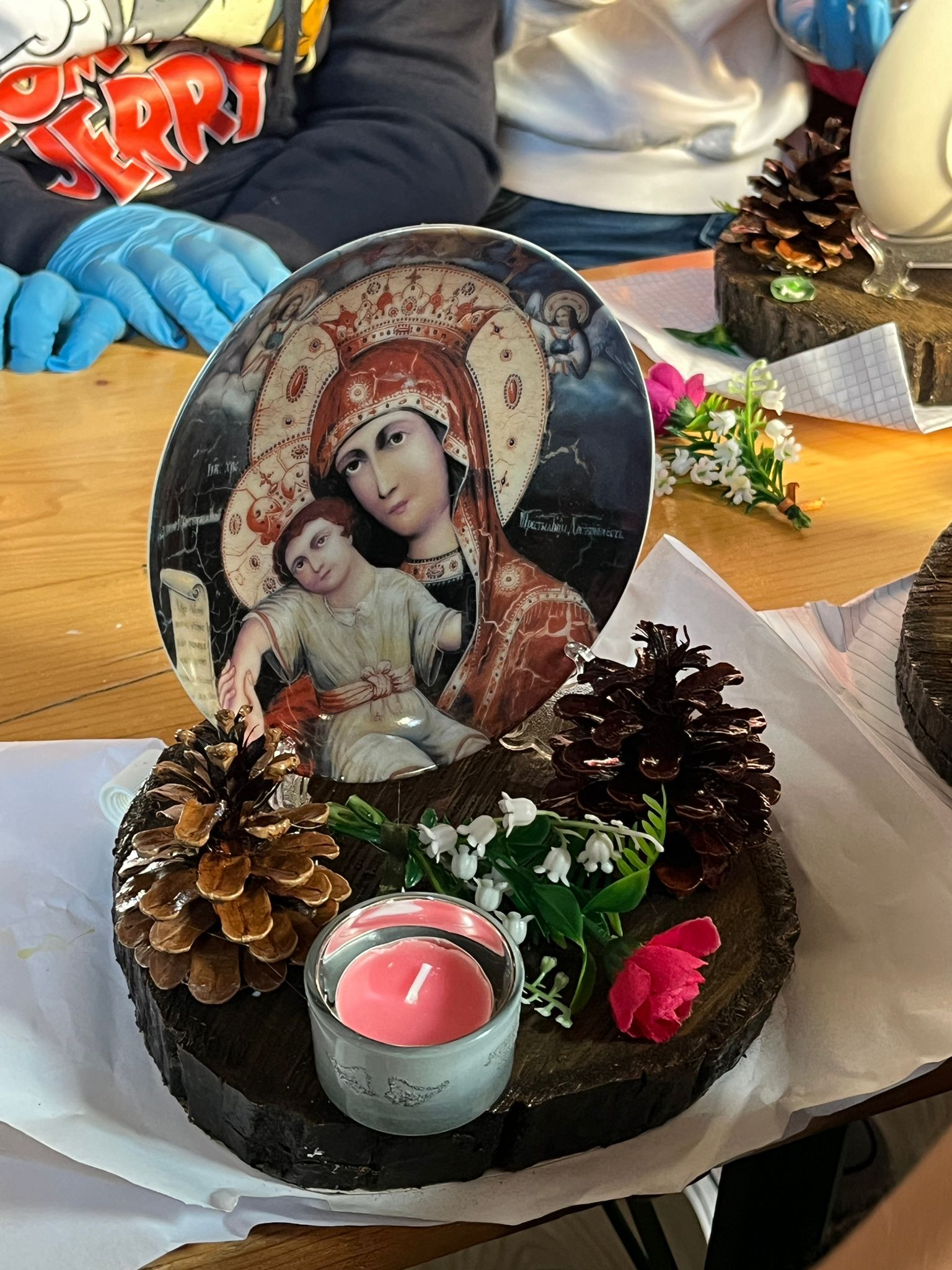Totodată, elevii au realizat obiecte decorative cu tematică religioasă, pregătite minuțios spre a fi oferite ca dar persoanelor vârstnice și cadrelor didactice implicate. În acest răstimp petrecut în spațiul sacru al locașului de cult, elevii coordonați de către doamna profesoară Maria Adela Mihuț au avut posibilitatea de a participa la un atelier de pictură în tempera, în cadrul căruia s-au familiarizat cu frumusețea și înțelesul sensului icoanei ca „fereastră către cer”.