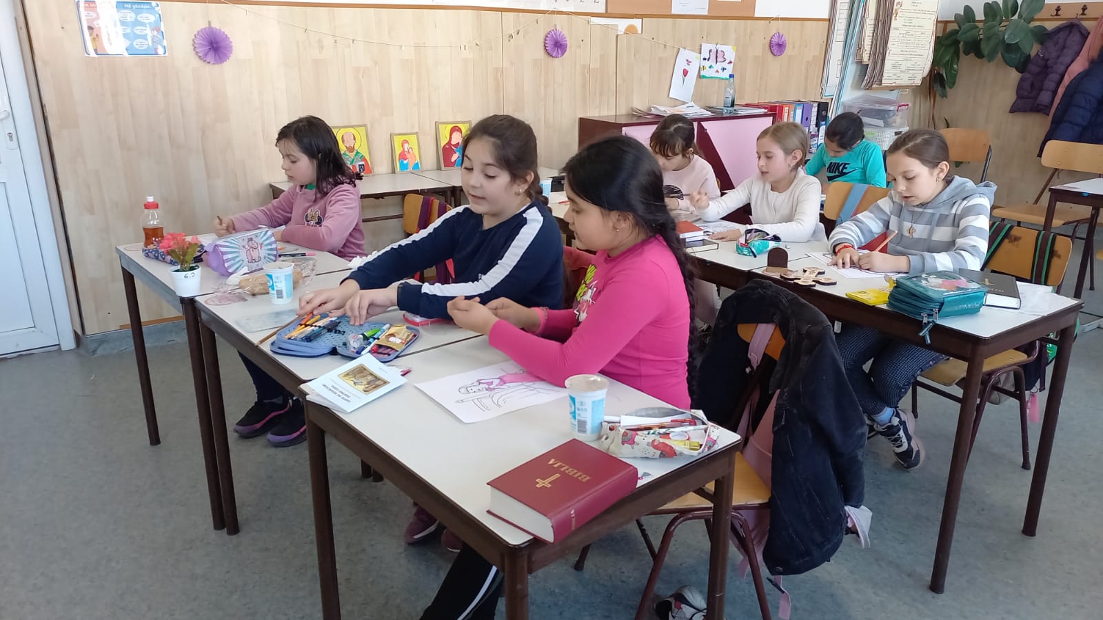 De la începutul lunii martie s-au desfășurat o serie de activități care au implicat copiii și tinerii din grupul catehetic al parohiei și, prin ei, întreaga comunitate, ca „puțin aluat care dospește toată frământătura” (Galateni 5, 9). Părintele paroh Vasile Rotaru a fost prezent în mijlocul tinerilor, susținând cateheze pe diferite teme în biserica parohială, dar și la Școala Gimnazială din localitate și la Centrul cultural-catehetic al parohiei. De asemenea, îndrumați de domnul profesor de religie Angel Avram și de doamna învățătoare Victorița German, elevii au pictat icoane pe sticlă, au confecționat diverse obiecte care apropie prin artă sufletul de Dumnezeu, au învățat pricesne, au compus poezii religioase, dar și-au creat și propriul spațiu de rugăciune. În urma catehezelor audiate, micii creștini s-au apropiat de Dumnezeu prin Taina Spovedaniei și a Împărtășaniei.