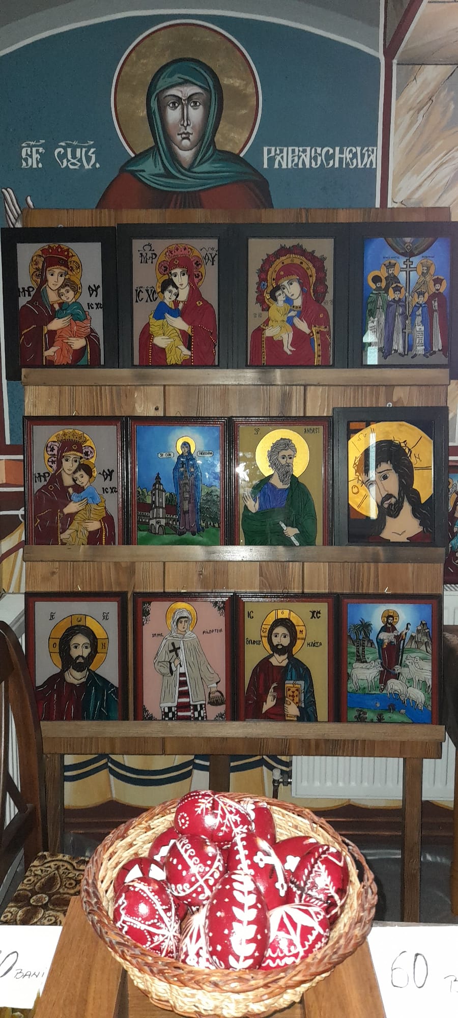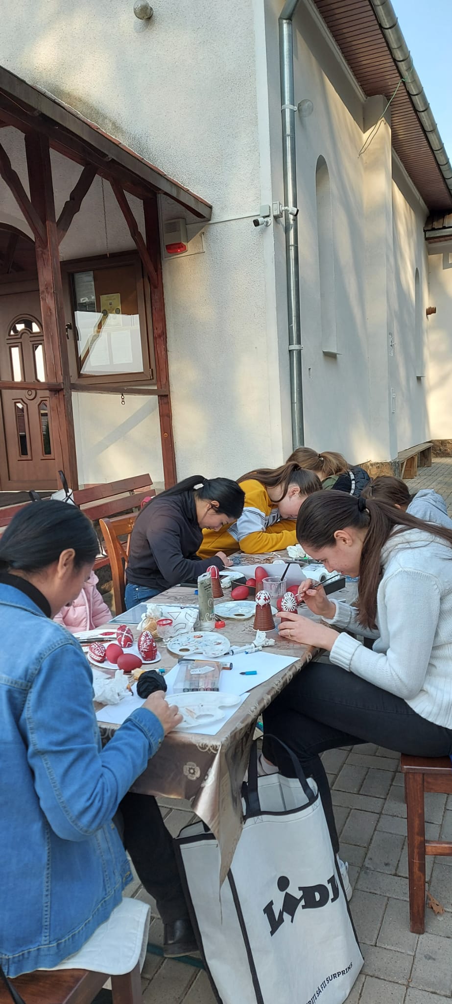 Prima activitate a fost reprezentată de Atelierul de pictură pe sticlă. Tinerii parohiei noastre, împreună cu tinerii de la Colegiul „Petru Maior” din Reghin, coordonați de doamna preoteasă Ileana Botoi, au pictat icoane cu teme specifice Postului Mare, dar și cu unii sfinți dragi copiilor. Icoanele au fost sfințite în Duminica Sfintelor Paști, când s-a realizat și o frumoasă expoziție, iar apoi copiii au putut să le ducă acasă, așezându-le la locul lor de rugăciune pe care l-au realizat în cadrul Concursului Național Catehetic „Rugăciunea în viața mea”. Atelierul de creație a fost o altă activitate în care tinerii s-au implicat, aceștia pictând motive tradiționale românești pe ouă de lemn.