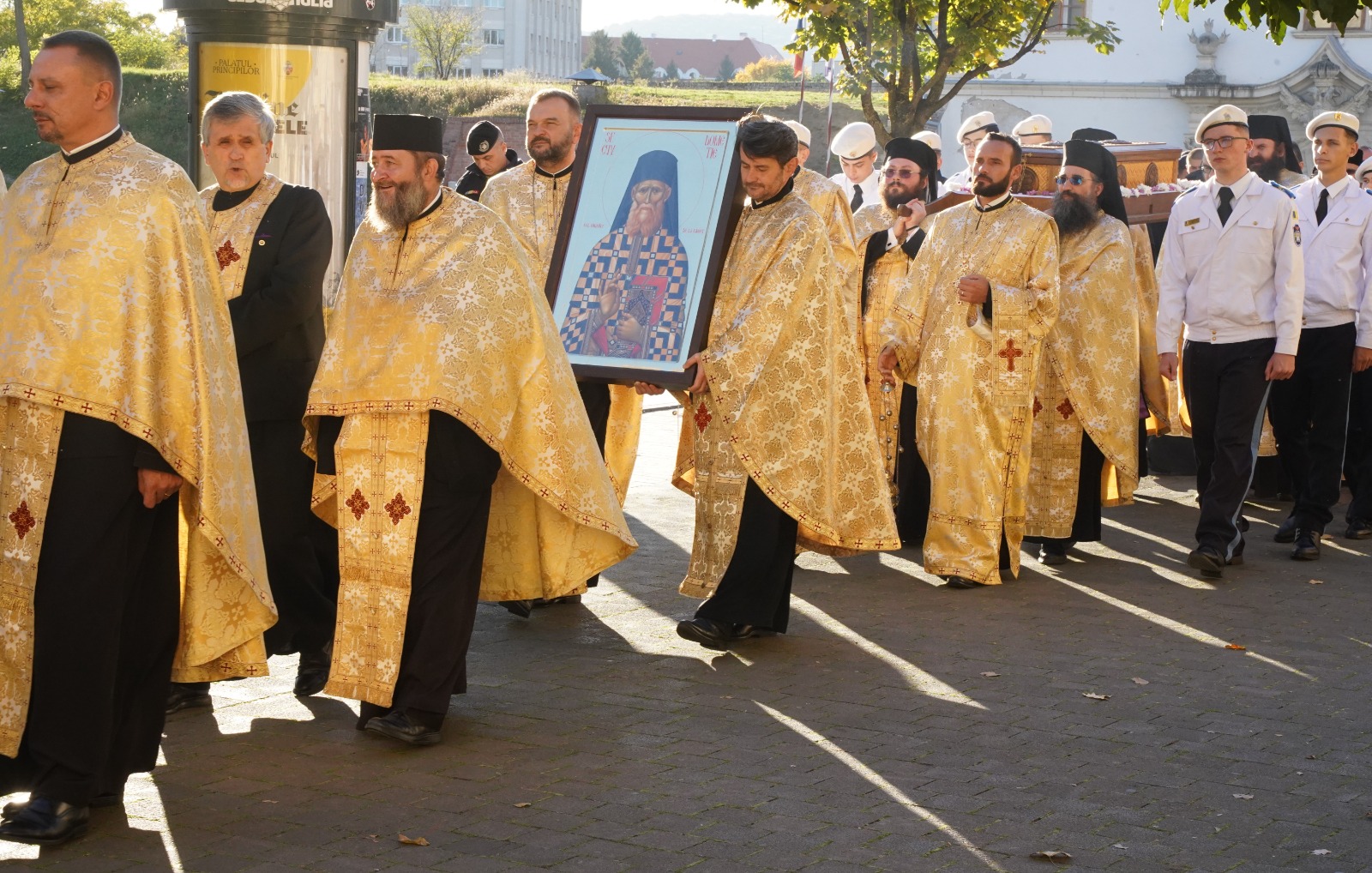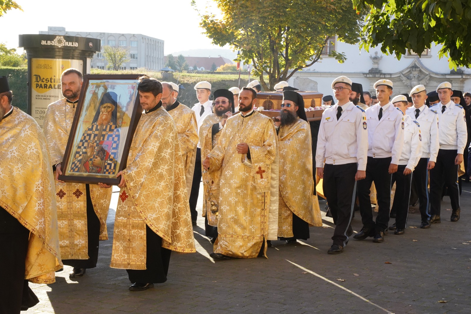În continuare, Părintele Arhiepiscop Irineu, alături de preoții și credincioșii prezenți, a luat parte la procesiunea cu sfintele moaște în jurul ansamblului Catedralei Reîntregirii. Apoi, soborul s-a îndreptat spre esplanada special amenajată în fața locașului bisericesc. În cuvântul rostit la finalul ceremoniei, Înaltpreasfințitul Părinte Irineu a evidențiat misiunea deosebită pe care Sfinții Mărturisitori Ardeleni au îndeplinit-o în timpul prozelitismului uniat. De asemenea, reliefând viețuirea Sfântului Cuvios Dometie, Arhipăstorul Alba Iuliei a subliniat faptul că „Apostolul moților” a strălucit prin profunzimea smereniei, prin practicarea milosteniei și prin slujirea totală a semenilor. La final, Ierarhul nostru i-a îndemnat pe credincioșii prezenți să profite de prezența cinstitelor moaște ale Sfântului Cuvios Dometie, care constituie o veritabilă sursă de energii dumnezeiești binefăcătoare pentru sufletele și trupurile noastre.