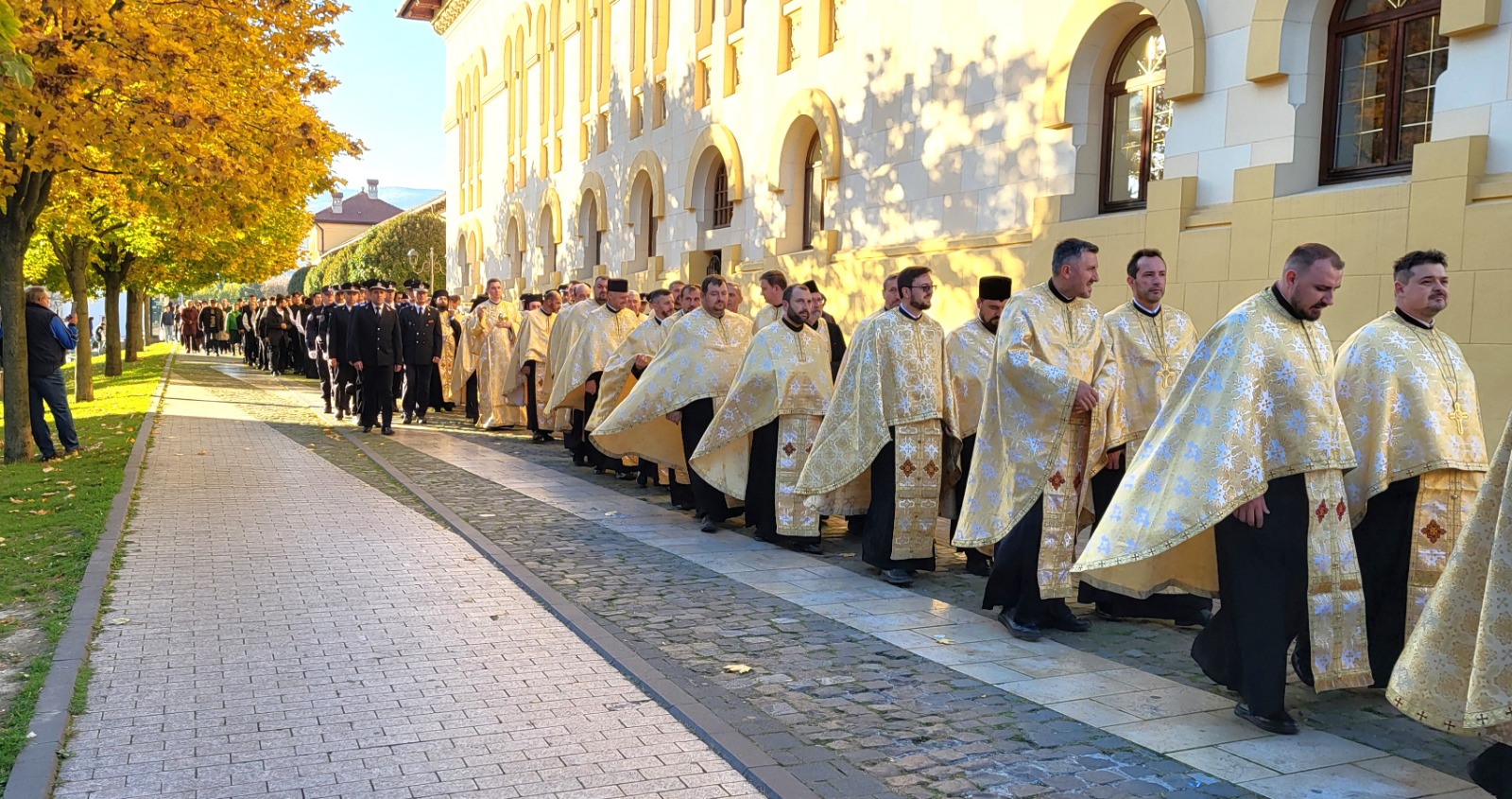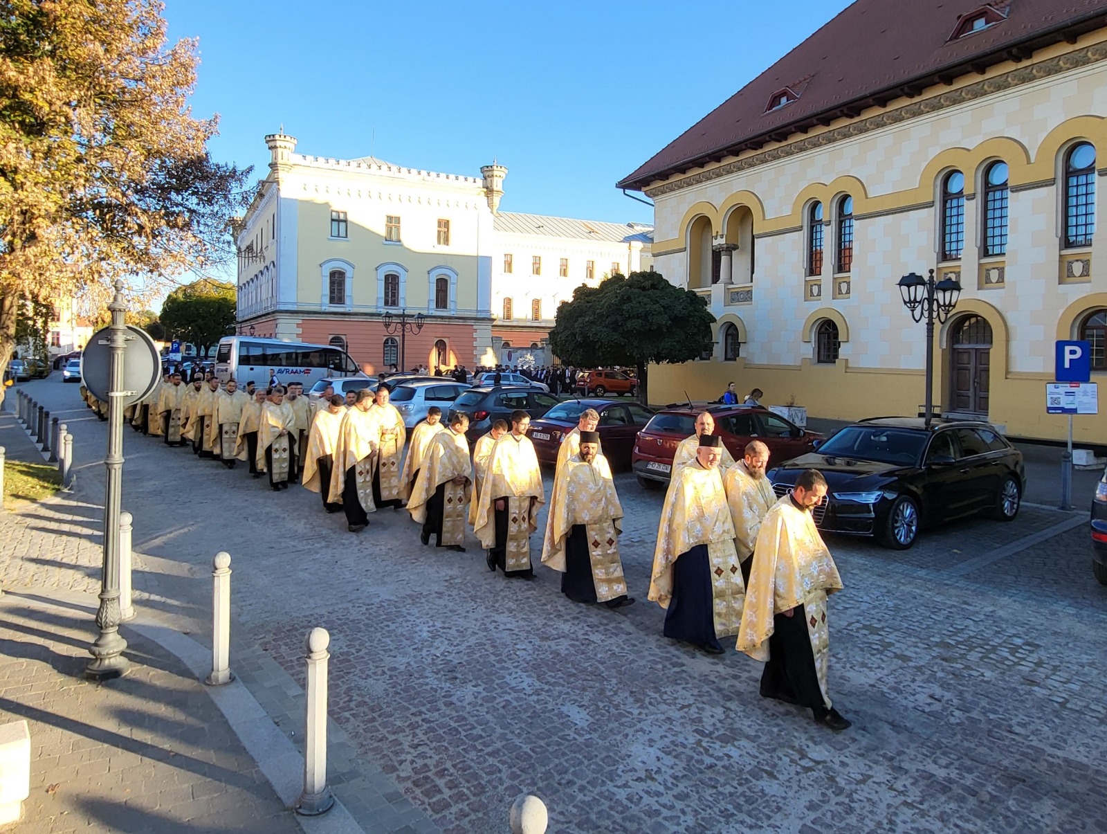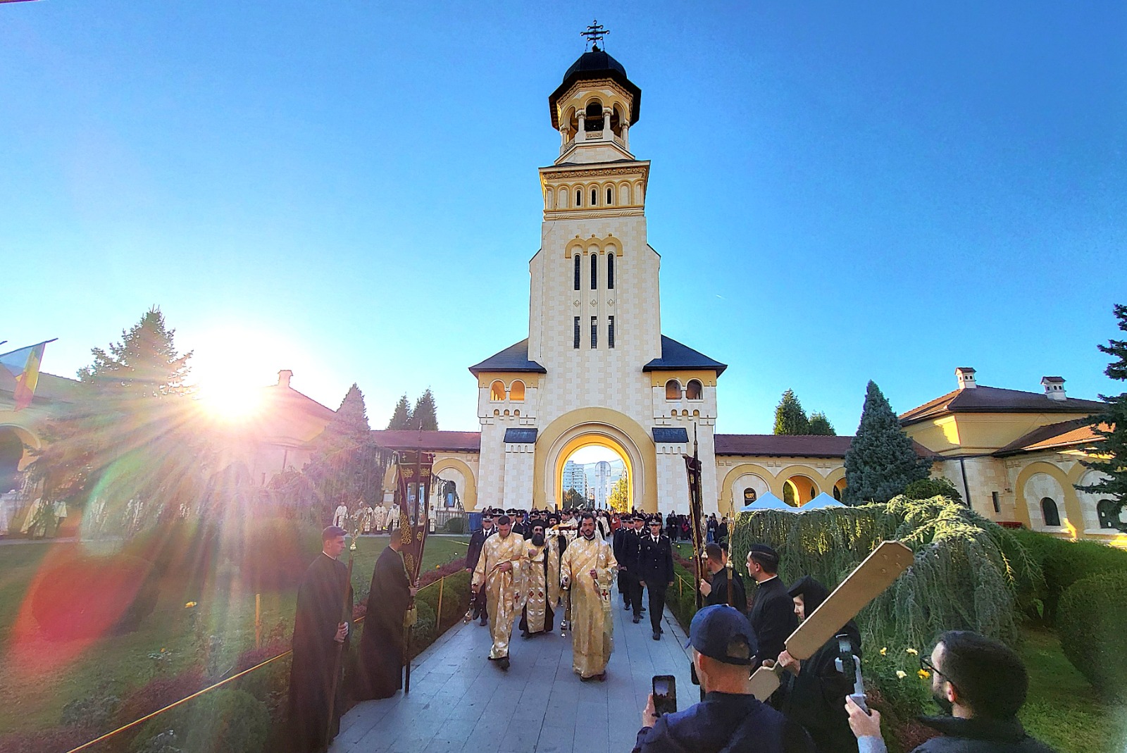În continuare, cei doi ierarhi, alături de preoții și credincioșii prezenți, au luat parte la procesiunea cu sfintele moaște în jurul ansamblului Catedralei arhiepiscopale. Apoi, soborul s-a îndreptat spre esplanada special amenajată în fața locașului de cult. În cuvântul rostit la finalul ceremoniei, Înaltpreasfințitul Părinte Irineu a reliefat viețuirea morală și virtuoasă a Sfântului Ierarh Iosif cel Nou de la Partoș, arhipăstor al românilor din Banat la jumătatea secolului al XVII-lea. De asemenea, Ierarhul nostru a evidențiat misiunea jertfelnică a Sfinților Mărturisitori Ardeleni, care, în vremuri de restriște, au luptat pentru libertatea religioasă și pentru identitatea noastră etnică. În încheiere, Chiriarhul Alba Iuliei a adresat alese mulțumiri Înaltpreasfințitului Părinte Ioan, Arhiepiscopul Timișoarei și Mitropolitul Banatului, și Preasfințitului Părinte Paisie Lugojanul, Episcop-vicar al Arhiepiscopiei Timișoarei, pentru odorul de mare preț oferit spre închinare cu prilejul sărbătorii Eparhiei noastre.