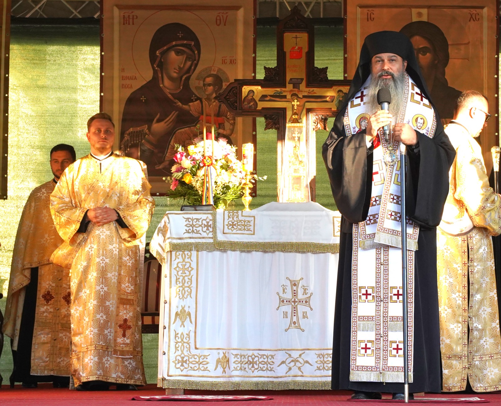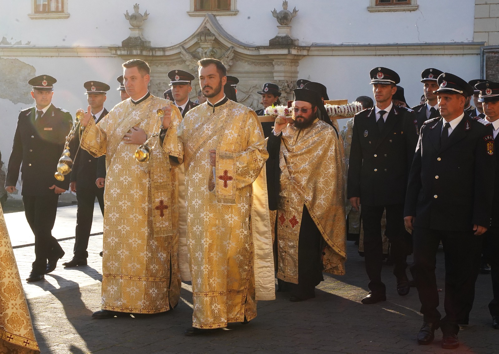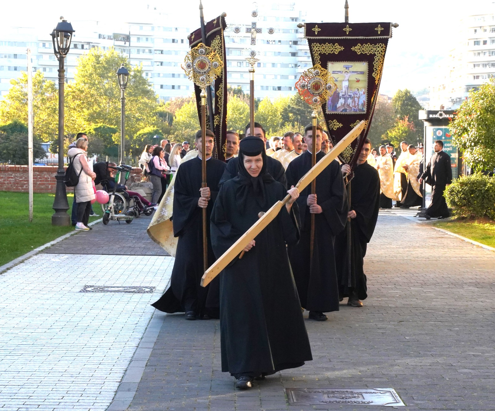 În continuare, cei doi ierarhi, alături de preoții și credincioșii prezenți, au luat parte la procesiunea cu sfintele moaște în jurul ansamblului Catedralei arhiepiscopale. Apoi, soborul s-a îndreptat spre esplanada special amenajată în fața locașului de cult. În cuvântul rostit la finalul ceremoniei, Înaltpreasfințitul Părinte Irineu a reliefat viețuirea morală și virtuoasă a Sfântului Ierarh Iosif cel Nou de la Partoș, arhipăstor al românilor din Banat la jumătatea secolului al XVII-lea. De asemenea, Ierarhul nostru a evidențiat misiunea jertfelnică a Sfinților Mărturisitori Ardeleni, care, în vremuri de restriște, au luptat pentru libertatea religioasă și pentru identitatea noastră etnică. În încheiere, Chiriarhul Alba Iuliei a adresat alese mulțumiri Înaltpreasfințitului Părinte Ioan, Arhiepiscopul Timișoarei și Mitropolitul Banatului, și Preasfințitului Părinte Paisie Lugojanul, Episcop-vicar al Arhiepiscopiei Timișoarei, pentru odorul de mare preț oferit spre închinare cu prilejul sărbătorii Eparhiei noastre.