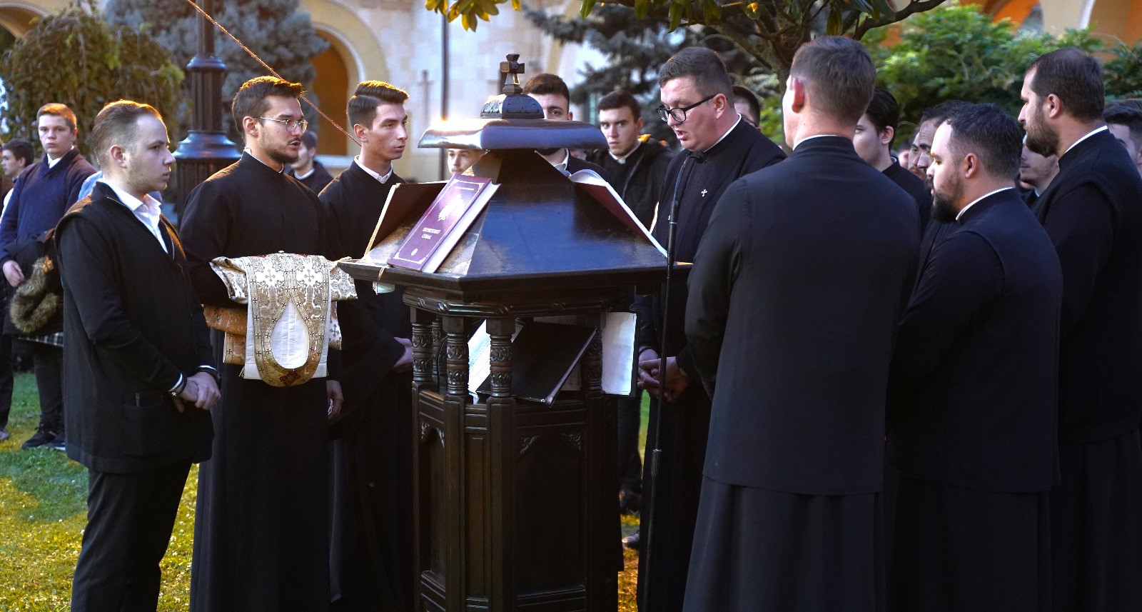 În continuare, pe esplanada special amenajată în fața Catedralei arhiepiscopale, Înaltpreasfințitul Părinte Irineu a oficiat slujba Vecerniei mari cu Litie, după care a fost citit Acatistul Sfinților Martiri Brâncoveni. În tot acest timp, sutele de credincioși prezenți s-au închinat raclei cu moaștele Sfântului Voievod Constantin Brâncoveanu, odor așezat în galeria (culoarul) de pe latura de sud a ansamblului Catedralei Încoronării. Racla cu sfintele moaște va rămâne spre închinare în vechea Cetate a Bălgradului până luni dimineața (23 octombrie), când delegația din Arhiepiscopia Bucureștilor se va întoarce în parohia „Sfântul Gheorghe Nou” din Capitală.