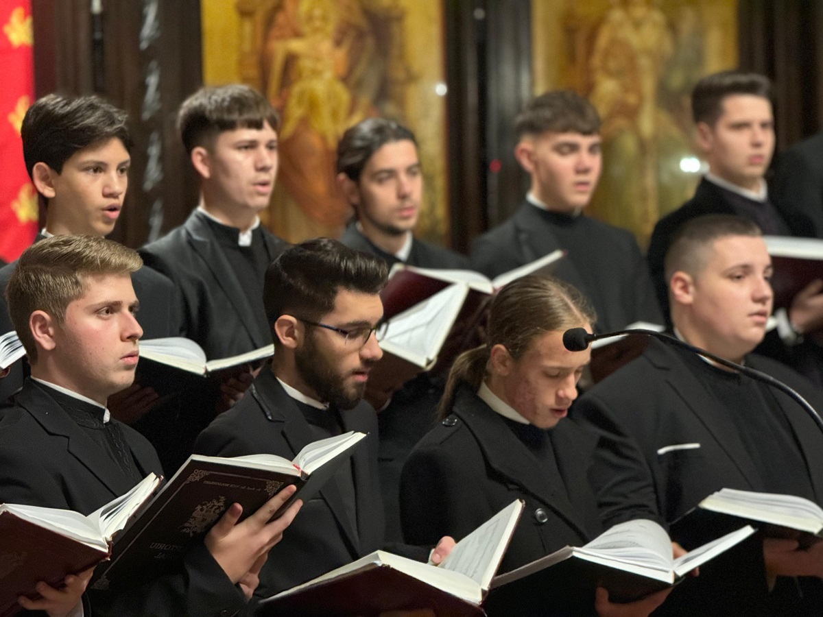 Cu binecuvântarea Înaltpreasfințitului Părinte Arhiepiscop Irineu, în perioada premergătoare slăvitului Praznic al Nașterii Domnului, Arhiepiscopia Ortodoxă a Alba Iuliei organizează, la Catedrala Reîntregirii, o suită de concerte religioase specifice perioadei liturgice în care ne aflăm. Sâmbătă, 14 decembrie 2024, de la ora 19.00, după slujba Vecerniei mari, au susținut un minunat concert de colinde Corul „Apulum” al Seminarului Teologic Ortodox „Sfântul Simion Ștefan Ștefan” din Alba Iulia și Corul de cameră „Codex Apumul”, formațiuni corale dirijate de părintele prof. dr. Nicolae Topîrcean.
