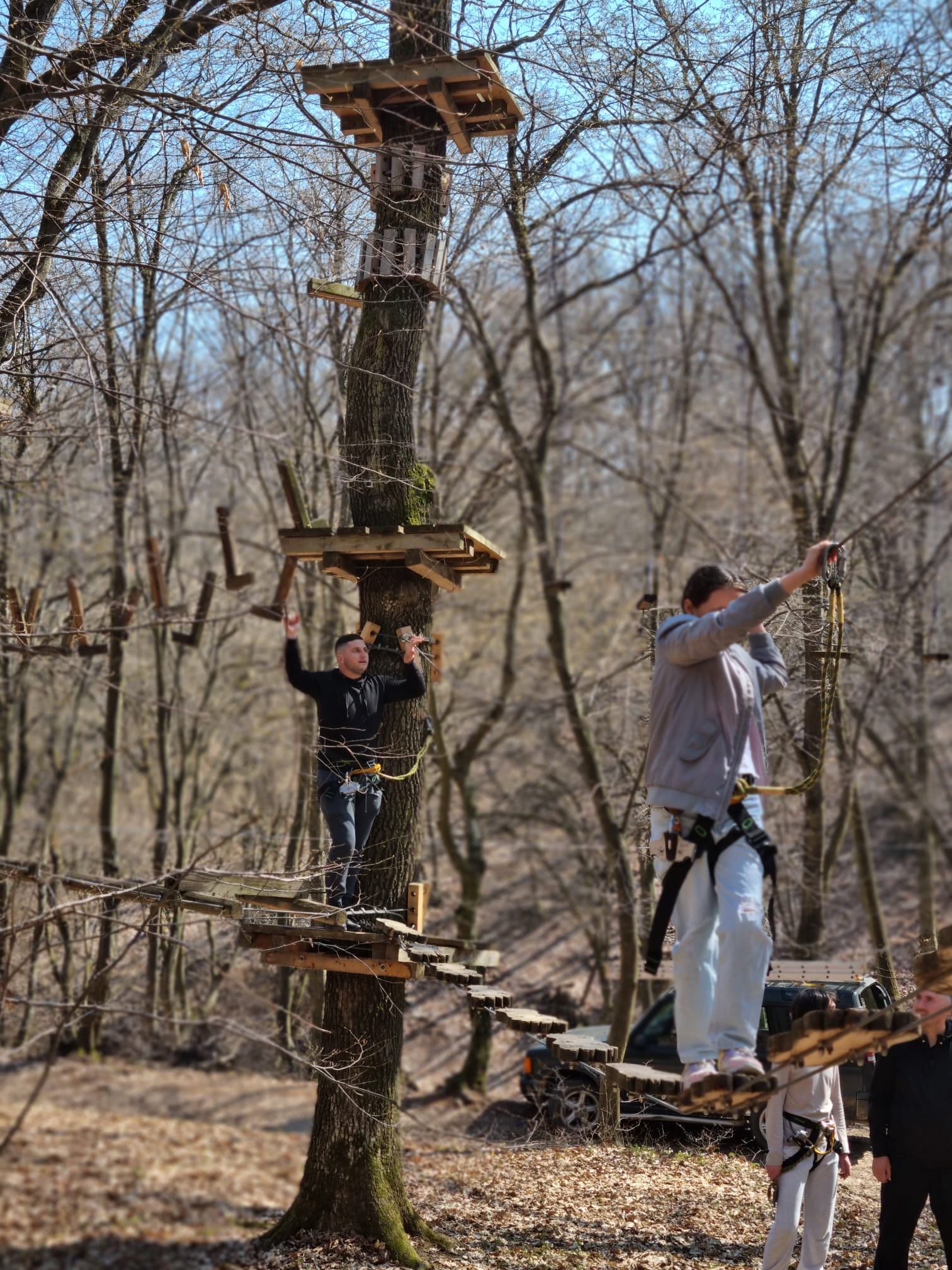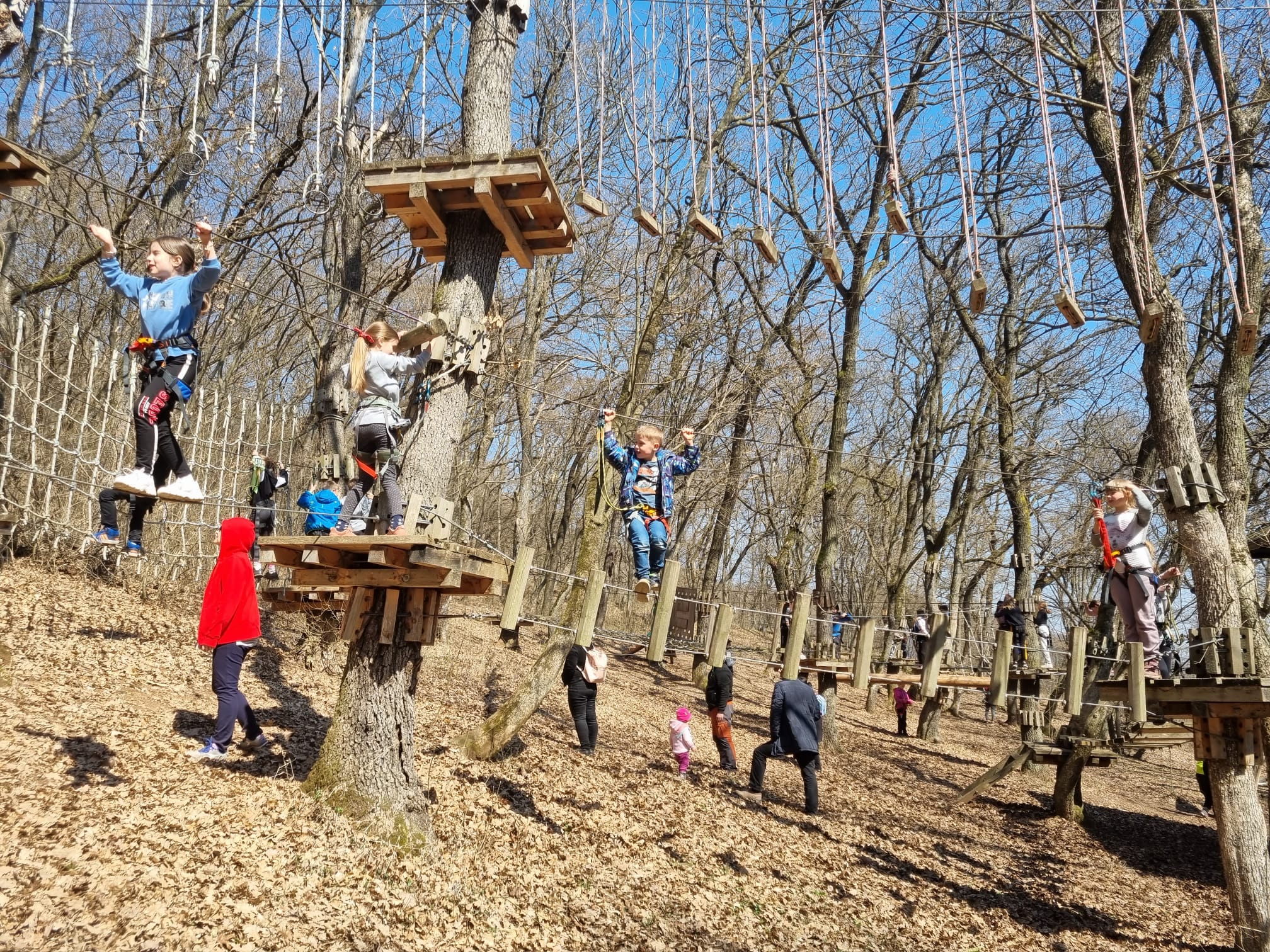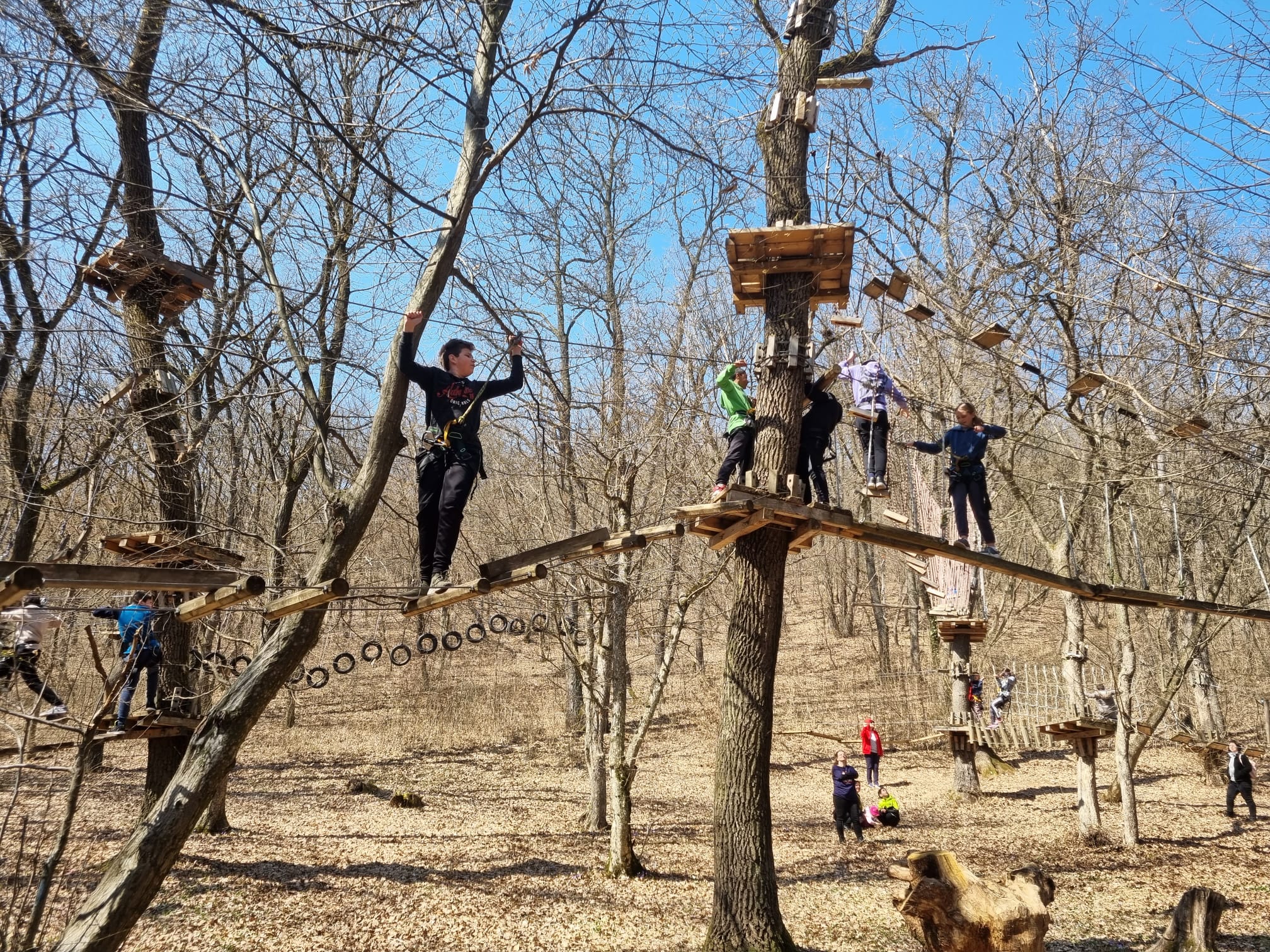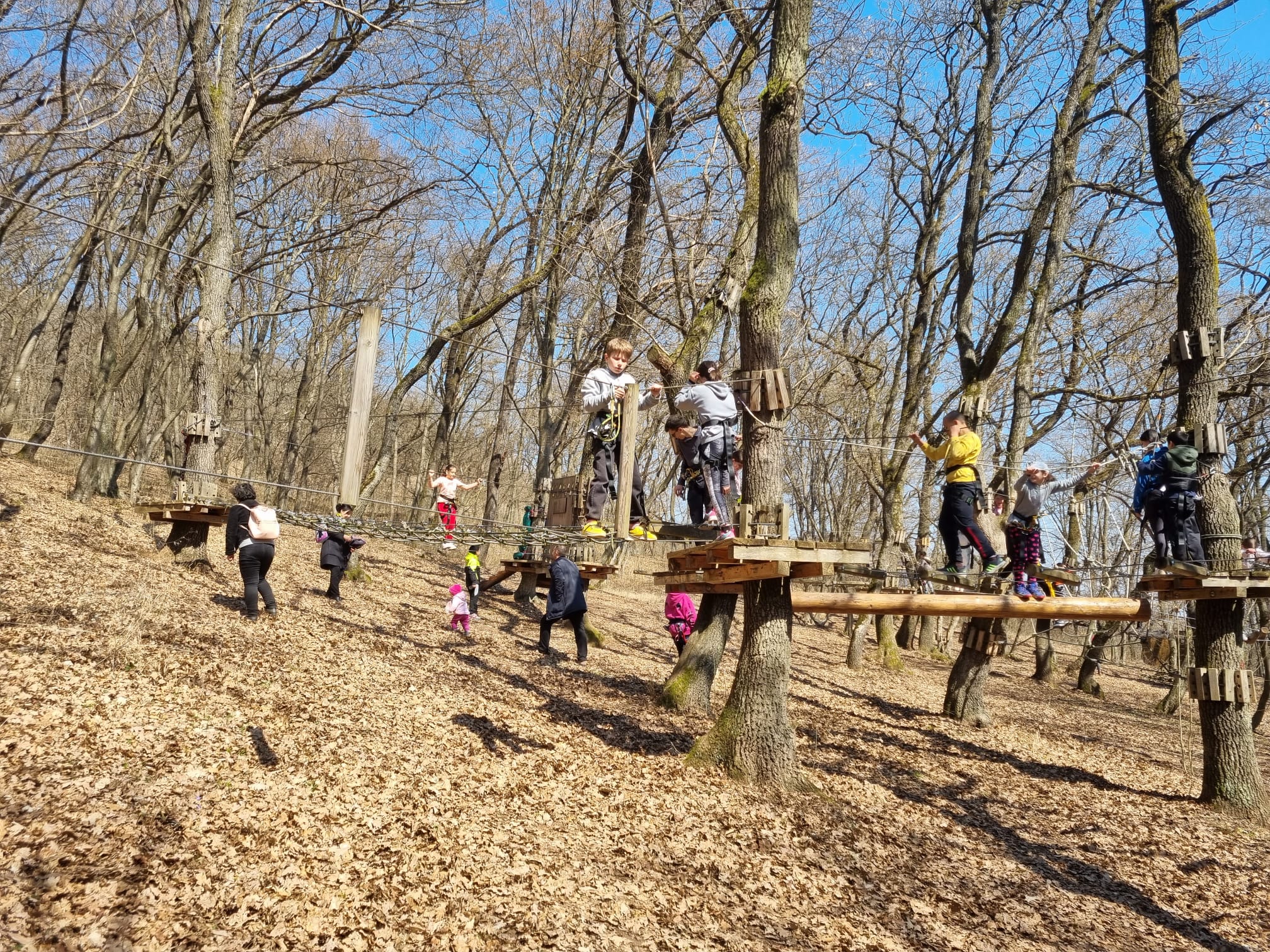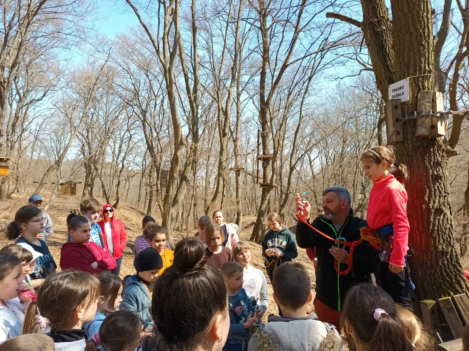 În continuare, angajații parcului de aventură au ținut un curs de instruire, necesar pentru a parcurge în siguranță traseele, și i-au echipat pe toți cei prezenți pentru a-și testa și depăși limitele fizice și psihologice. După mai bine de 2 ore în care am trecut de la curiozitate la emoție, de la frică la bucuria reușitei, cu încredere și entuziasm am pornit într-o drumeție relaxantă prin pădure. Programul zilei s-a încheiat la Panorama Alba Iulia, unde am desfășurat o serie de jocuri distractive, admirând orașul de la o margine până la cealaltă și identificând edificiile emblematice ale acestuia.
