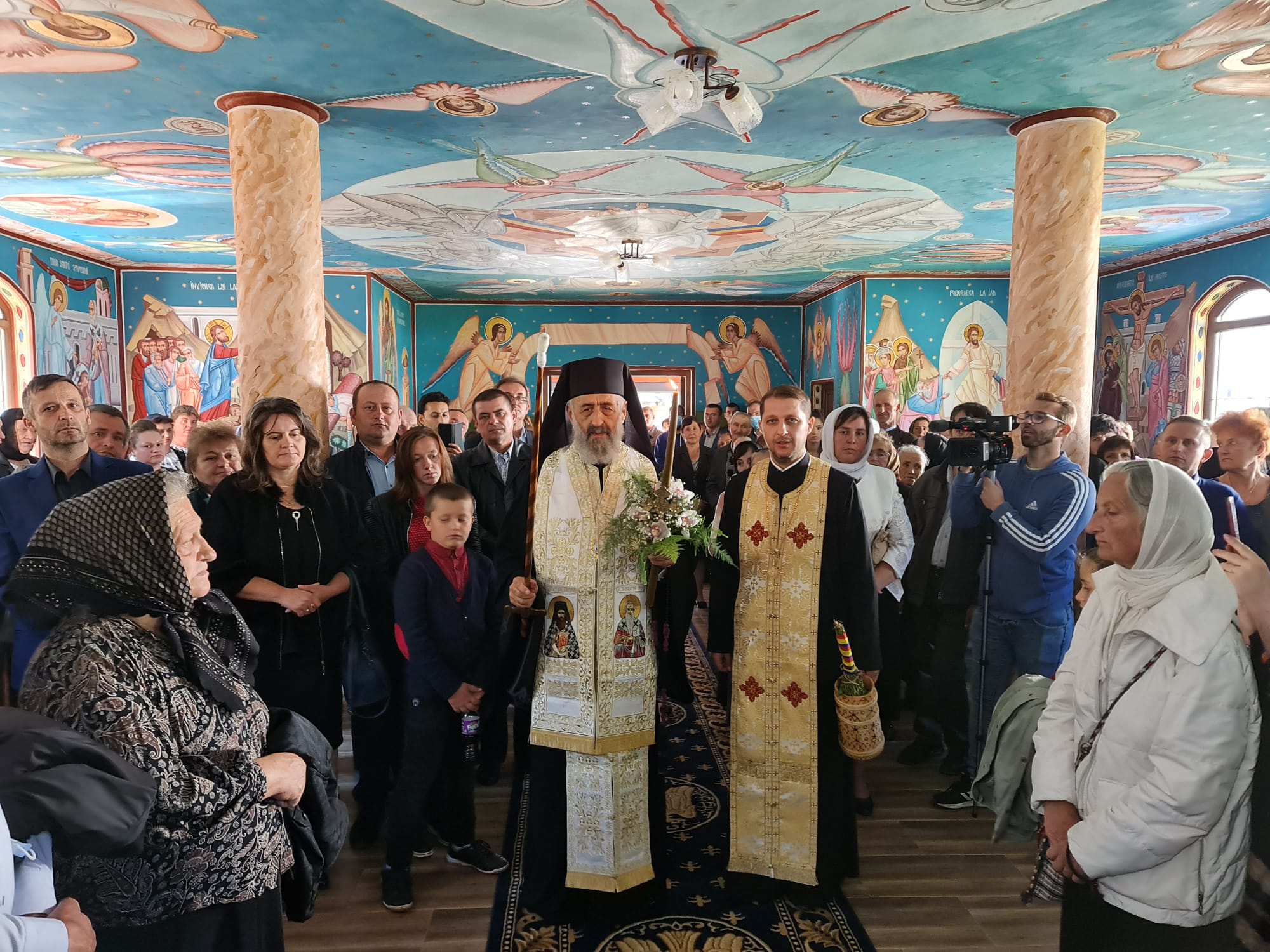La finalul Dumnezeieștii Liturghii, pentru activitatea pastoral-misionară și administrativ-gospodărească desfășurată pe parcursul anilor de slujire, părintele paroh Ciprian Dobra a fost hirotesit întru iconom-stavrofor. De asemenea, ostenitorii și binefăcătorii care au contribuit la restaurarea vechiului locaș de cult și la edificarea noii capele mortuare au primit din partea Întâistătătorului Eparhiei noastre Diplome de aleasă cinstire. În continuare, după Sfânta Liturghie, Chiriarhul nostru a săvârșit slujba de sfințire a noii capele mortuare, edificiu situat în incinta cimitirului parohial.