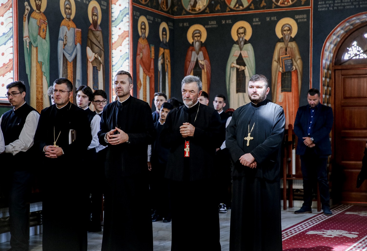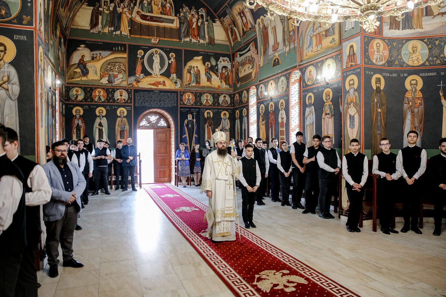 Începând cu ora 9.00, în biserica „Sfântul Simion Ștefan” și „Intrarea în biserică a Maicii Domnului” din incinta complexului școlar, a fost săvârșită Dumnezeiasca Liturghie a Sfântului Ioan Gură de Aur. Slujba a fost oficiată de către Preasfințitul Părinte Benedict Bistrițeanul, Episcop-vicar al Arhiepiscopiei Vadului, Feleacului și Clujului, absolvent al promoției 2004. Preasfinția Sa a fost înconjurat de un numeros sobor de clerici format din părinți profesori și absolvenți hirotoniți pe parcursul anilor.