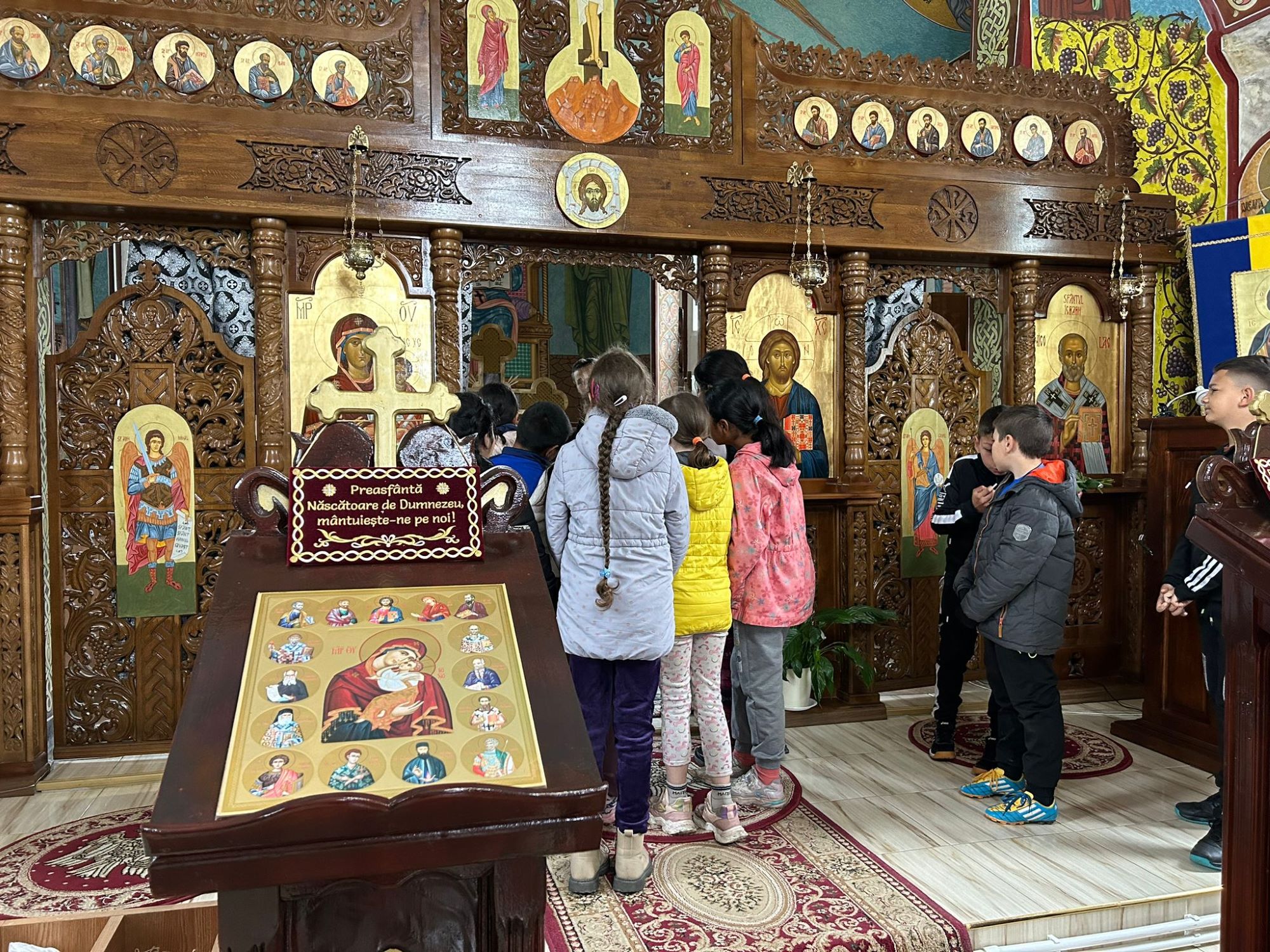 În cadrul orei de Religie, tinerii de la Școala Gimnazială din Sânmiclăuș au desfășurat mai multe activități pentru a marca „Săptămâna verde”. În acest sens, joi, 25 aprilie 2024, o parte a elevilor ciclului primar (clasele I-III) au efectuat o vizită la biserica „Sfântul Ierarh Nicolae” din localitate, pentru a se familiariza cu locașul de închinare și a deprinde dragostea pentru frecventarea slujbelor Bisericii. Aici, părintele paroh Daniel Cirebea i-a primit cu multă bucurie pe învățăcei, rostind pentru aceștia un cuvânt duhovnicesc în care le-a explicat specificul perioadei liturgice în care ne aflăm și a subliniat importanța frecventării slujbelor oficiate în locașurile noastre de închinare. De asemenea, pentru a stârni curiozitatea și a capta atenția celor mici, părintele paroh le-a prezentat acestora părțile bisericii, dar și principalele obiecte de cult, nelipsite din Sfântul Altar. În acest fel, micii creștini au înțeles rostul Sfintei Evanghelii, al sfintelor vase, al cădelniței, dar și al chivotului păstrat în permanență pe Sfânta Masă.