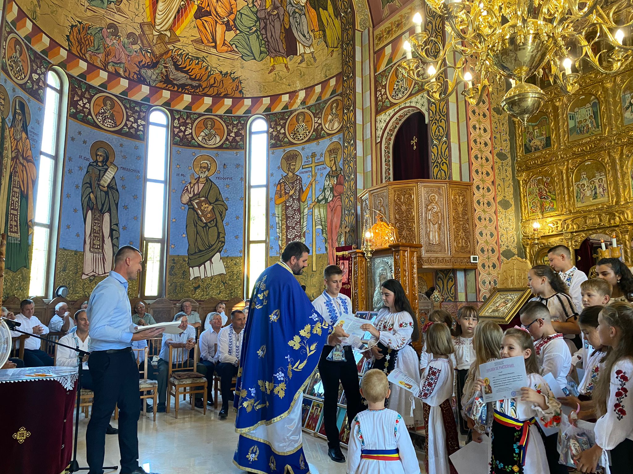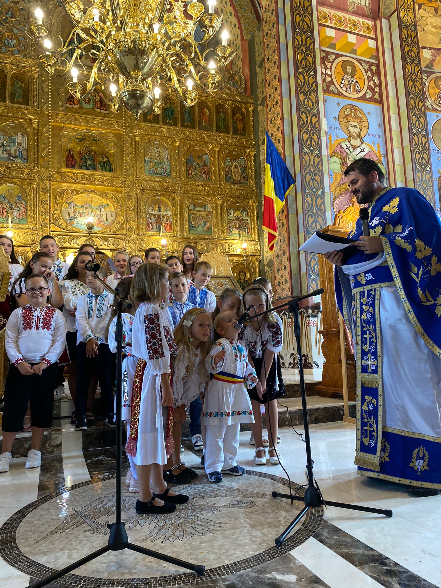 Încheierea Școlii de vară a avut loc în ziua Praznicului Adormorii Maicii Domnului, prin participarea la Sfânta Liturghie, după care tinerii au susținut un moment artistic în care au recitat poezii în cinstea Maicii Sfinte. La final, i-am premiat pe toți participanții mici și mari, oferindu-le diplome și pachete cu dulciuri. De asemenea, voluntarilor le-am dăruit diverse cărți religioase. Îi mulțumim Preasfintei Născătoare de Dumnezeu pentru aceste momente de neuitat și dăm slavă lui Dumnezeu pentru toate!