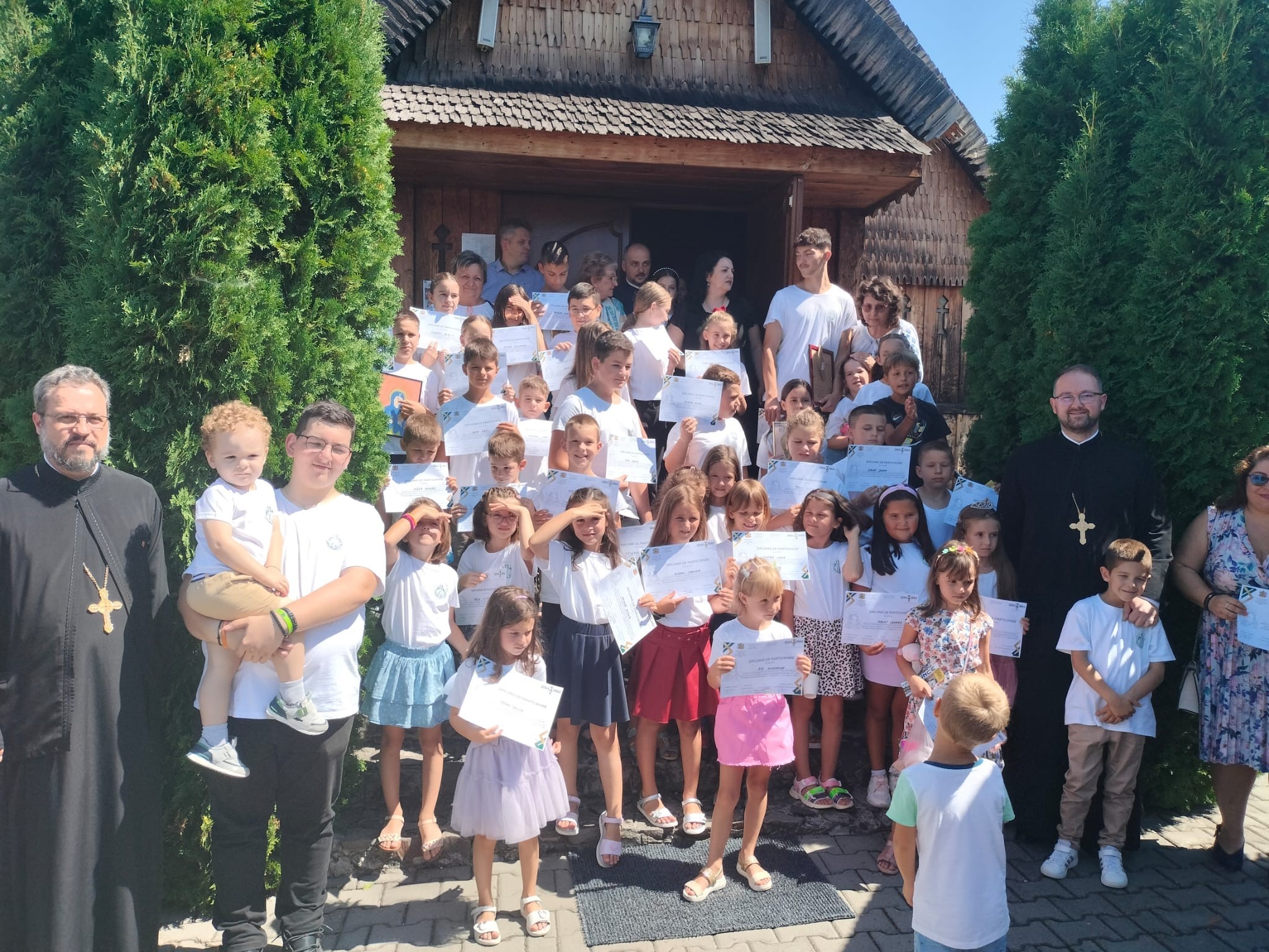 Duminică, 11 august 2024, activitățile s-au încheiat într-un cadru festiv. Copiii, alături de părinți și bunici, au particpat la Sfânta Liturghie, prilej cu care au fost sfințite icoanele realizate în decursul activităților. Tinerii participanți au adus mulțumire Maicii Domnului pentru toate binefacerile revărsate asupra lor în această perioadă, rugându-o să le poarte de grijă. Mulțumim tuturor celor implicați, în special părintelui protopop Răzvan Șulea, doamnei director adjunct Ilinca Mureșanu și doamnei profesoare Alina Bexa pentru organizarea și coordonarea acestei Școli de vară.