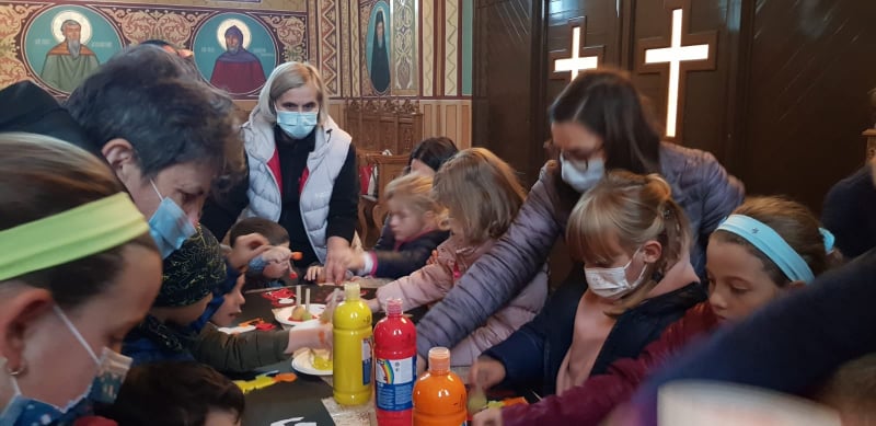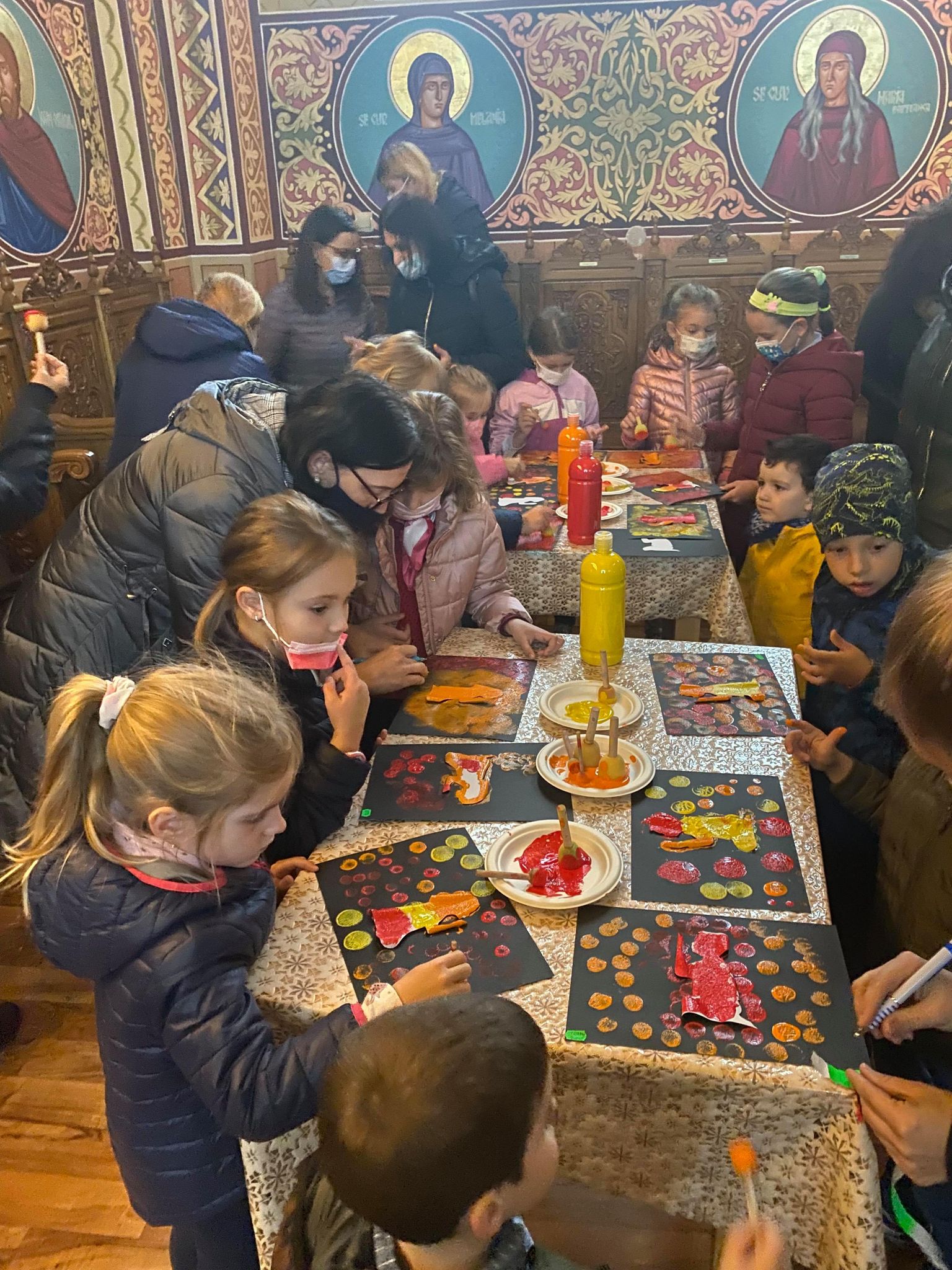 Ulterior, micii „cinefili” s-au împărțit în două grupe de lucru: cei din învățământul preșcolar au participat la un atelier de pictură, având ca temă centrală rugăciunea. Cu multă imaginație și pricepere, utilizând tehnica ștampilării, aceștia au realizat tablouri care înfățișează propria lor personalitate atunci când comunică cu Dumnezeu prin rugăciune. Elevii din învățământul primar și gimnazial au participat activ la o sesiune de dezbateri pe seama celor extrase din filmul vizionat, concluzionându-se că fiecare dintre noi trebuie să descoperim și să valorificăm în propria persoană cele trei virtuți creștine, fără de care nu putem deveni oameni ai lui Dumnezeu: „Şi acum rămân acestea trei: credinţa, nădejdea, dragostea. Iar mai mare dintre acestea este dragostea.” (I Corinteni 13, 13).