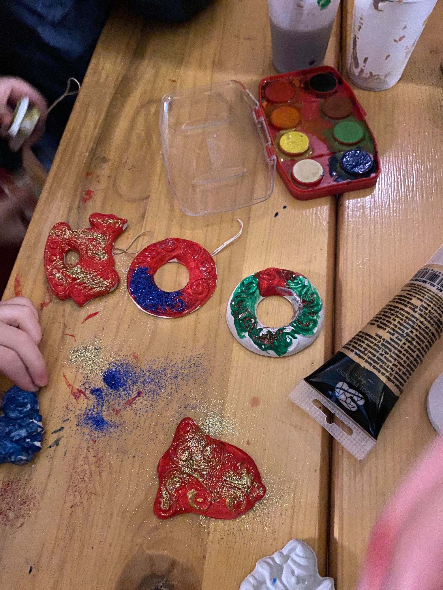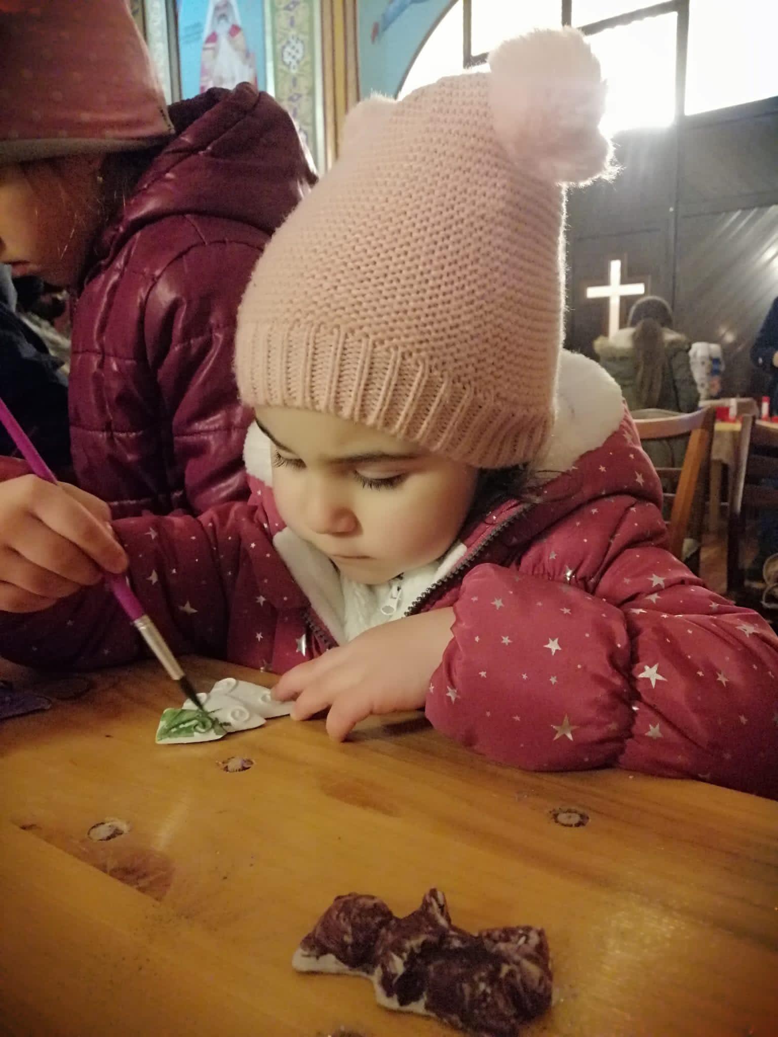 În cea de-a doua parte a întâlnirii a avut loc o activitate creativ-educativă, în cadrul căreia tinerii, cu multă pricepere și dibăcie, și-au valorificat imaginația și talentul artistic prin confecționarea de decorațiuni cu tematica Crăciunului. Astfel, utilizând tehnica picturii, decoupage-ului, lipiturii etc., au rezultat o varietate de obiecte de decor ce vor reda o atmosferă aparte – de poveste – casei și vor înfrumuseța bradul fiecărui tânăr artist. Toate acestea s-au derulat într-o atmosferă caldă și prietenoasă, cu aromă de portocale și scorțișoară, finalul întâlnirii fiind marcat printr-o mică agapă, organizată cu sprijinul părintelui Mihai Dumitrescu, Inspector social eparhial în județul Mureș, și al doamnei prof. Carmen Nicoară, Director al Școlii Gimnaziale Petelea.