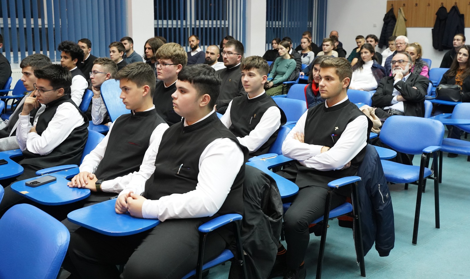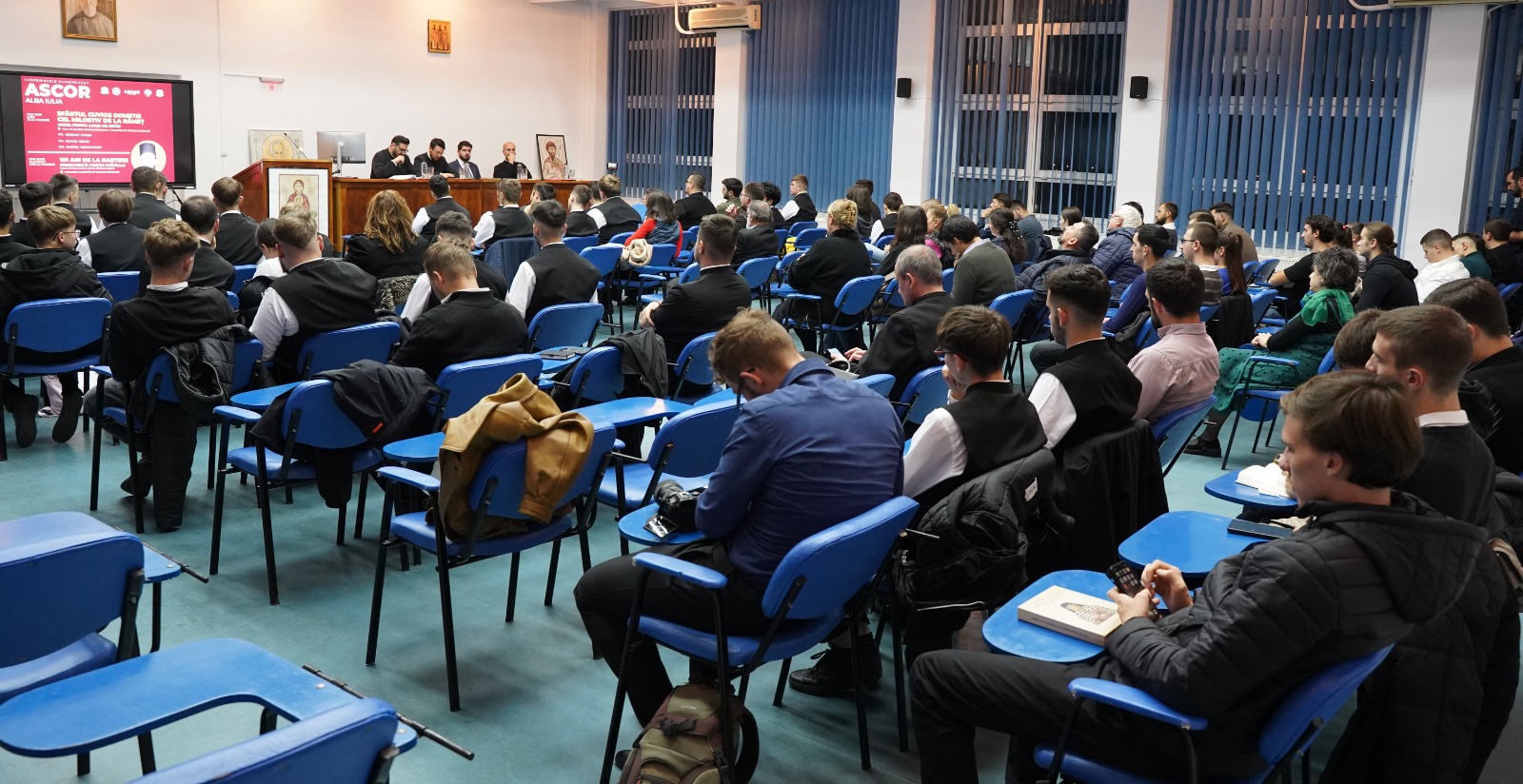 Cu binecuvântarea Înaltpreasfințitului Părinte Arhiepiscop Irineu, în seara zilei de luni, 13 octombrie a.c., Asociația Studenților Creștin-Ortodocși Români (ASCOR) – Filiala Alba Iulia a organizat prima conferință duhovnicească din anul universitar 2025-2026. Evenimentul, intitulat generic „Sfântul Cuvios Dometie cel Milostiv de la Râmeț – model pentru lumea de astăzi”, s-a desfășurat începând cu ora 19.00, în Aula Mare „Sfântul Preot Mărturisitor Dumitru Stăniloae” din incinta Facultății de Teologie Ortodoxă din Alba Iulia. Manifestarea a fost precedată de oficierea slujbei Vecerniei mari cu Litie, în paraclisul „Sfinții Trei Ierarhi” din incinta instituției de învățământ, săvârșite de la ora 18.00.