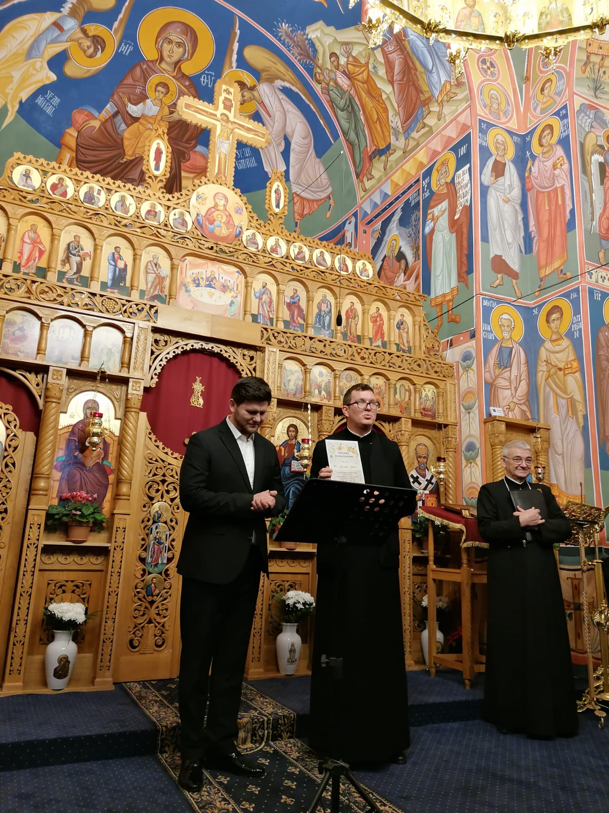Ultimii colindători au fost membrii corului mixt al Facultății de Teologie Ortodoxă din Alba Iulia, format din studenți, masteranzi și doctoranzi ai acestei nobile instituții de învățământ. Corul a luat naștere în anul 2014, la inițiativa dirijorului pr. prof. univ. dr. Domin Adam, odată cu înființarea Secției de muzică bisericească în cadrul Facultății. Cu toate că este un grup tânăr și dinamic, corul a fost prezent la nenumărate spectacole și concerte, bucurându-se de realizări frumoase și de aprecierea publicului ori de câte ori aceștia au cântat pe scenele românești. Studenții au interpretat colinde din repertoriul românesc, dar și din cel internațional, impresionând pe credincioși cu colinda în limba ucraineană „Sveatîi vecir” (Daridanka), prelucrare de melodie populară și versuri de Oleg Stadnik, și cu „Ukuthula”, colindă populară tradițională din Africa de Sud. De asemenea, s-au alăturat celorlalți interpreți membrii Grupului folcloric al secției de Muzică religioasă, coordonați de către părintele drd. Nicolae-Călin Bulac.