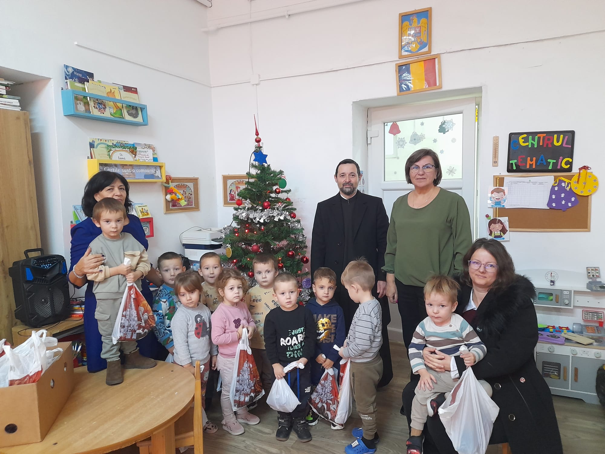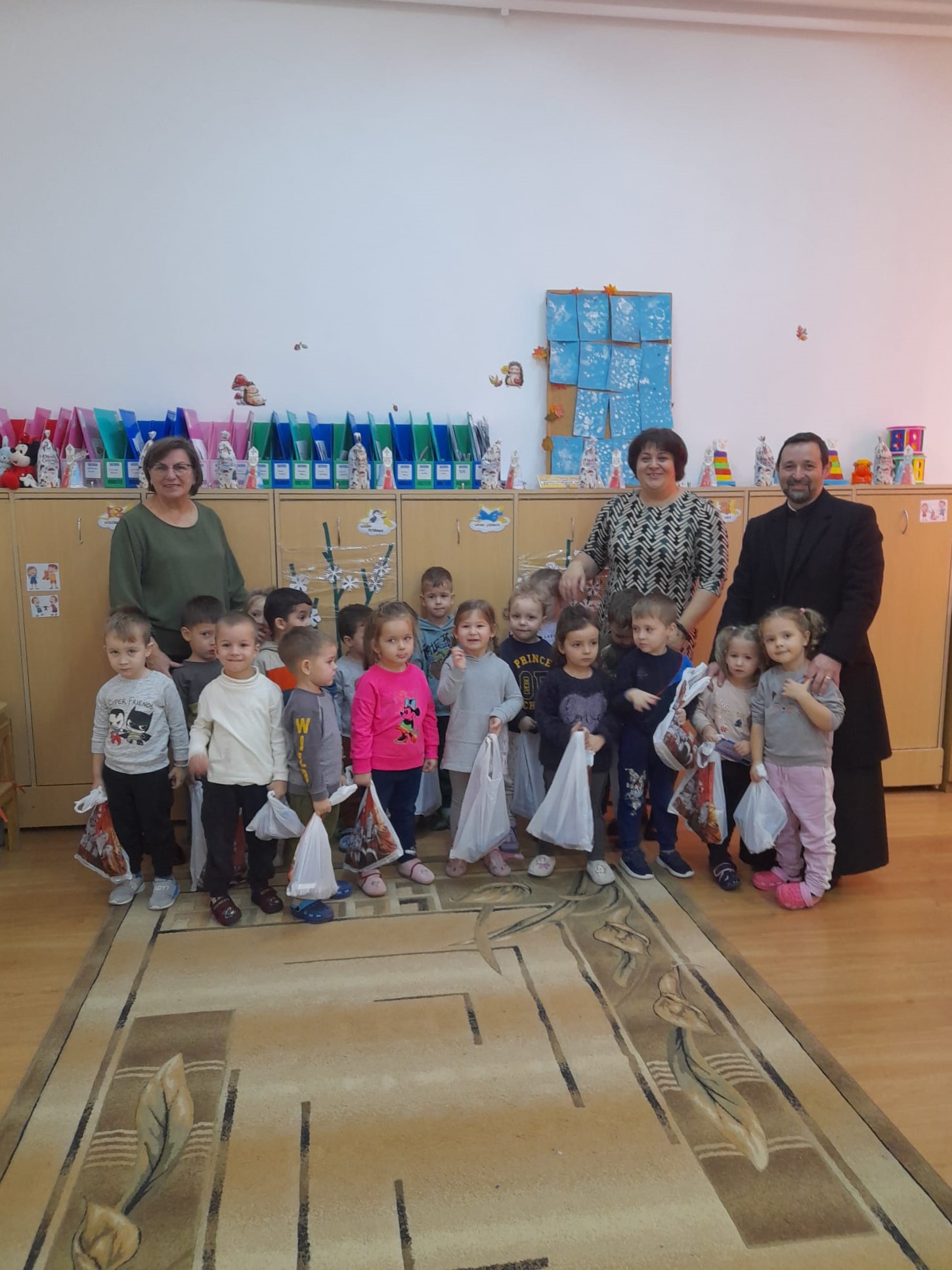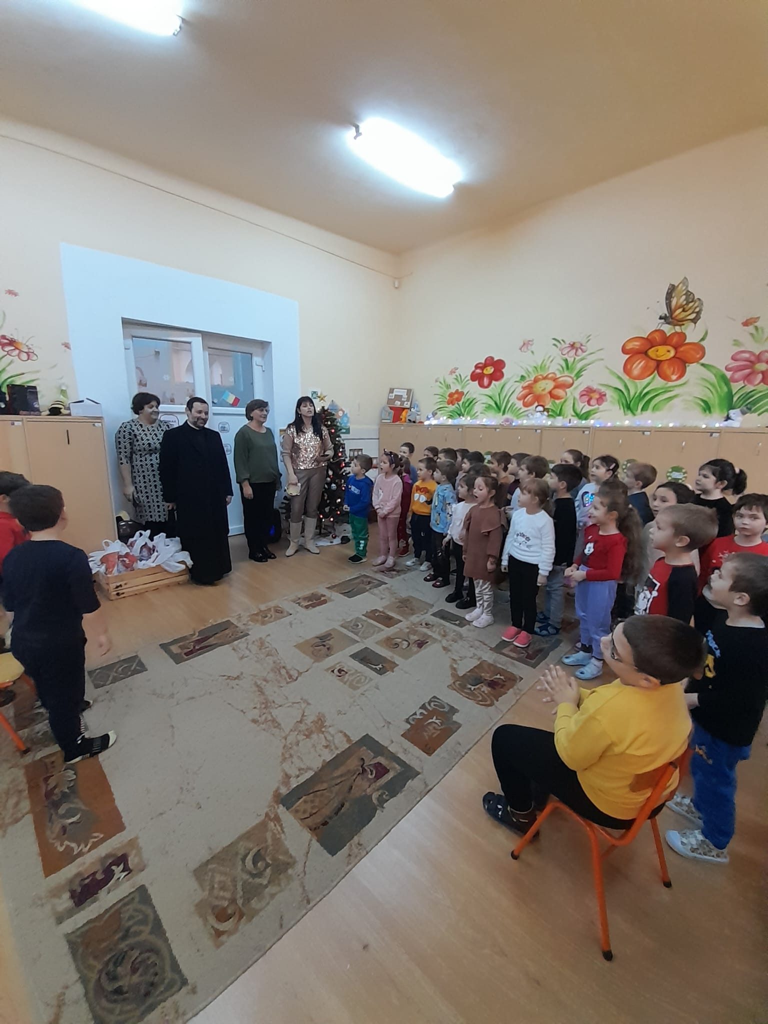 Marți, 5 decembrie 2023, Grădinițele cu Program Prelungit nr. 2 și nr. 4 din municipiul Târnăveni, coordonate de către doamna director prof. înv. preșc. Lucreția Grec, au îmbrăcat haine de sărbătoare, în așteptarea praznicului foarte iubit de copii, al Sfântului Ierarh Nicolae. Începând cu ora 10:15, compartimentul de asistență socială al protopopiatului Târnăveni, prin grija părintelui protopop Sergiu Dumitru, a oferit pachete cu dulciuri copiilor înscriși la cele două grădinițe. Cei mici l-au primit cu multă bucurie și dragoste, alături de doamna director și doamnele educatoare, cântând colinde, desenând sau confecționând obiecte specifice acestei perioade.