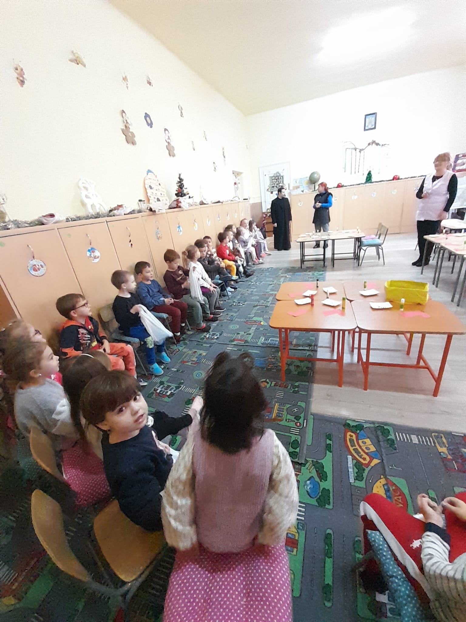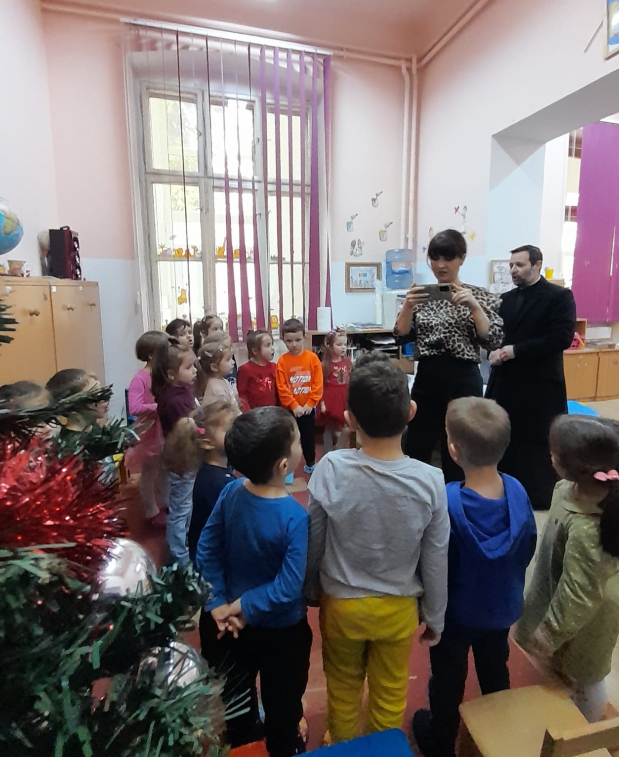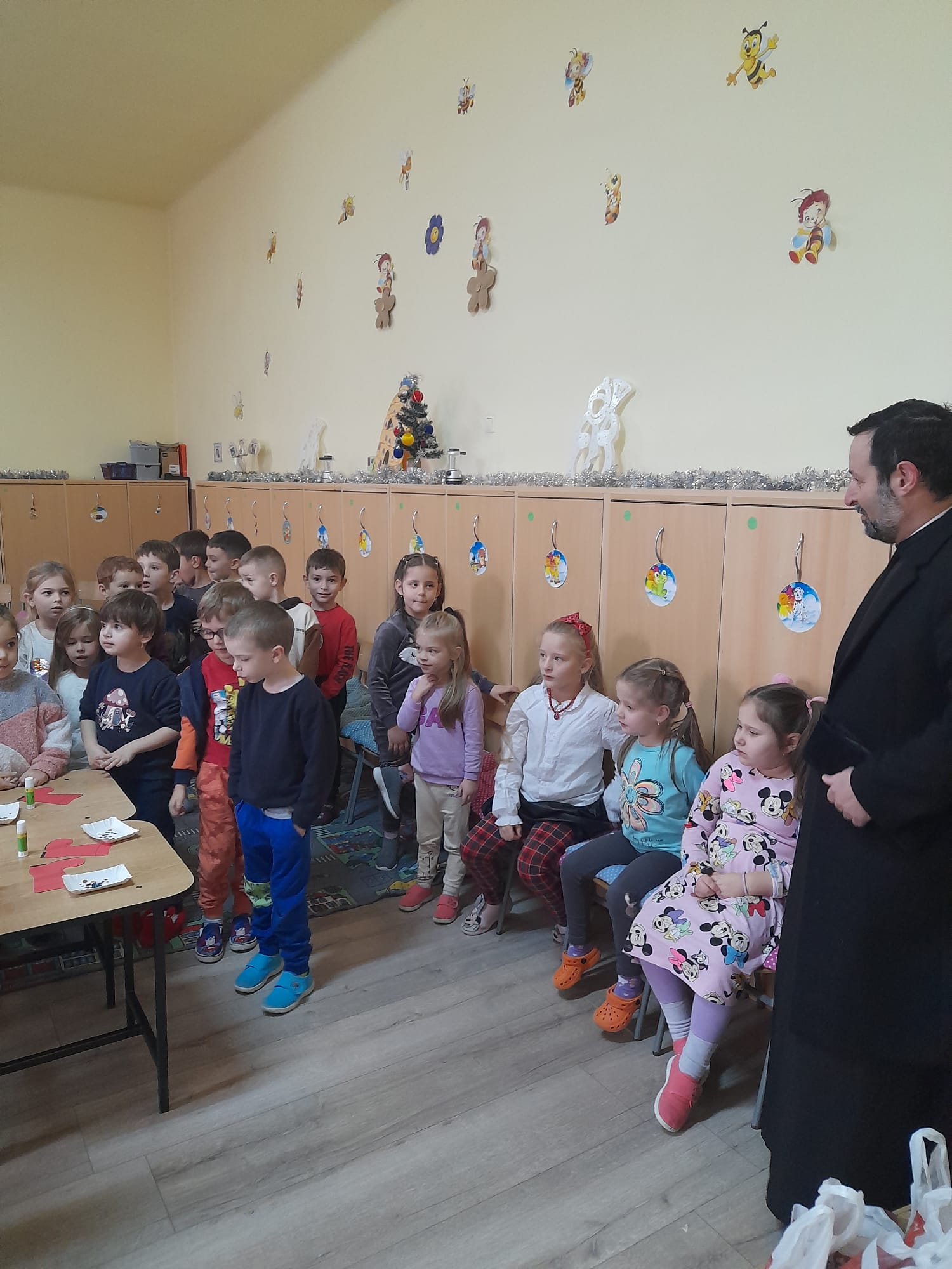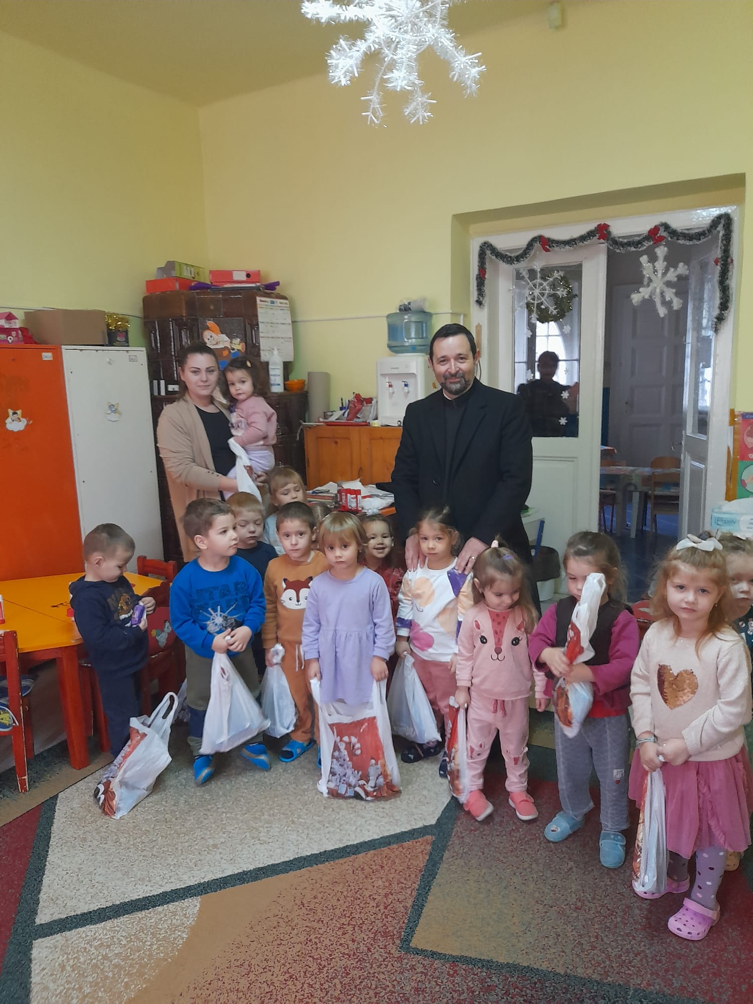 Marți, 5 decembrie 2023, Grădinițele cu Program Prelungit nr. 2 și nr. 4 din municipiul Târnăveni, coordonate de către doamna director prof. înv. preșc. Lucreția Grec, au îmbrăcat haine de sărbătoare, în așteptarea praznicului foarte iubit de copii, al Sfântului Ierarh Nicolae. Începând cu ora 10:15, compartimentul de asistență socială al protopopiatului Târnăveni, prin grija părintelui protopop Sergiu Dumitru, a oferit pachete cu dulciuri copiilor înscriși la cele două grădinițe. Cei mici l-au primit cu multă bucurie și dragoste, alături de doamna director și doamnele educatoare, cântând colinde, desenând sau confecționând obiecte specifice acestei perioade.