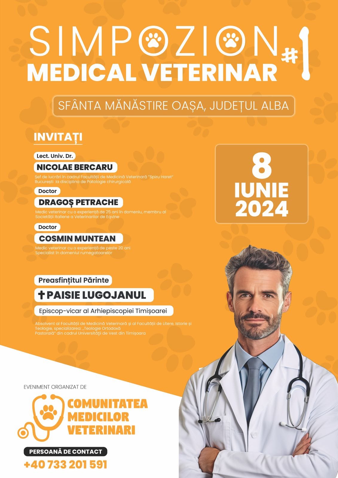 În data de 8 iunie 2024, la Mănăstirea Oașa, se va desfășura primul simpozion medical veterinar, care va reuni specialiști din domeniu, dornici de a împărtăși cunoștințele și experiența dobândite de-a lungul anilor. Întâlnirea este organizată de un grup de medici veterinari, cristalizat în jurul Mănăstirii Oaşa, și se adresează atât celor ce activează în domeniu, cât și tuturor celorlalți pentru care medicina veterinară prezintă interes.