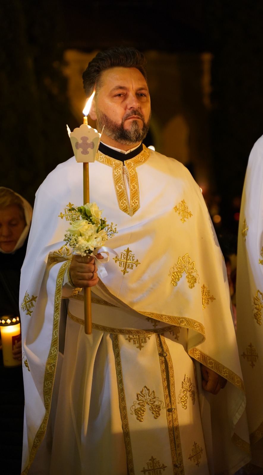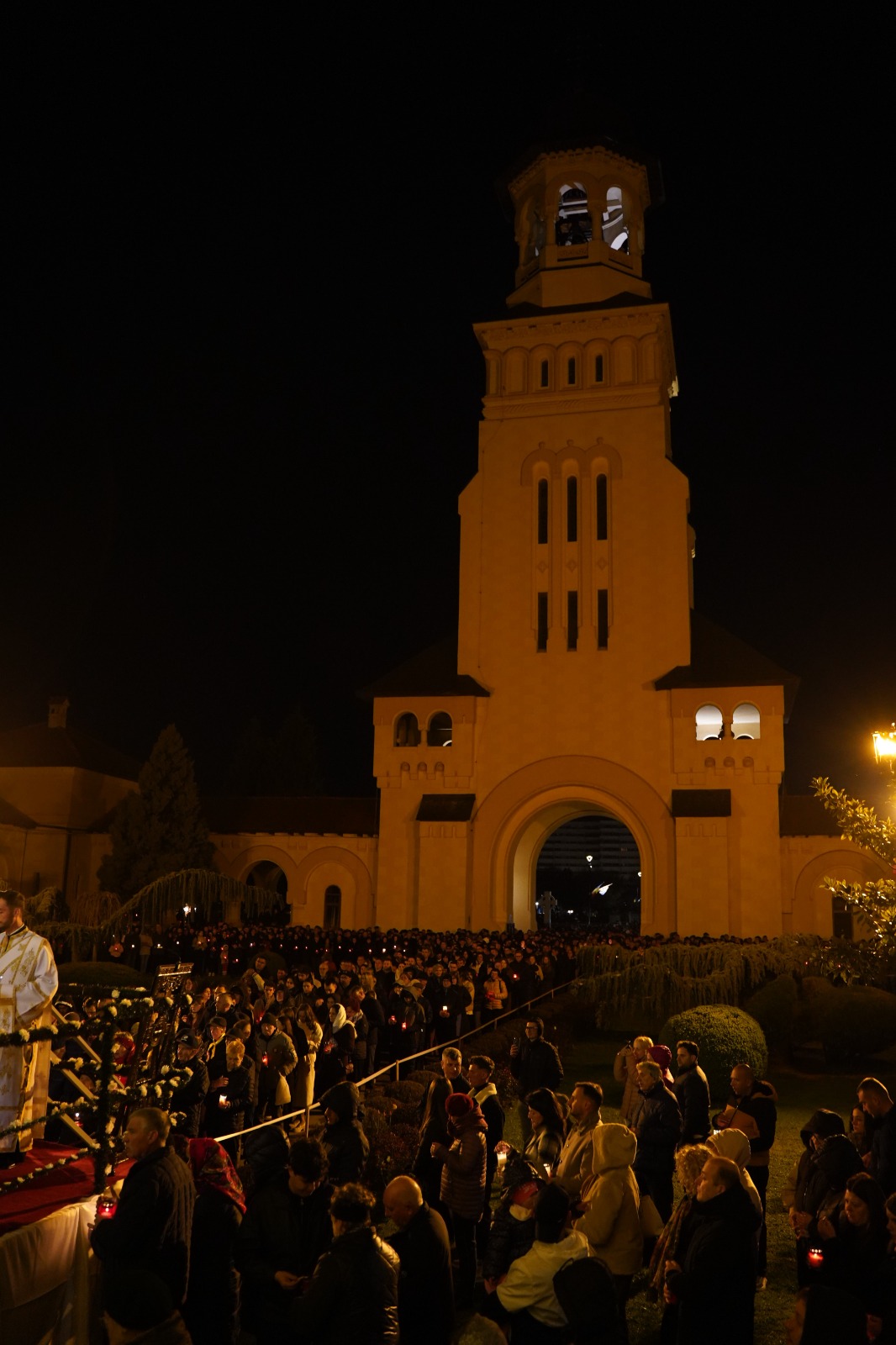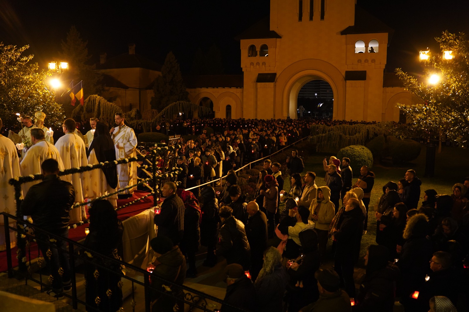 În Duminica Sfintelor Paști, zi în care creștinii dreptslăvitori prăznuiesc Învierea Domnului nostru Iisus Hristos, Înaltpreasfințitul Părinte Arhiepiscop Irineu a fost prezent la Catedrala Reîntregirii și Încoronării din vechea Cetate a Bălgradului. Începând cu ora 0.00, pe esplanada special amenajată în fața locașului de închinare, Ierarhul nostru, înconjurat de un numeros sobor de clerici, a oficiat slujba Utreniei Sfintei Învieri și a rostit cuvântul de învățătură, în prezența a mii de credincioși din Cetatea Alba Iuliei. În continuare, de la ora 1.15, Întâistătătorul Eparhiei noastre a celebrat Dumnezeiasca Liturghie a Sfântului Ioan Gură de Aur în Catedrala arhiepiscopală. Răspunsurile liturgice au fost oferite de către Corala „Sfânta Treime”, condusă de către tânărul Antonio Rotar.