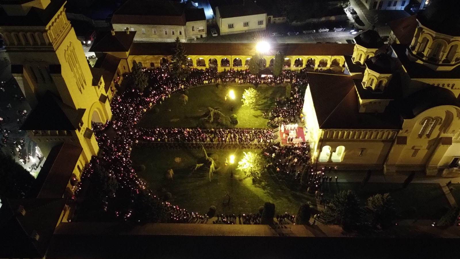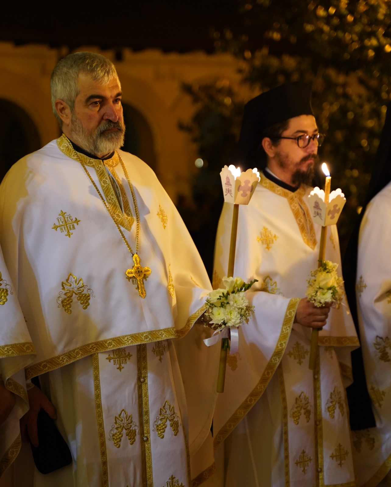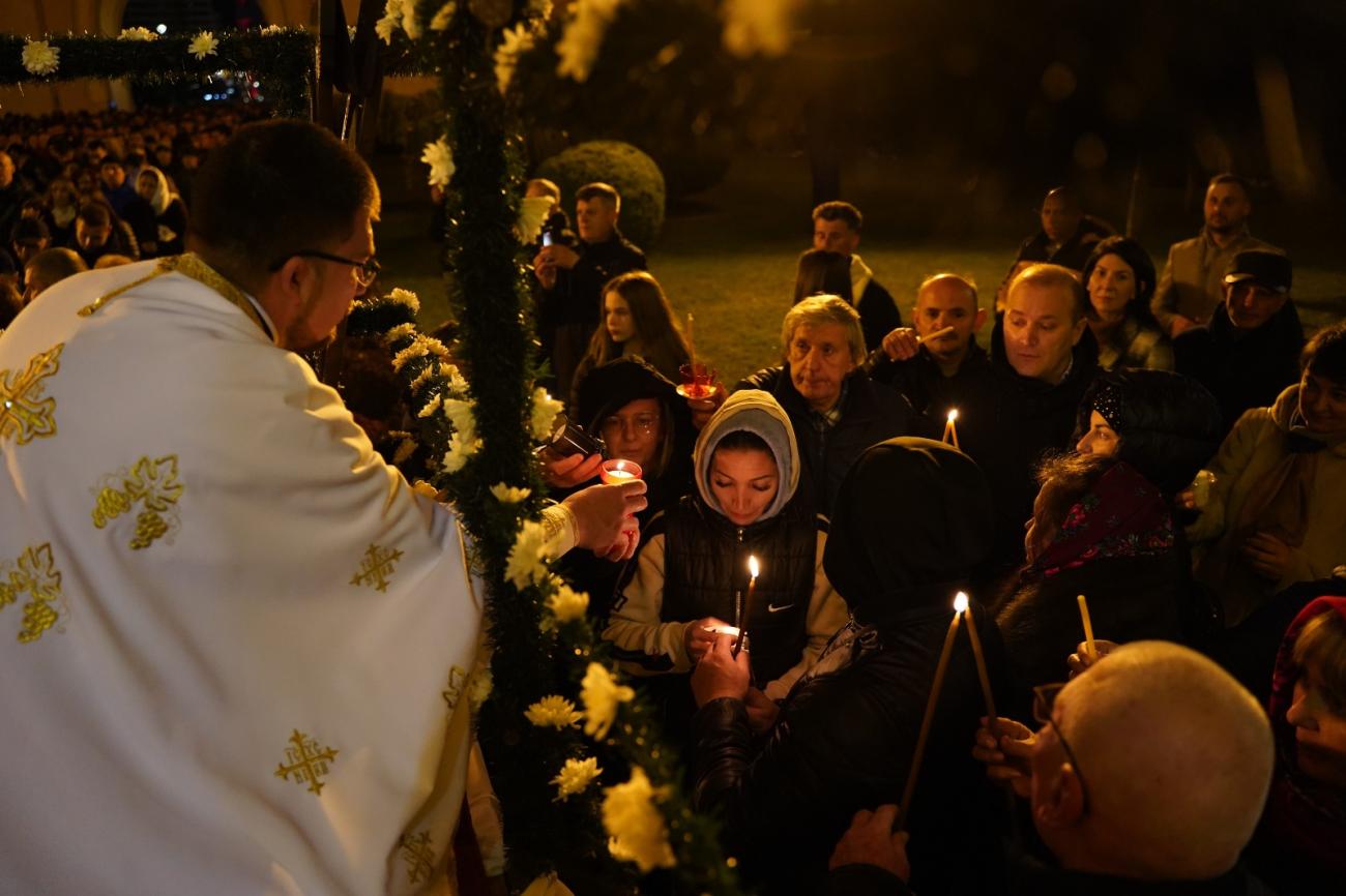 În Duminica Sfintelor Paști, zi în care creștinii dreptslăvitori prăznuiesc Învierea Domnului nostru Iisus Hristos, Înaltpreasfințitul Părinte Arhiepiscop Irineu a fost prezent la Catedrala Reîntregirii și Încoronării din vechea Cetate a Bălgradului. Începând cu ora 0.00, pe esplanada special amenajată în fața locașului de închinare, Ierarhul nostru, înconjurat de un numeros sobor de clerici, a oficiat slujba Utreniei Sfintei Învieri și a rostit cuvântul de învățătură, în prezența a mii de credincioși din Cetatea Alba Iuliei. În continuare, de la ora 1.15, Întâistătătorul Eparhiei noastre a celebrat Dumnezeiasca Liturghie a Sfântului Ioan Gură de Aur în Catedrala arhiepiscopală. Răspunsurile liturgice au fost oferite de către Corala „Sfânta Treime”, condusă de către tânărul Antonio Rotar.