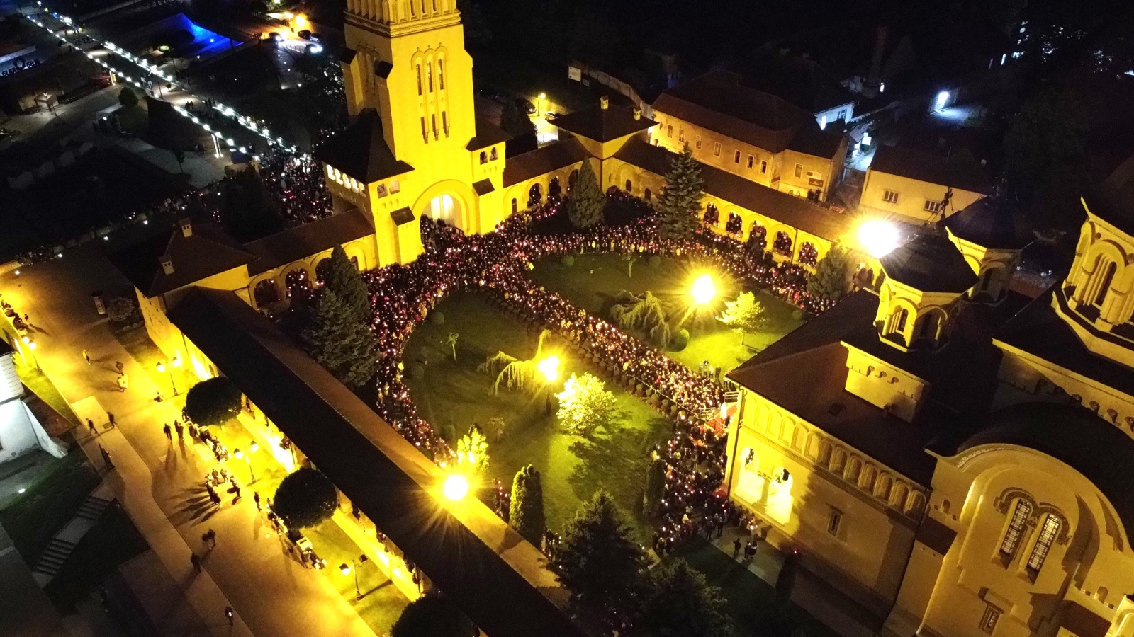 În Duminica Sfintelor Paști, zi în care creștinii dreptslăvitori prăznuiesc Învierea Domnului nostru Iisus Hristos, Înaltpreasfințitul Părinte Arhiepiscop Irineu a fost prezent la Catedrala Reîntregirii din vechea Cetate a Bălgradului. Începând cu ora 0.00, pe esplanada special amenajată în fața locașului de cult, Ierarhul nostru, înconjurat de un numeros sobor de preoți și diaconi, a oficiat slujba Utreniei Sfintei Învieri și a rostit cuvântul de învățătură, în prezența a mii de credincioși albaiulieni. În continuare, de la ora 1.15, Întâistătătorul Eparhiei noastre a săvârșit Dumnezeiasca Liturghie a Sfântului Ioan Gură de Aur în Catedrala arhiepiscopală. Răspunsurile liturgice au fost oferite de către Corala „Sfânta Treime”, condusă de părintele diacon Cosmin Baciu.