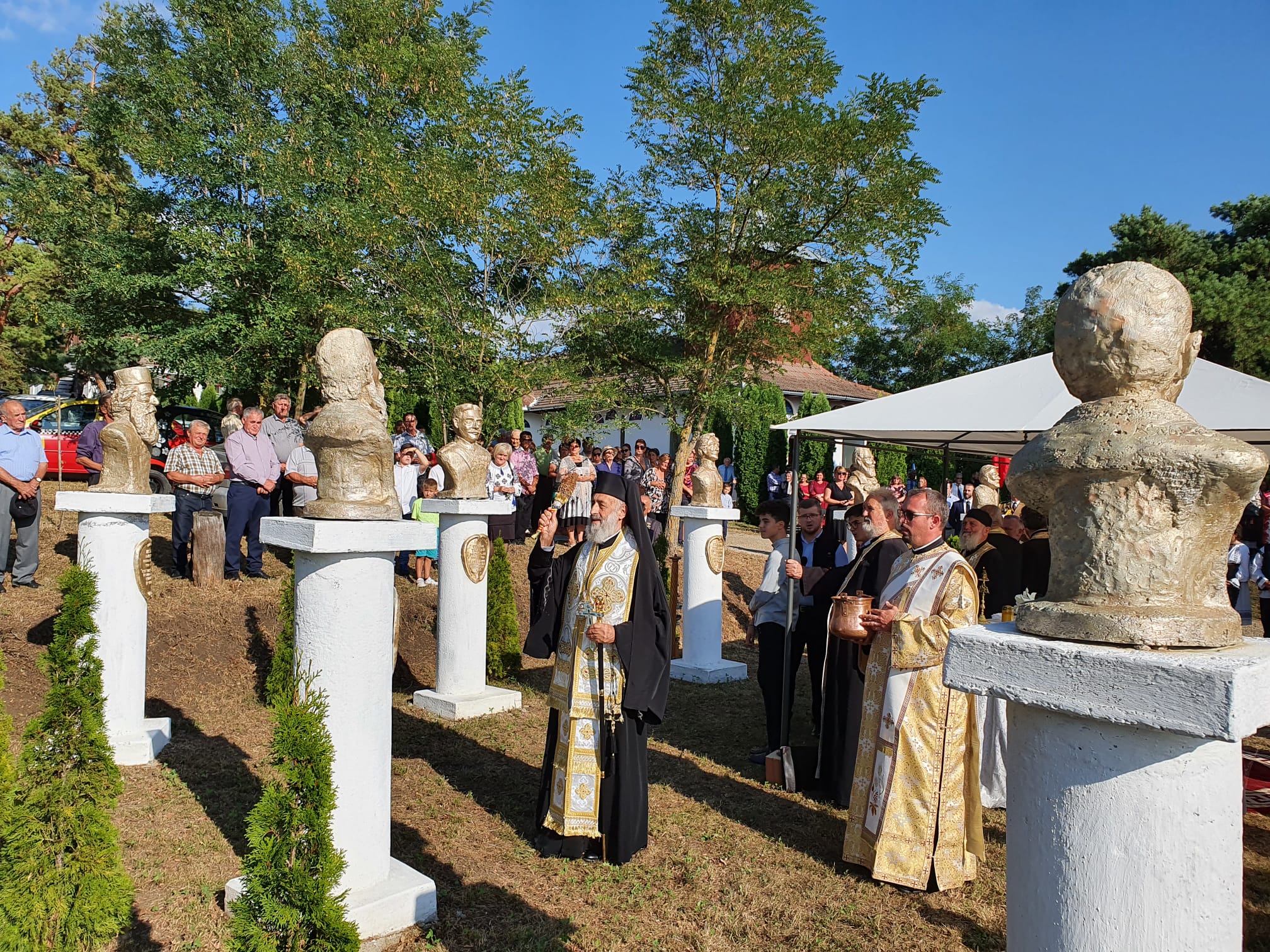 Statuile au fost realizate de către sculptorul Ioan Astăluș, fiind amplasate în curtea Centrului de tineret din orașul Sărmașu. La finalul slujbei, în semn de aleasă prețuire pentru activitatea depusă în slujba Bisericii, Întâistătătorul Eparhiei noastre le-a oferit Diplome de aleasă cinstire tuturor celor care au susținut și sprijinit realizarea celor 12 busturi.