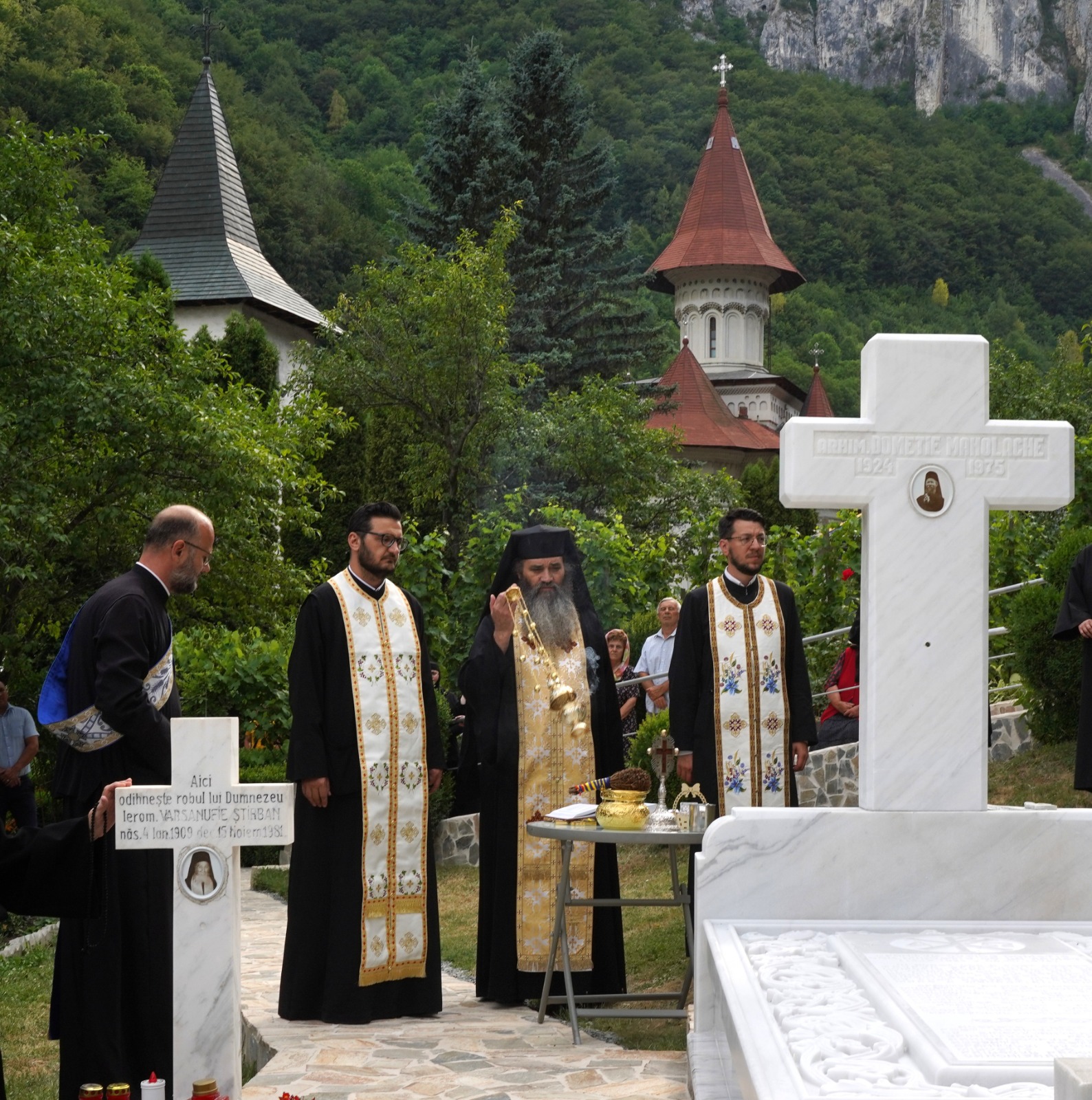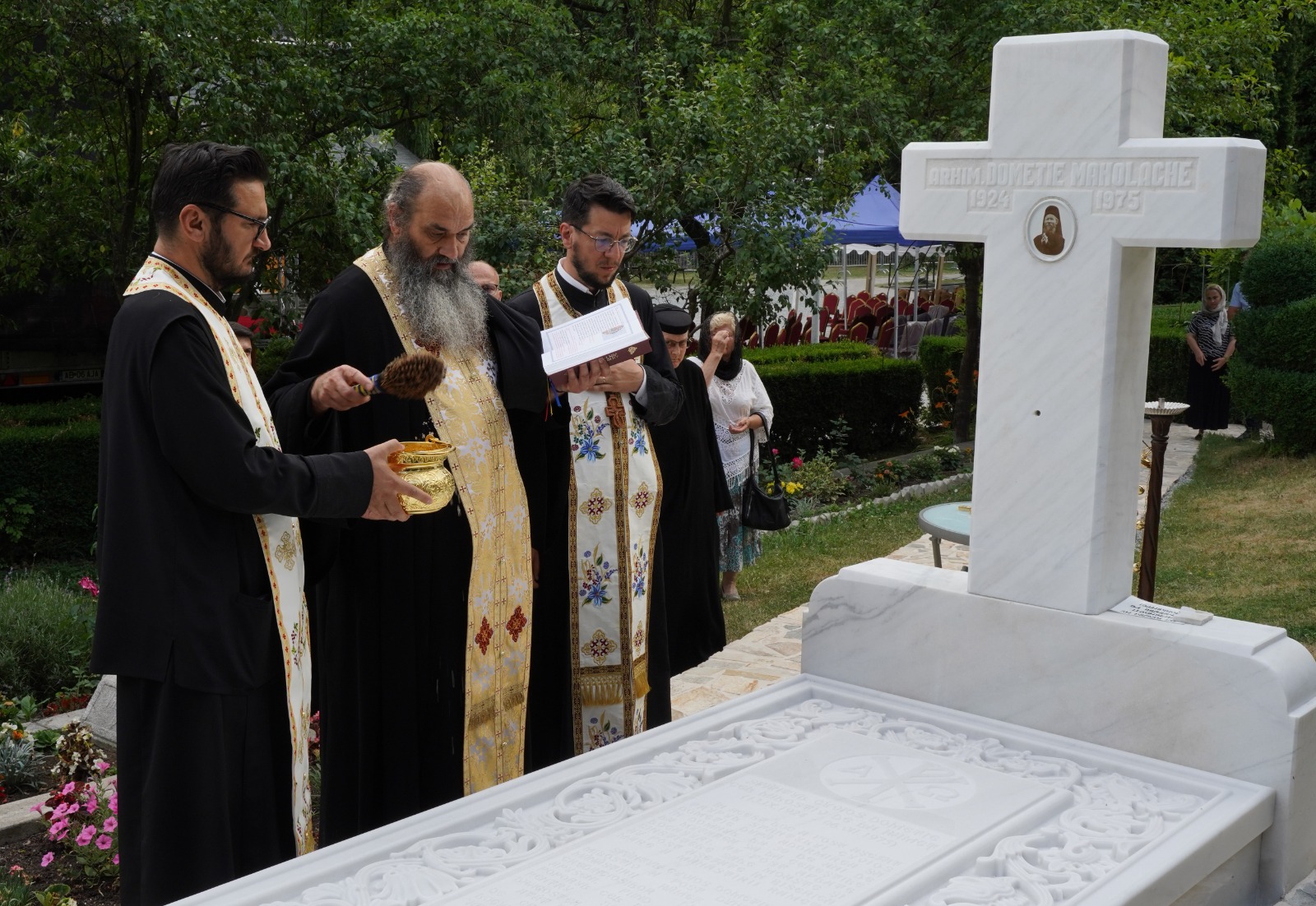 Vineri, 4 iulie a.c., la Mănăstirea „Sfinții Apostoli Petru și Pavel” de la Râmeț, a continuat seria evenimentelor duhovnicești organizate în contextul proclamării locale a canonizării Sfântului Cuvios Dometie cel Milostiv. Începând cu ora 18.00, a avut loc slujba de binecuvântare a plăcii comemorative care a fost așezată la mormântul Sfântului Cuvios Dometie cel Milostiv de la Râmeț. Din sobor au făcut parte pr. conf. univ. dr. Oliviu Botoi, consilier cultural al Eparhiei Alba Iuliei, arhim. Antonie Kătinean, duhovnicul Mănăstirii Râmeț, pr. lect. univ. dr. Răzvan Perșa, cadru didactic universitar la Facultatea de Teologie Ortodoxă din Cluj-Napoca, și arhid. conf. univ. dr. Răzvan Brudiu, decanul interimar al Facultății de Teologie Ortodoxă din Alba Iulia. Alături de viețuitoarele obștii așezământului monahal, la ceremonie au luat parte numeroși clerici și credincioși din întreaga Eparhie și nu numai.