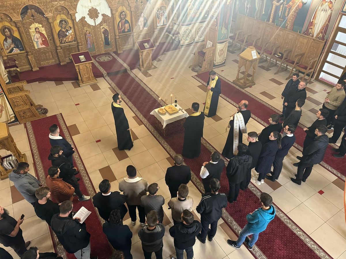 Ceremonia religioasă a fost oficiată de un sobor de părinți profesori, în frunte cu pr. prof. univ. dr. Mihai Himcinschi, decanul Facultății. La final, sfinția sa a rostit un cuvânt duhovnicesc în care a subliniat viețuirea sfântă a Arhimandritului Dometie. Coliva pentru slujba de pomenire a fost pregătită și preparată de către monahiile Mănăstirii „Sfinții Apostoli Petru și Pavel” de la Râmeț.