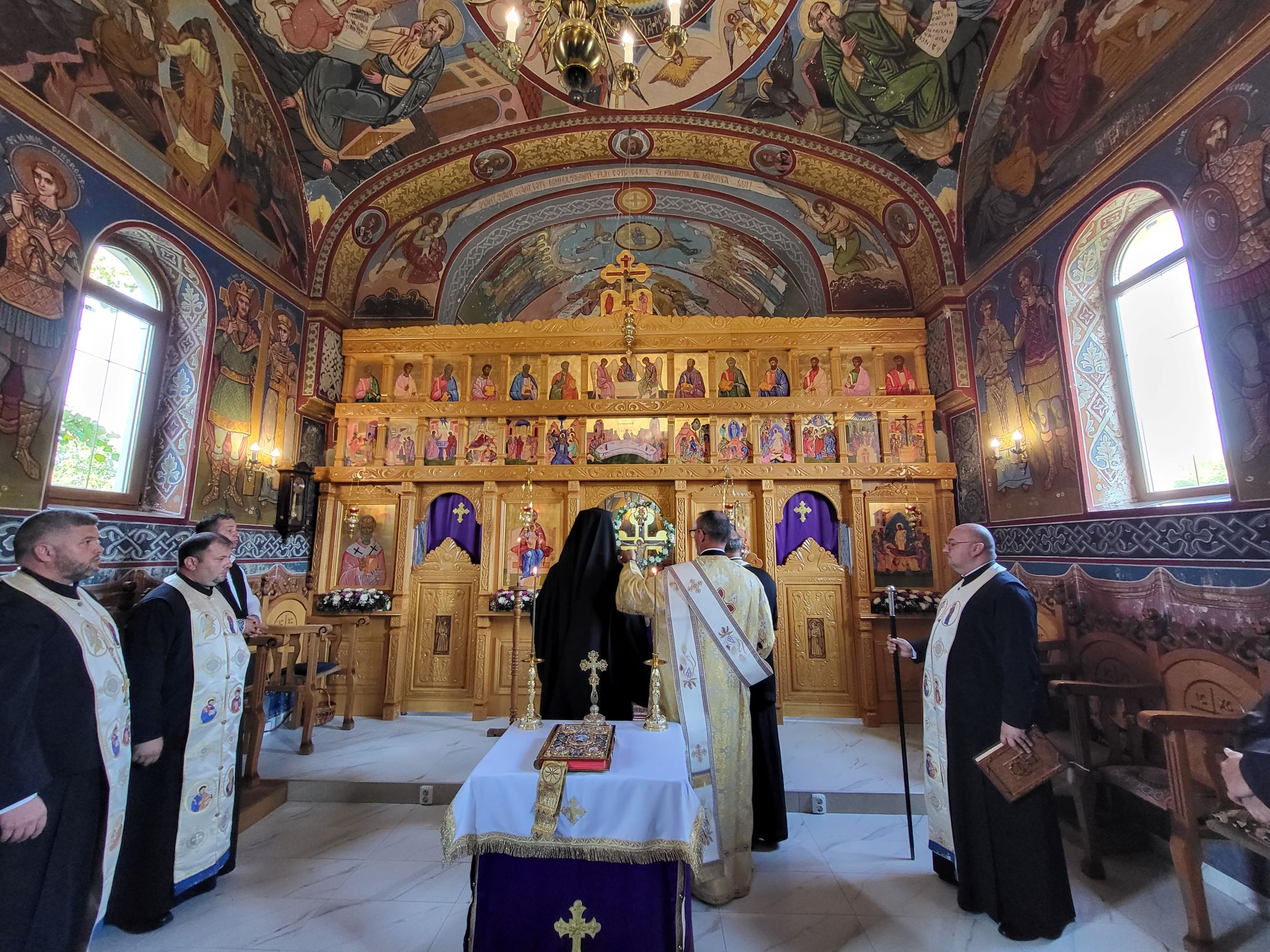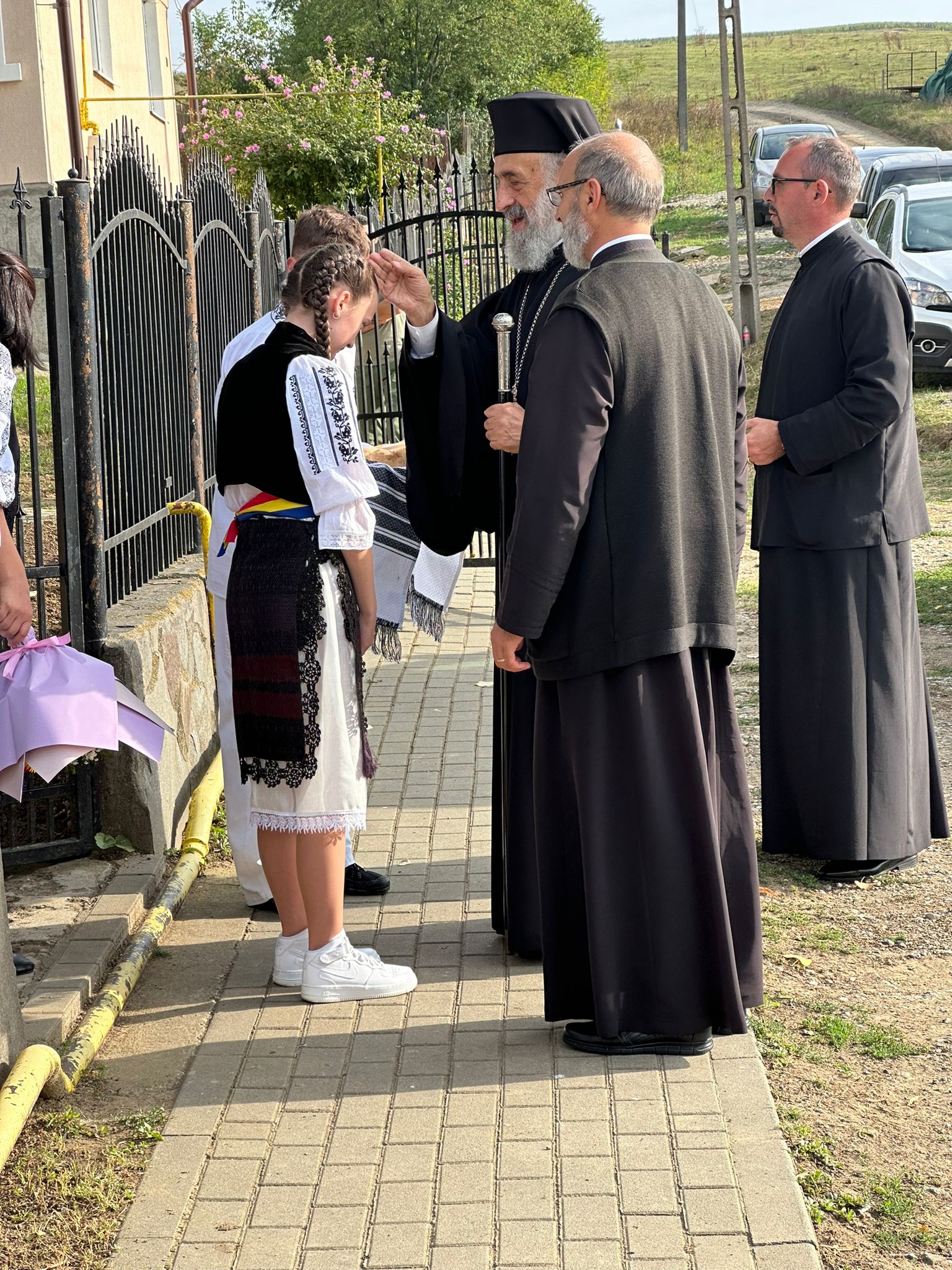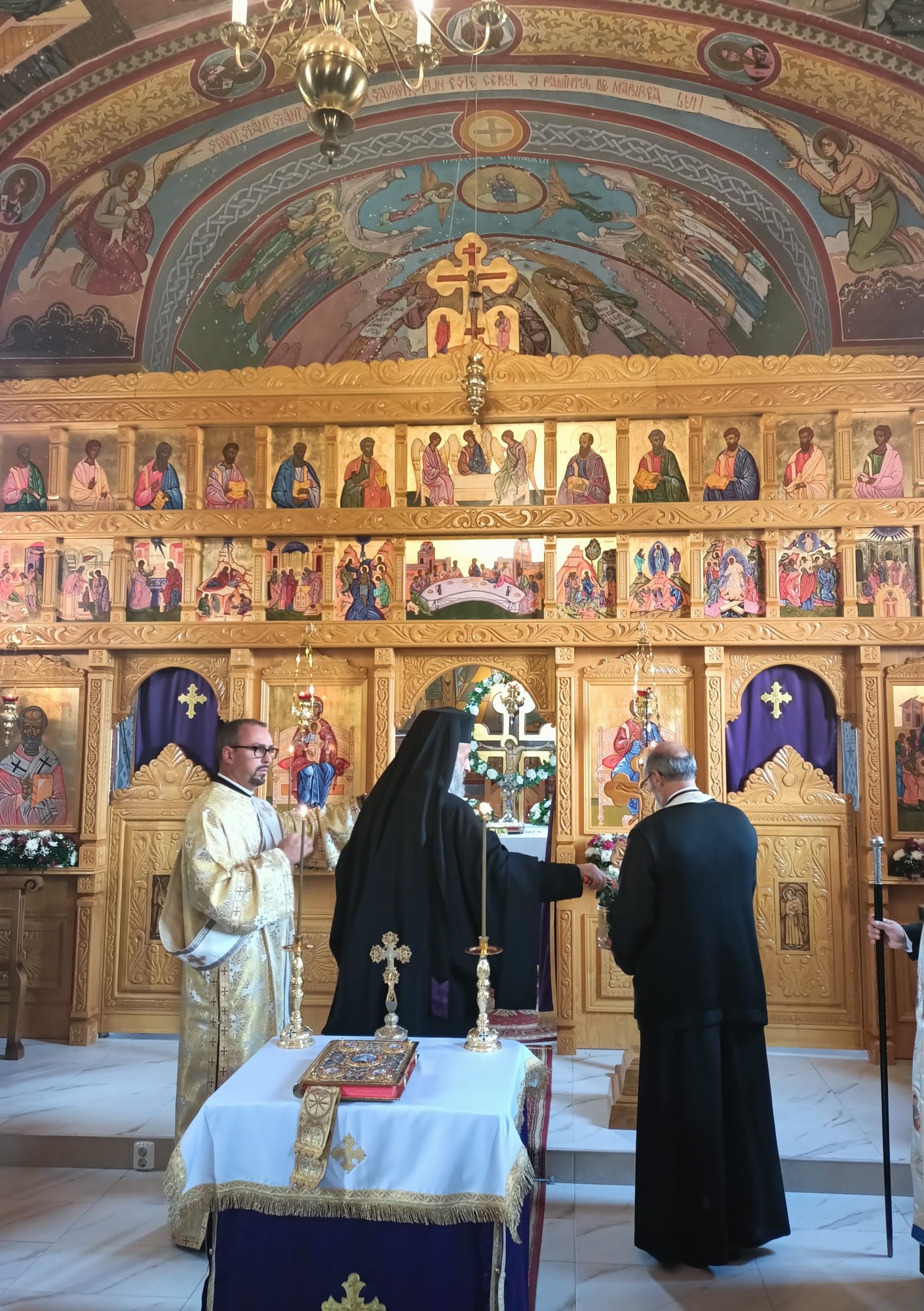 Marți, 17 septembrie 2024, în ziua prăznuirii Sfintelor Mucenițe Sofia, Pistis, Elpis și Agapi, Înaltpreasfințitul Părinte Arhiepiscop Irineu a fost prezent în parohia Șona, protopopiatul Blaj. Începând cu ora 17.00, Arhipăstorul nostru, înconjurat de un sobor de clerici, a oficiat slujba de sfințire a noului iconostas al bisericii parohiale cu hramul „Adormirea Maicii Domnului”. Ceremonia a fost oficiată în prezența a numeroși credincioși îmbrăcați în straie populare, alături de care s-a aflat domnul Teodor Florin Mărginean, primarul comunei Șona.
