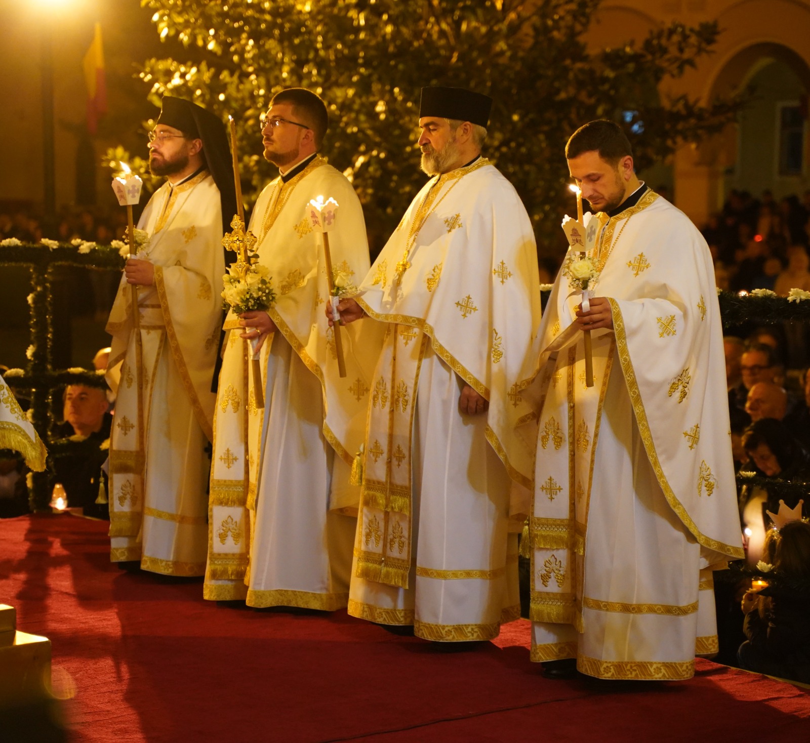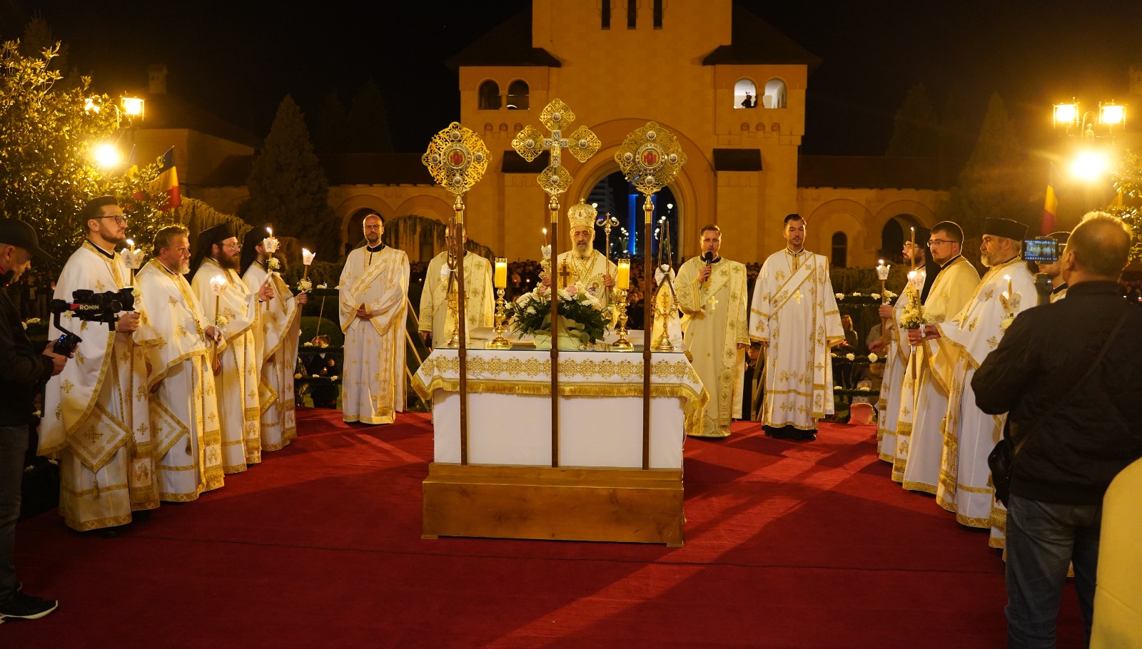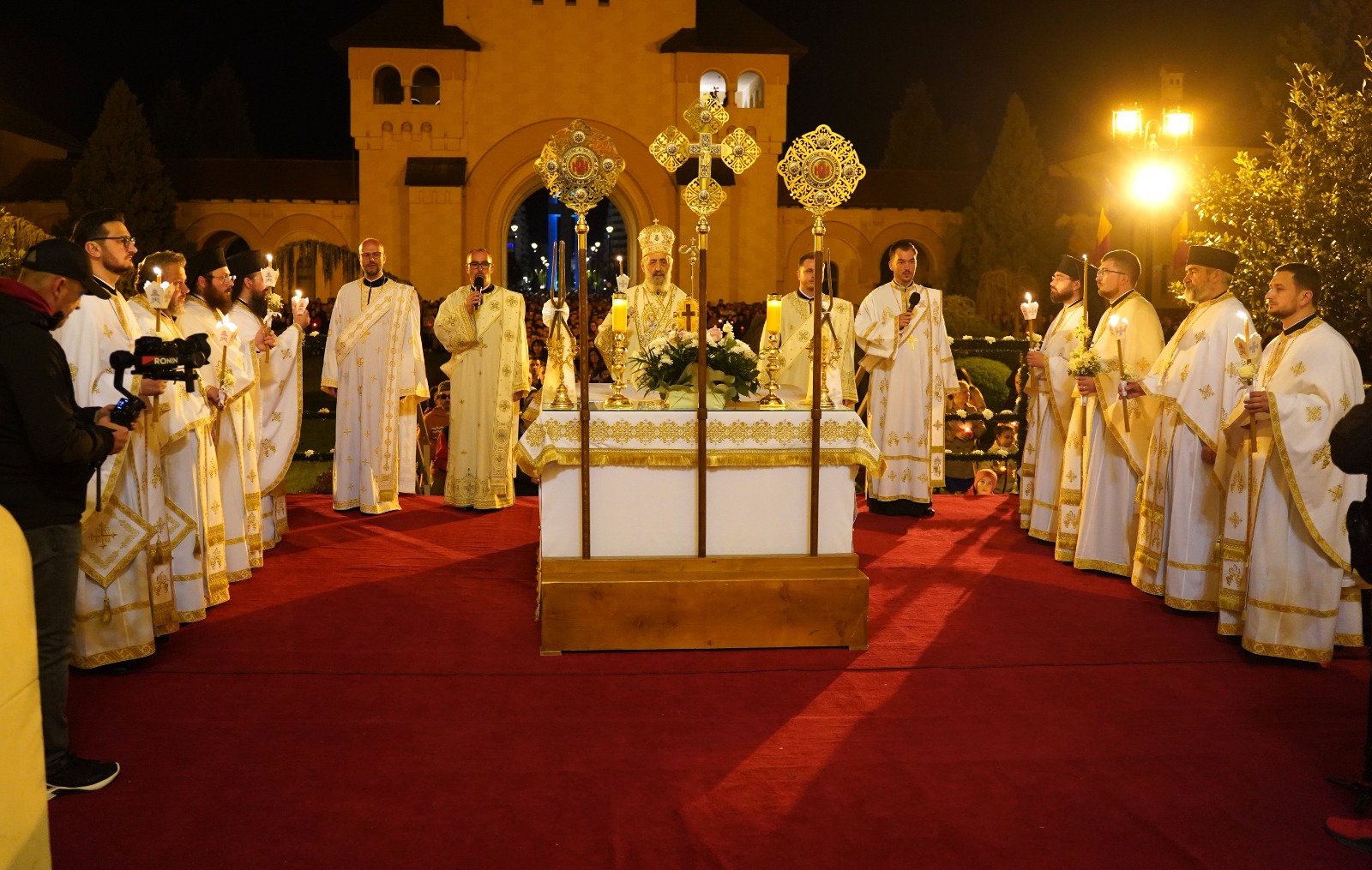 În Duminica Sfintelor Paști, când prăznuim Învierea Domnului nostru Iisus Hristos, Înaltpreasfințitul Părinte Irineu a fost prezent la Catedrala arhiepiscopală din Alba Iulia. Începând cu ora 0.00, Întâistătătorul Eparhiei noastre, înconjurat de un sobor de preoți și diaconi, a săvârșit slujba Utreniei Sfintei Învieri și a rostit cuvântul de învățătură pe esplanada special amenajată în fața locașului de închinare, în prezența a mii de credincioși din Cetatea Marii Uniri. În continuare, de la ora 1.15, Ierarhul nostru a oficiat Dumnezeiasca Liturghie a Sfântului Ioan Gură de Aur în Catedrala Reîntregirii și Încoronării. Răspunsurile liturgice au fost oferite de către Corala „Sfânta Treime”, condusă de părintele diacon Cosmin Baciu.
