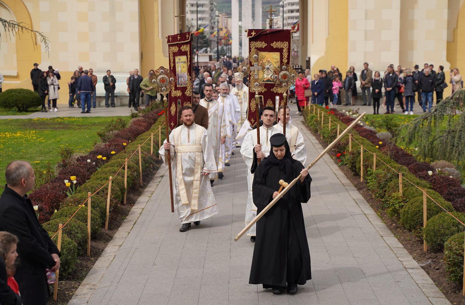 În ziua Praznicului Învierii Domnului, Înaltpreasfințitul Părinte Irineu, Arhiepiscop al Alba Iuliei, a fost prezent la Catedrala Reîntregirii din vechea Cetate a Bălgradului. Începând cu ora 12.00, Întâistătătorul Eparhiei noastre a oficiat slujba Vecerniei Sfintei Învieri, numită și „a doua Înviere”, înconjurat de un numeros sobor format din părinți profesori și preoți slujitori la Altarul Catedralei arhiepiscopale. Conform tradiției, pericopa evanghelică rânduită a se citi în cadrul slujbei a fost rostită de către clericii prezenți în mai multe limbi. Această particularitate specifică zilei de Paști simbolizează universalitatea mesajului divin transmis popoarelor, dar și îndemnul propovăduirii Învierii Domnului la toate neamurile pământului.