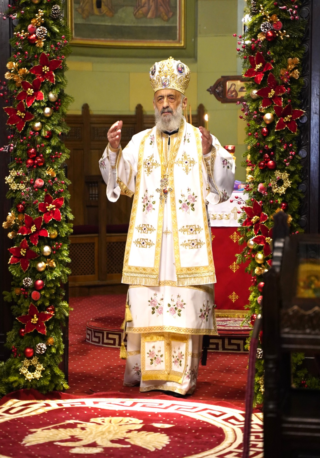 În cuvântul adresat celor prezenți, Arhipăstorul nostru a spus: „Să-L întâmpinăm cu iubire pe Dulcele Iisus Care a părăsit tronul ceresc și a coborât la poporul Său care rătăcea în valea umbrei morții. Să fim siguri că prin ochii Pruncului Divin culcat în iesle ne privește Însuși Fiul lui Dumnezeu din veșnicia Sa. Să ne curățim de toate patimile și păcatele și să deschidem larg poarta inimii noastre ca să pătrundă în ea Bunul Mântuitor. El Singur poate să ne întărească pe noi cu harul Său sfințitor, să ne lumineze pe noi cu al Său cuvânt evanghelic și să ne sfințească pe noi cu Trupul și Sângele Său. «Hristos Se naște, slăviți-L! Hristos din ceruri, întâmpinați-L!»”.